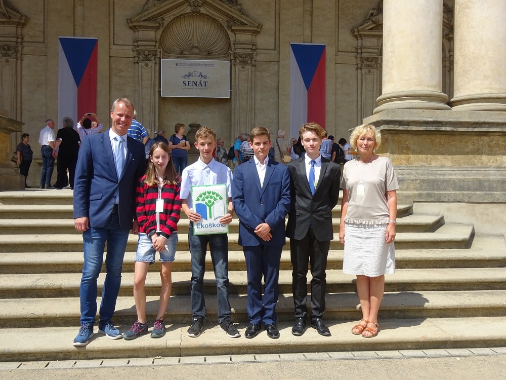 Na podzim 2017 se Ekotýmu podařilo získat pro naši školu 4. titul Ekoškoly, 20.6.2018 proběhlo slavnostní předání v Senátu PS ČR. Zúčastnili se ho 4 nejaktivnější členové Ekotýmu – Ondřej Klusák, Jiří Klepp, Adéla Houdková a Jan Beránek, pozvali jsme i p. Losenického, místostarostu MěÚ Kadaň.