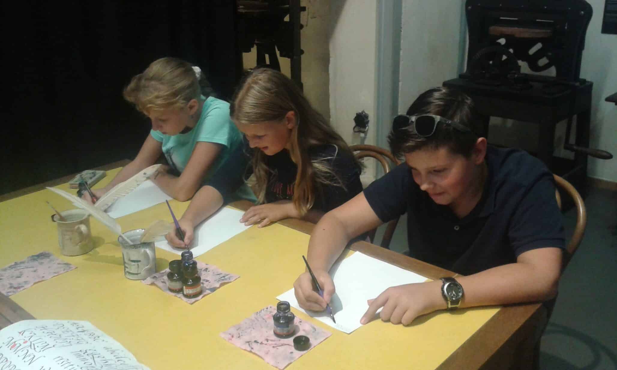 Studenti primy, společně se svými vrstevníky ze Základní školy Vilémov a Základní školy Na Podlesí, se do projektu zapojili návštěvou Národního technického muzea v Praze. Volná prohlídka všech výstavních prostor byla zpestřena workshopem, který byl zaměřený na aktivity související s výrobou knih. Mohli jsme si vyzkoušet psát brkem různé typy písma, prakticky jsme se seznámili s technikou vazby knih a několik vlastnoručně vyrobených exemplářů jsme si odnesli na památku domů. Myslím, že každý z nás se v muzeu dozvěděl spoustu nových a zajímavých informací.