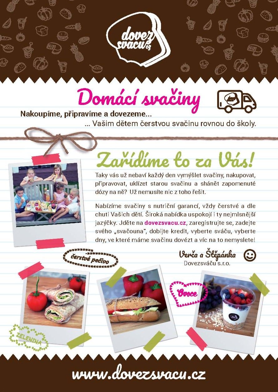 Dnes se u mě zastavily milé maminky a nabídly našim studentům a učitelům tak akorát zdravé svačiny. Svačinu jsem dobrovolně otestoval a musím objektivně prohlásit, že i přes několik pro mě „zbytečných“ kousků zeleniny to byla dobrota. Tak milé studentky a studenti, pokud máte rádi tak akorát zdravé svačiny, můžete se zaregistrovat na stránkách http://www.dovezsvacu.cz/ a objednávat. Výdejní místo bude u našeho vrátného a pokud se najdou zájemci z řad studentů, tak to mohou vzít na sebe a získat pár svačin zdarma pro sebe.