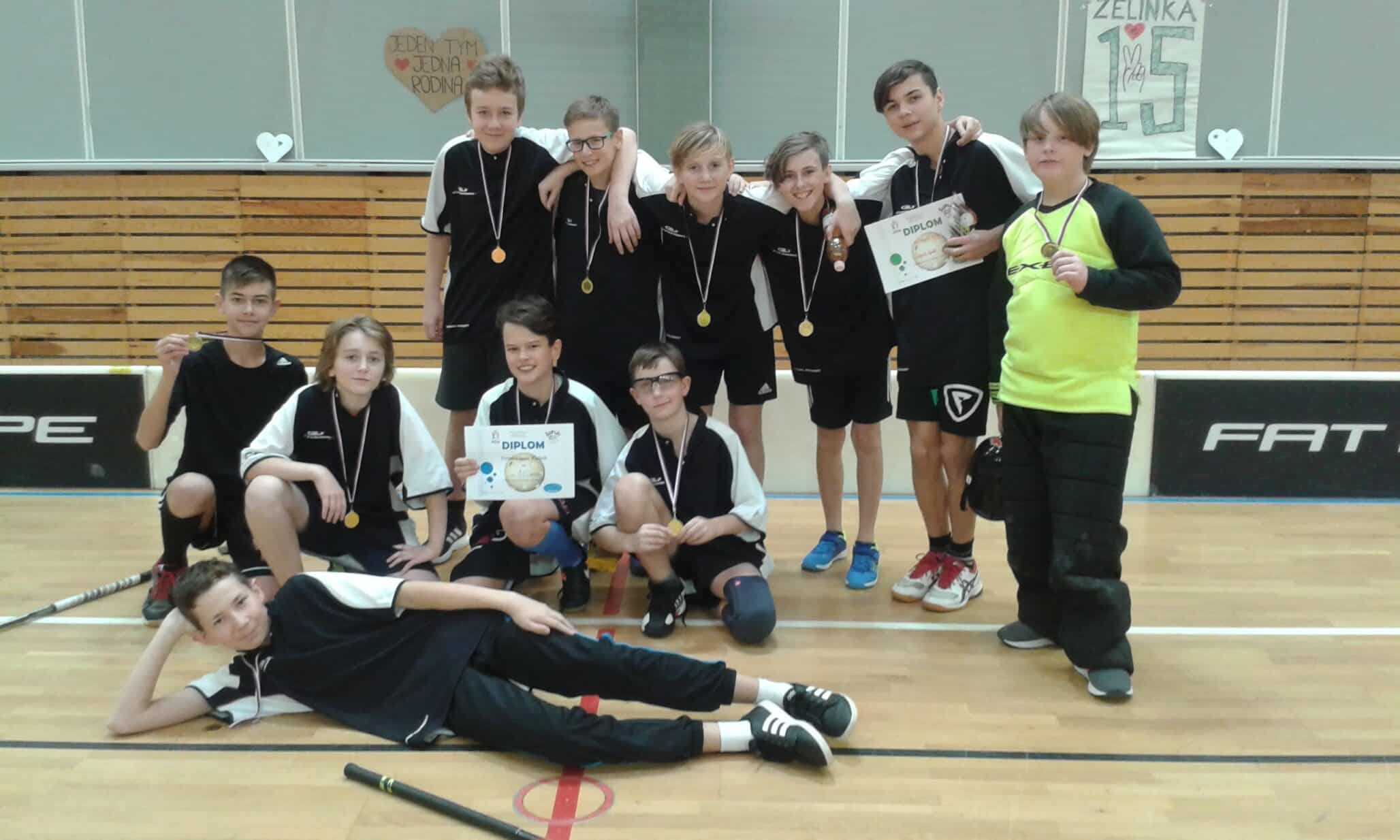 Chlapci mají cestu o něco složitější. Musí nejprve projít okrskovým kolem (školy z Kadaně a Klášterce), ze kterého postupují nejlepší dva týmy do okresního kola. Náš tým složený z řady aktivních florbalistů měl vzhledem k dobré florbalové kvalitě cíl v okrskovém kole podstatně vyšší – získat medaile a zajistit si postup do okresního kola. Cíl splnili a dosáhli dokonce na metu nejvyšší. Turnaj vyhráli a příští týden budou pokračovat v Chomutově a bojovat o postup do krajského kola. Kromě týmového úspěchu zaznamenal tým i individuální ocenění. Samuel Synek získal cenu za nejlepšího hráče turnaje.