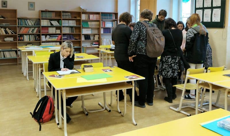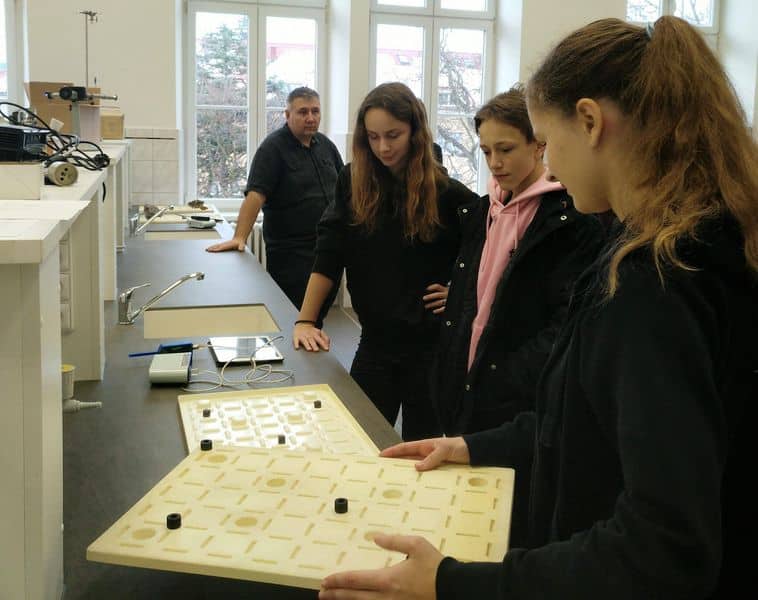 Druhý čtvrtek v novém roce jsme na naší škole věnovali představení školy zájemcům o studium a jejich rodičům. Dopoledne jsme měli program zaměřený na celé třídy a odpoledne na individuální prohlídky zájemců a jejich rodičů. Je příjemné vidět naše studenty, kteří provází po škole usmívající rodiče s dětmi a vyprávějí jim o škole. Zároveň z nich cítíte radost z toho, že škole a jejím učitelům pomáhají. Učitelé se chovají jako zkušení profesionálové, což mimochodem jsou, a odpovídají na otázky rodičů a zájemců o studium. Mimochodem milé překvapení bylo v podobě studentek Terezy a Elišky, kteří dělali originální placky / odznaky. Stroj na placky nám zapůjčila Základní umělecká škola Klementa Slavického, Kadaň a my ji posíláme velké poděkování …