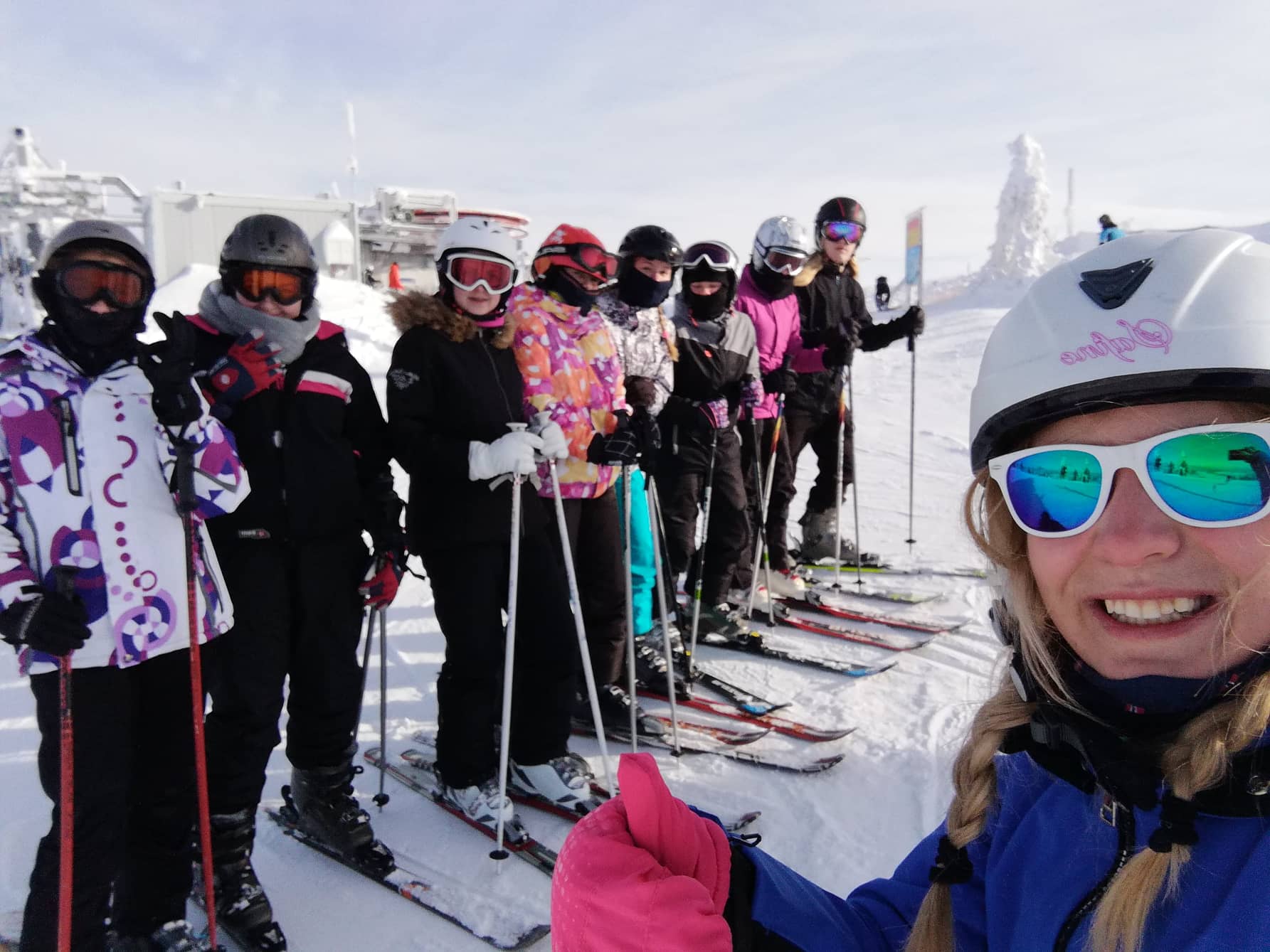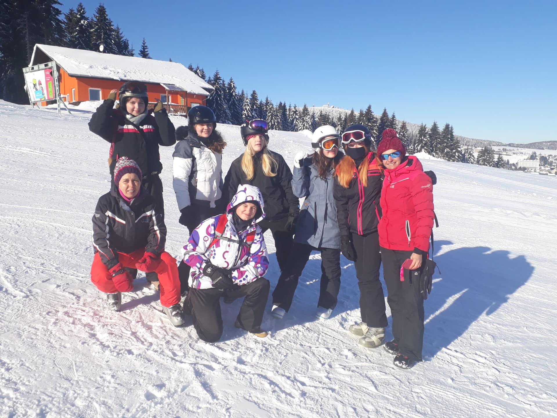 Ve dnech 21. až 25. ledna 2019 se třídy kvinta a 1. A, doplněné několika studenty 3. ročníků, zúčastnily lyžařského výcvikového kurzu na Klínovci. Počasí se vydařilo, i když bylo docela mrazivo. Kromě aktivit na sjezdovkách jsme se věnovali různým večerním činnostem. Seznámili jsme se s prací Horské služby a se zásadami bezpečného chování na horách. Na programu bylo také řešení různých situací v rámci poskytování první pomoci. V polovině kurzu jsme si udělali pěší výlet za hranice do sousedního německého městečka Oberwiesenthal. Po lyžování jsme trávili čas různými společenskými hrami. Své nové lyžařské a snowboardové zkušenosti jsme si ověřili poslední den na závodech ve slalomu.