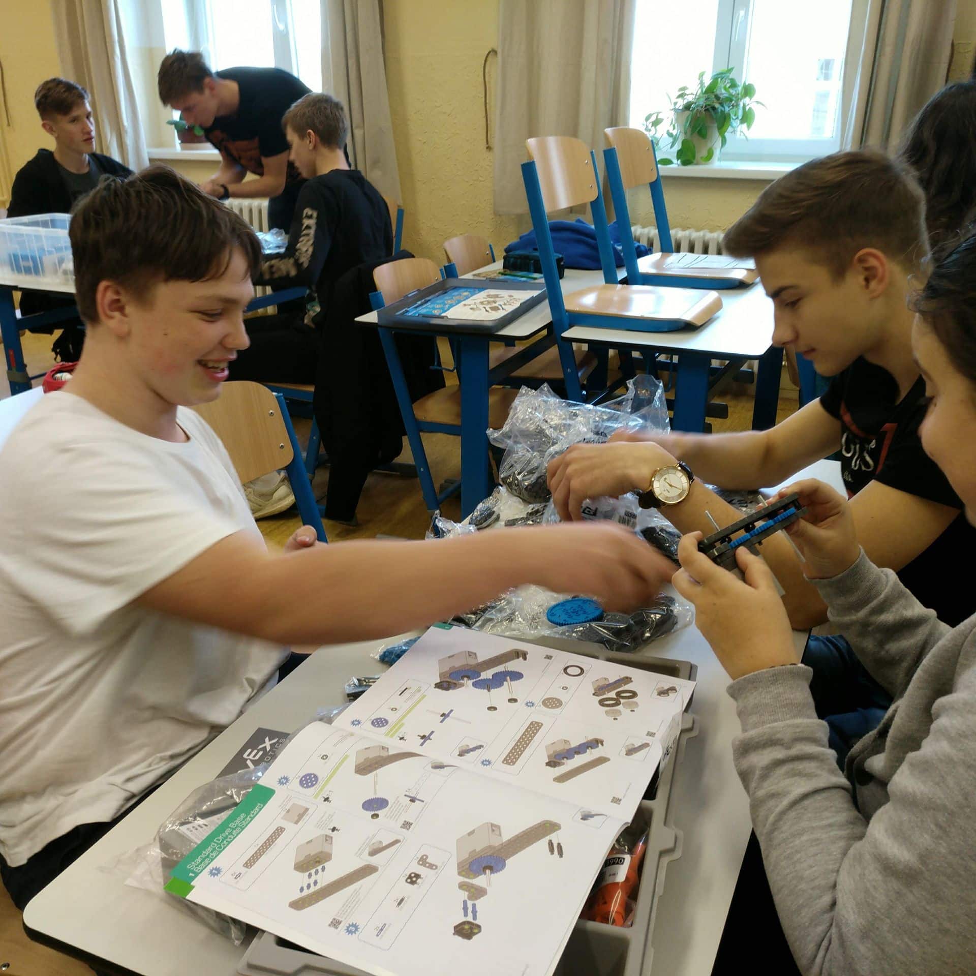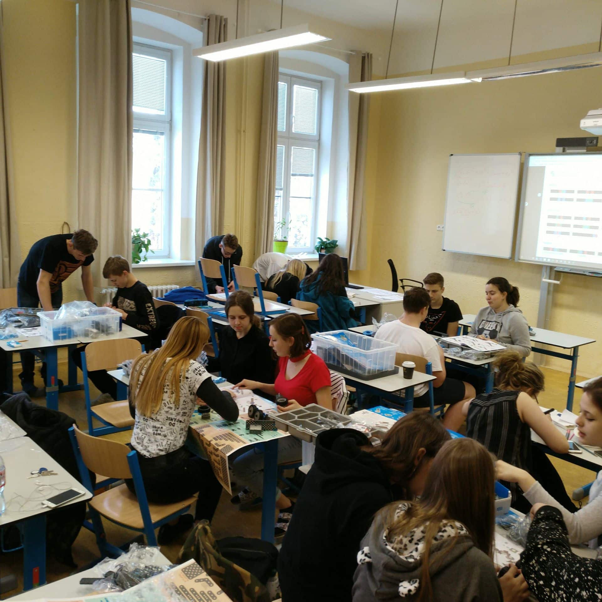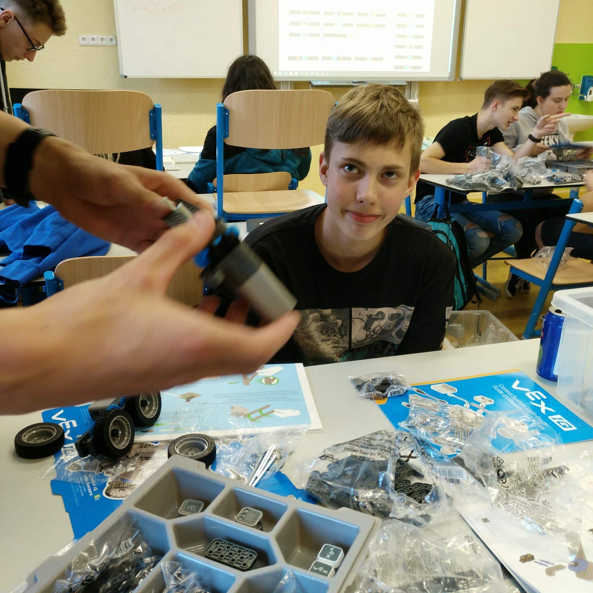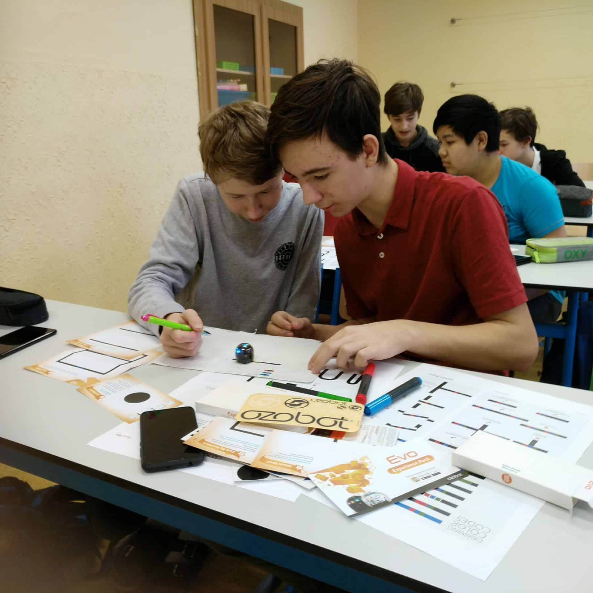 Budoucnost světa nebude v jednostranně specializovaných dovednostech, ale v dovednostech, které lidé budou schopni přenášet mezi obory. Z tohoto důvodu jsme ještě před „reformou“ MŠMT modernizovali výuku ICT, kterou budeme směřovat k chápání algoritmů, základům programování a aplikaci v robotice a využití ICT v přírodních a humanitních vědách. Na fotkách jsou prváci a kvintáni, kteří se přirozeně našli nad sestavováním robotů.