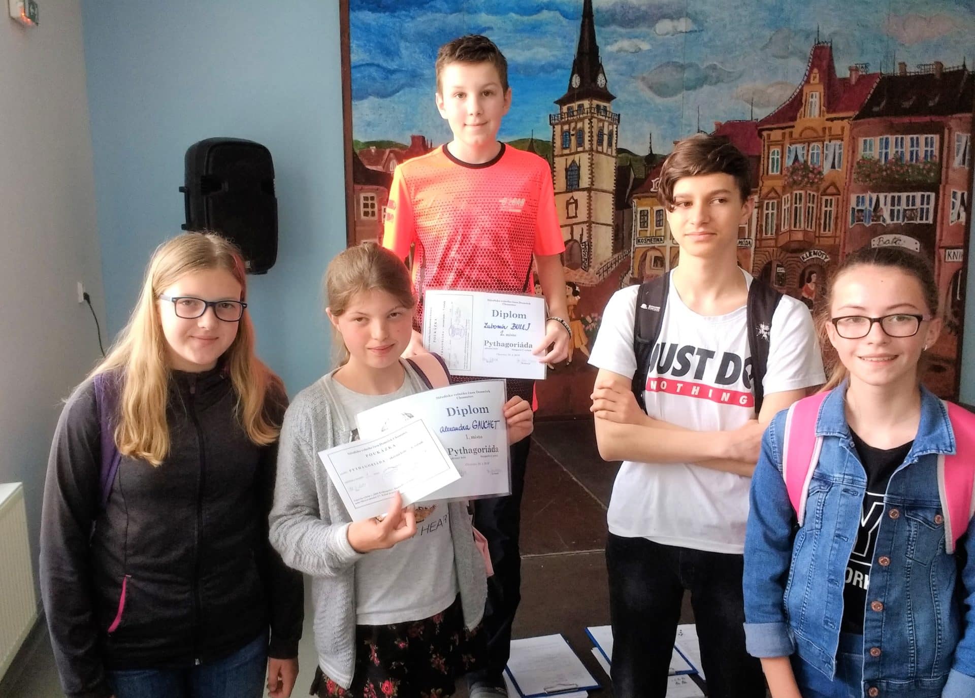 V úterý 28. května se 5 žáků nižšího gymnázia zúčastnilo okresního kola Pythagoriády v Chomutovském DDM. V každém ročníku bylo 27 soutěžících. Na vypořádání se s 15 otázkami měli soutěžící rovných 60 minut. Z primy si nejlépe vedla Alexandra Gauchet, která si odvezla úžasné 1. místo se 13 body. Ze sekundy se na druhém místě s 12 body umístil Lubomír Bulej. Mezi úspěšné řešitelky (10 a více bodů, bohužel na umístění to nestačilo), můžeme zařadit i Kristýnu Benešovou (10 bodů) z primy a Natálii Hejdovou (10 bodů) ze sekundy. Tercii zastupoval jediný ze školního kola úspěšný řešitel Adam Němeček, kterému dnes štěstí nepřálo. Všem zúčastněným děkujeme za reprezentaci školy.