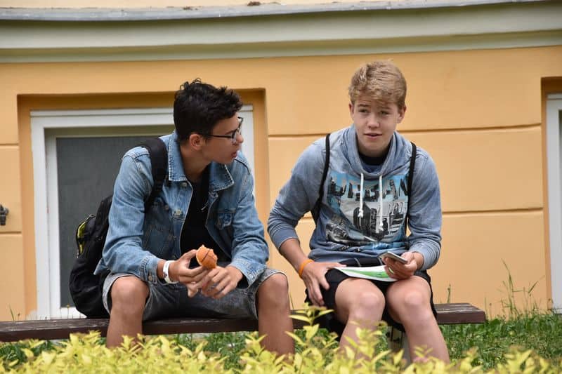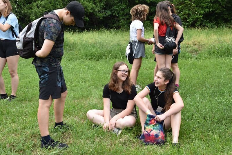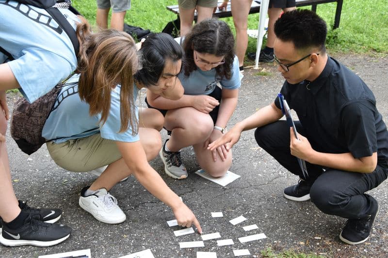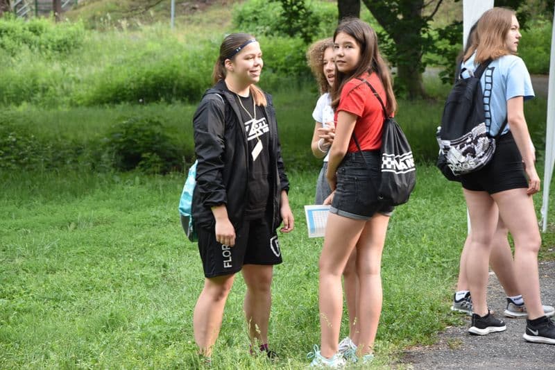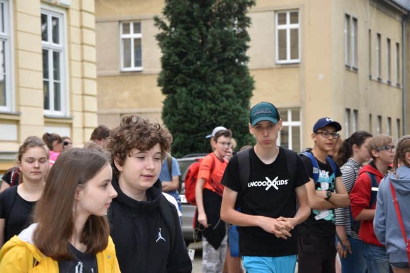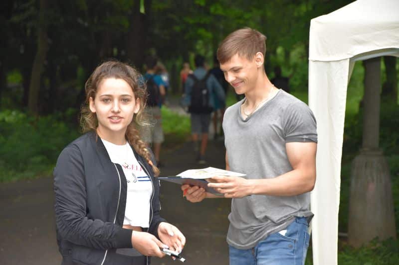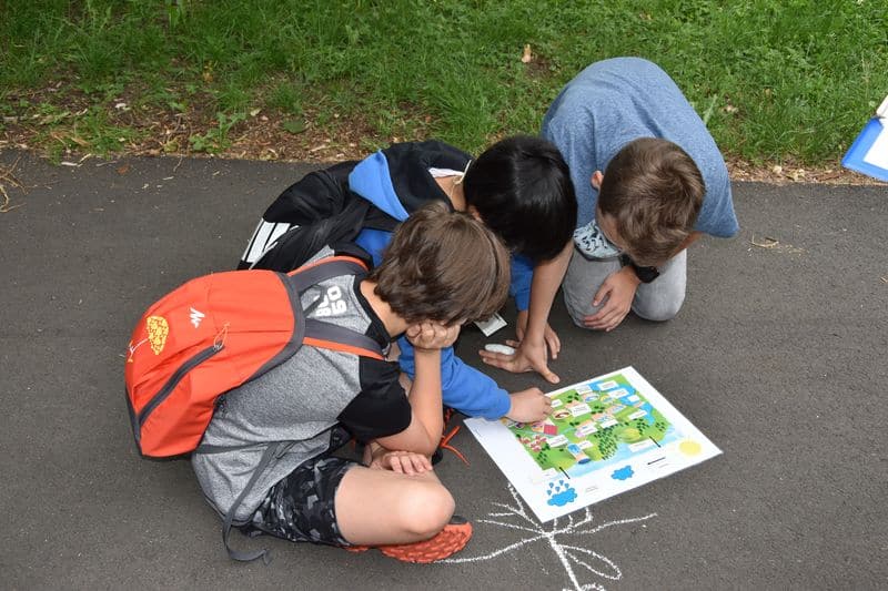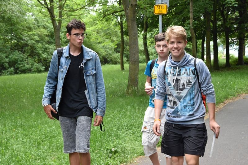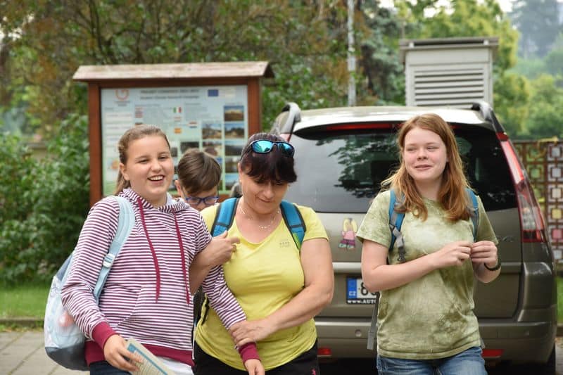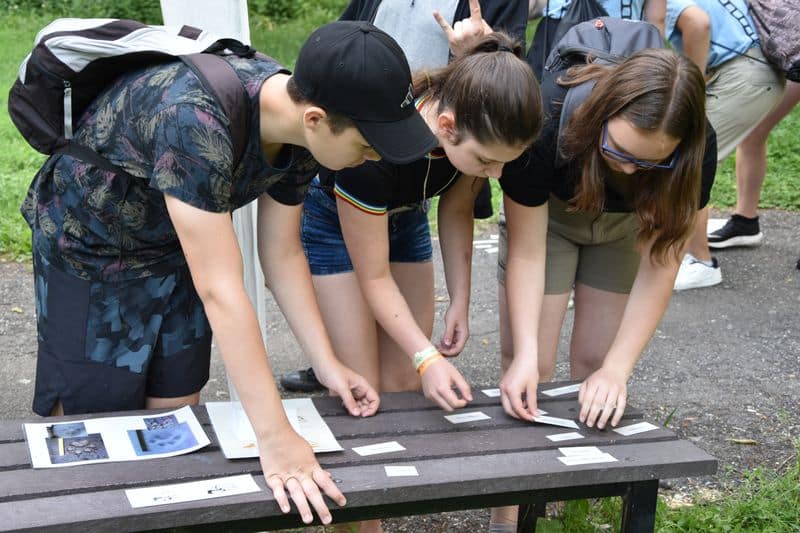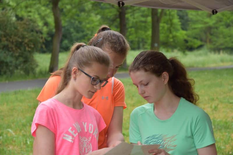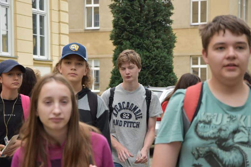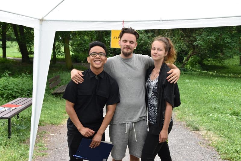 Poté se všichni soutěžící pod dohledem hostesek ze 3. A přesunuli do lesoparku, kde na ně už byli připraveni na deseti stanovištích studenti ze třetího ročníku a septimy se zajímavými úkoly.