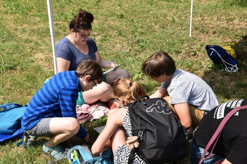 Soutěžící měli patnáct minut na splnění úkolu na jednom stanovišti. Vytvořit zadání úkolu tak, aby byl přiměřeně náročný pro obě věkové kategorie, je velký oříšek. Někde byly úkoly lehčí a tak se stalo, že starší soutěžící splnili úkol velmi rychle a museli před dalším stanovištěm chvíli počkat, což jim v příjemném počasí určitě příliš nevadilo. Všude na stanovištích byla vidět uvnitř soutěžních týmů výborná spolupráce. Pro tento ročník si naši třeťáci, kteří chodí na seminář z biologie, připravili některá nová témata jako geneticky modifikované organismy nebo problematiku památných stromů.