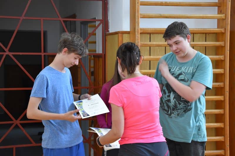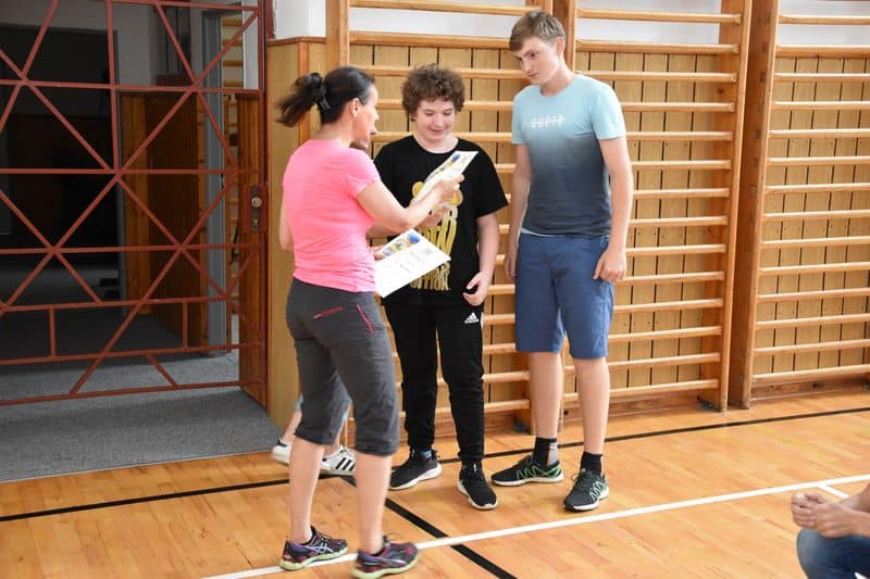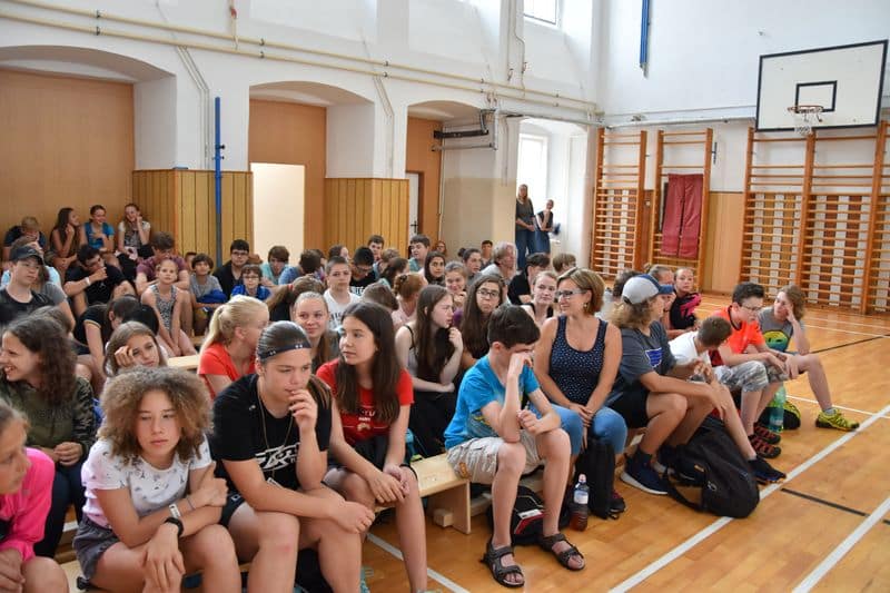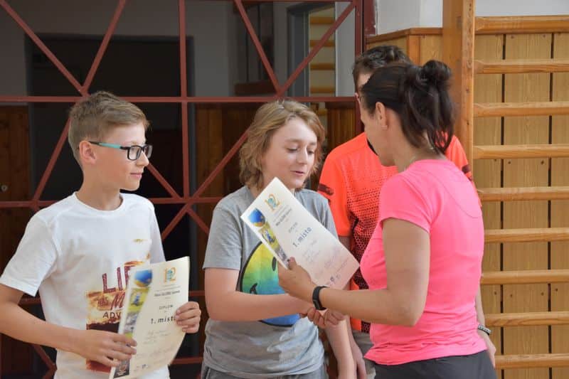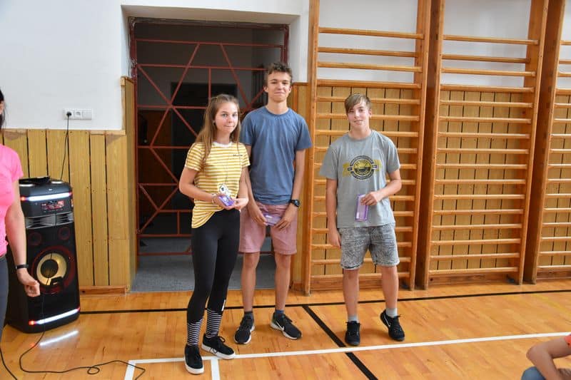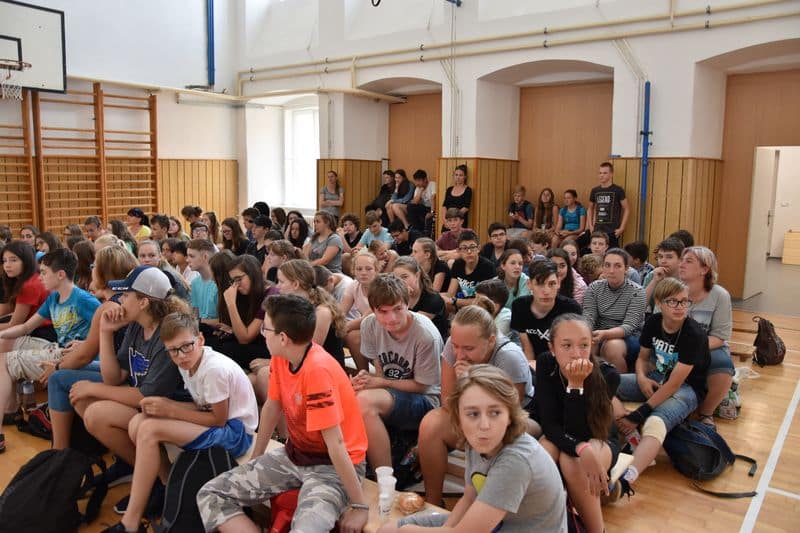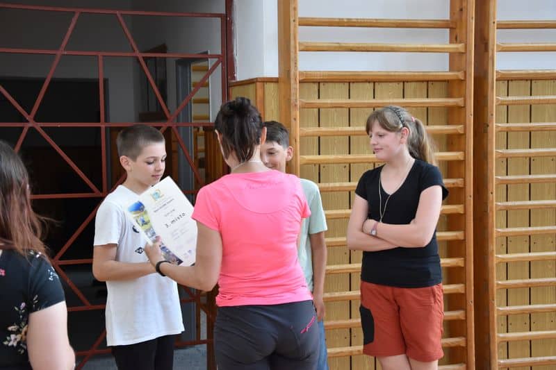 Po skončení terénní hry se všichni opět sešli v místě zahájení. V příjemném chládku si v tělocvičně vychutnali svačinku, kterou pro ně připravila děvčata ze 3. A., sdělovali si navzájem své dojmy a čekali na závěrečné vyhodnocení.