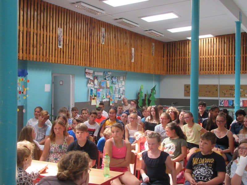 „Medvídku, vyprávěj“ je animovaný film, který pod vedením Marty Vančurové natočily o Doris Grozdanovičové malé děti z jedné základní školy. Sekundáni tento film zhlédli a těšili se na vzácné setkání. Příležitost vyslechnout si její příběh a ptát se na mnohé měli včera v březenské škole spolu s místními žáky a třídou nedalekého učiliště – sešla se skoro stovka dětí a během hodinového vyprávění by byl slyšet spadnout špendlík. „Měla jste kamarády mezi Němci? A bylo to jiné kamarádství před válkou a po ní? Jak vnímáte odsun Němců? Jak se válkou proměnilo Brno? Našla jste si v Terezíně první lásku? Proč byste se nikdy nejela podívat do památníku v Osvětimi? Je pro Vás těžké o tom všem mluvit?“