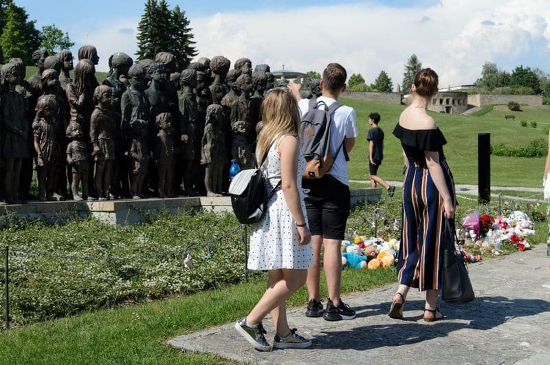 Ve středu 5. června se třetí ročník a septima vydaly společně za doprovodu profesorek Evy Shánělové a Olgy Živnůstkové navštívit Památník Heydrichiády v pravoslavném chrámu sv. Cyrila a Metoděje v Resslově ulici v Praze a Památník Lidice. V Praze studenti shlédli film shrnující průběh operace Anthropoid a její následky. Poté si prohlédli prostory chrámu, kde se Jozef Gabčík, Jan Kubiš a další odbojáři skrývali před gestapem a kde také svedli svou poslední bitvu v životě. Po prohlídce chrámu se studenti společně s pedagogickým doprovodem odebrali do Lidic navštívit památník věnovaný lidickým mužům, ženám a dětem, kteří zahynuli v odvetě nacistů za atentát na Heydricha. Zde si studenti nejprve prohlédli vnitřní expozici památníku, kde mohli například vidět podrobné seznamy se jmény obětí, či jejich osobní předměty, nebo zbytky z lidických domů. Po prohlídce vnitřní expozice se všichni odebrali ven prohlédnout si sochy a památníky věnované lidickým obětem. Nakonec prohlídky následovala návštěva Růžového sadu, jenž byl vytvořen ze sazenic růží, které poslali do Lidic lidé z celého světa za účelem vytvořením zahrady symbolizující světový mír. Návštěva obou míst spojených s takto tragickými událostmi studenty jistě donutila k zamyšlení a uvědomění, že historie se může kdykoli opakovat a je především na nich, další generaci, aby šířili mír a udržovali ho.