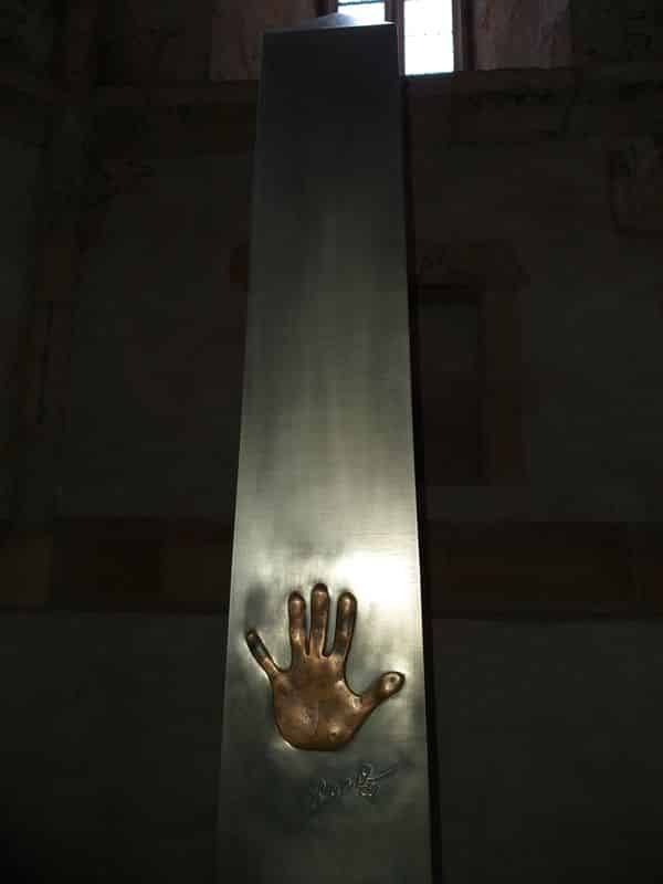 Naší poslední zastávkou se stal kostel sv. Kateřiny na chomutovském náměstí, kde je vystaven obelisk s otiskem ruky Václava Havla.