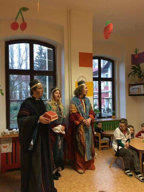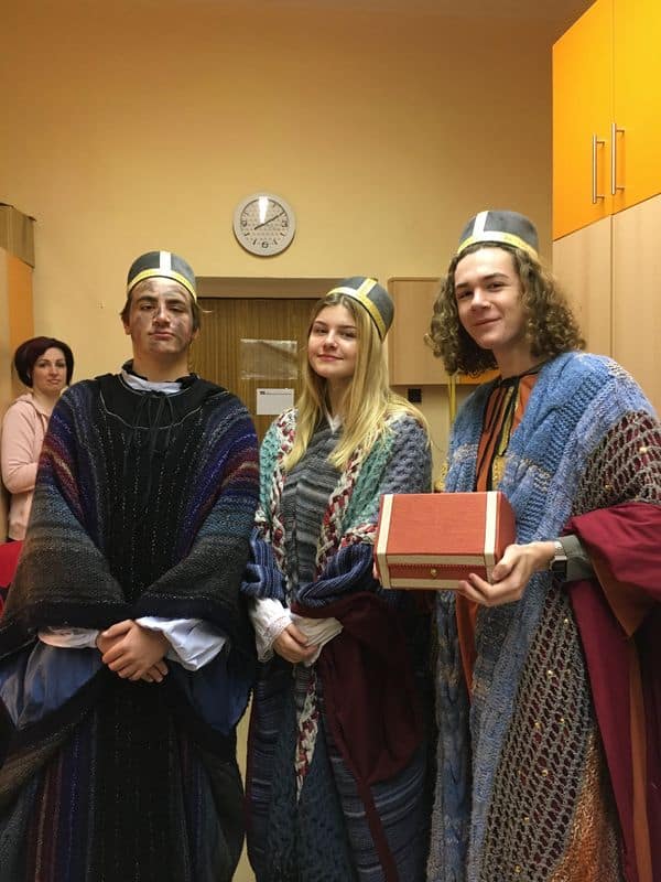 Už pátým rokem se studenti našeho gymnázia spolu se sdružením Radka podílejí na tříkrálové akci. Cílem této spolupráce je požehnat navštíveným místům jako je např. LDN nebo domov pro osoby se zdravotním postižením a svou přítomností tak osobně popřát do nového roku. V letošním roce se rolí Kašpara, Melichara a Baltazara ujali Hana Hanzlíková, Alex James Horabin a Bruno Mýtina.
