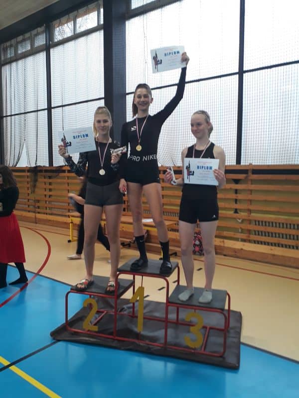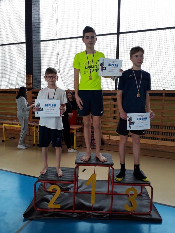 Ve čtvrtek 20. 2. se uskutečnil 48. ročník přeboru města Kadaně ve šplhu na tyči. Naši školu reprezentovala sedmičlenná skupinka studentů nižšího gymnázia, která získala celkem čtyři medaile. Adéla Sojková (prima) a Anička Langerová (kvarta) se umístily na 1. místě, Markéta Neimontaité (kvarta) vybojovala stříbrnou medaili a Štěpán Havlíček obsadil třetí místo. Velmi pěkné výkony podali i Samuel Synek a Klára Michalová (oba tercie) a Natálka Neumannová (prima).
