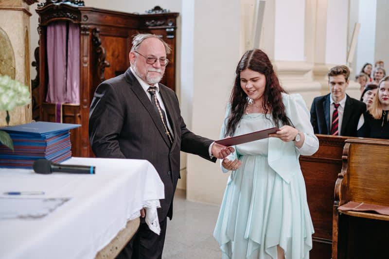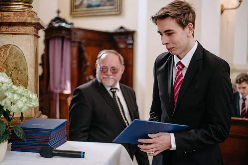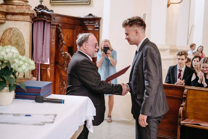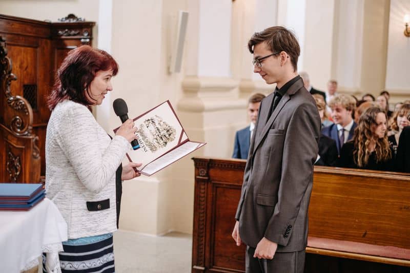 Na některé dny nikdy nezapomenete. Jedním z takových dnů pro mě bude i den, kdy se odehrálo historicky první slavnostní vyřazení absolventů maturitního ročníku 2020 v děkanském kostele. Velké poděkování patří panu faráři, který nám celou akci v této době umožnil a svou laskavostí nám celou akci i přiblížil. Poděkování také patří všem našim absolventům a jejich rodinám, profesorům a profesorkám, místostarostovi, Monice Froňkové a všem ostatním, kteří nám fandili.