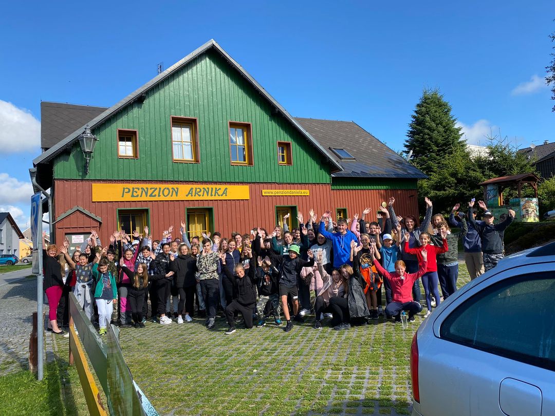 První den nástupu na gymnázium jsme se všichni báli, ale dopadlo to dobře. Od pana ředitele jsme dostali pamětní list a šli na autobusové nádraží. A pak hurá! Jeli jsme na Boží dar.
