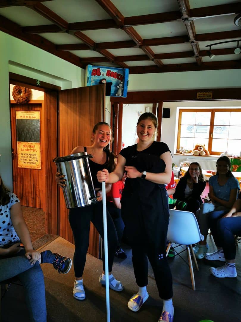Odpoledne byla procházka s různými úkoly. Byli jsme rozdělení do států. Poslední úkol byl vytvořit básničku nebo povídku na určité téma. Všem se básničky a povídka líbili. Večer byla stezka odvahy s malými primány. Někteří se báli, někteří ne. Po vydatném dni jsme byli všichni unavení, ale příjemně naladěni. Šli jsme spát, ale hned nás zarazila tvrdost postelí. Mírně jsme se vylekali, ale zvládli jsme to. Ráno jsme se vzbudili rozladění a rozlámaní. Nasnídali jsme se a vrhli se do víru netradičních sportovních her. Přenášení brambor mezi nohami, pohyb s dřevěnými chodítky atd. no stálo to za to. Po dobrém obědě, jsme šli procházkovým krokem na rozhlednu. Večerní program byl zajímavý, primáni měli pro nás vymyšlené různé hry a 1. B pak předvedla komedii „Co na to 1. B?“. Všichni se zapojili a moc si to užili. Žáci pomalu usínali a tak se vydali do svých tvrdých postelí.
