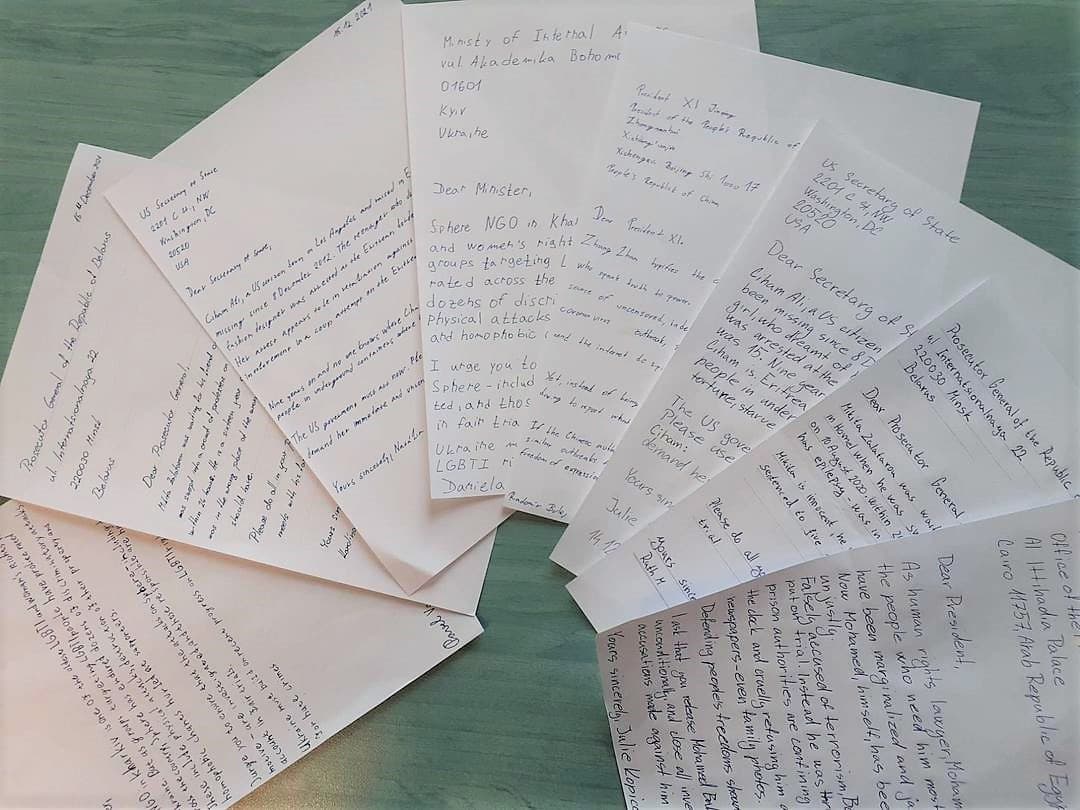 Letos odešly naše dopisy například do Číny na podporu Čang Čan, která dostala 4 roky vězení za pravdivé informace o Covidu, nebo na Ukrajinu, abychom se postavili za Annu Šaryhinovou a Viru Černyhinovou a požadovali prošetření útoků na nevládní organizaci na obranu ženských práv a LGBTI+ lidí. Dopisy jsme psali ručně, třebaže by to bylo na počítači rychlejší a snazší. Právě ručně psané dopisy jsou totiž jedním z důležitých aspektů úspěšnosti celé akce. Dalším je to, že každý jednotlivý dopis se posílá zvlášť.