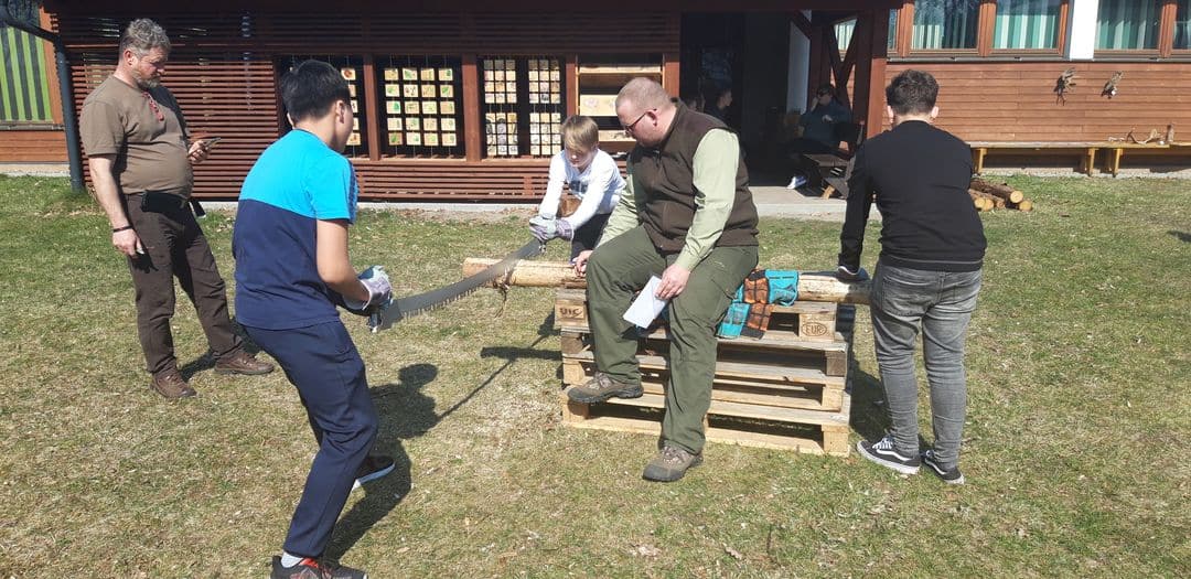 Studenti soutěžili v tříčlenných družstvech a prokázali výborné znalosti v testech, poznávačce, ale i fyzickou zdatnost při plnění speciálního úkolu zručnosti (vrátili se do minulosti, kdy se v lese stromy nekácely motorovou pilou, ale dřevorubci měli k dispozici pouze sekyrku a ruční pilu).