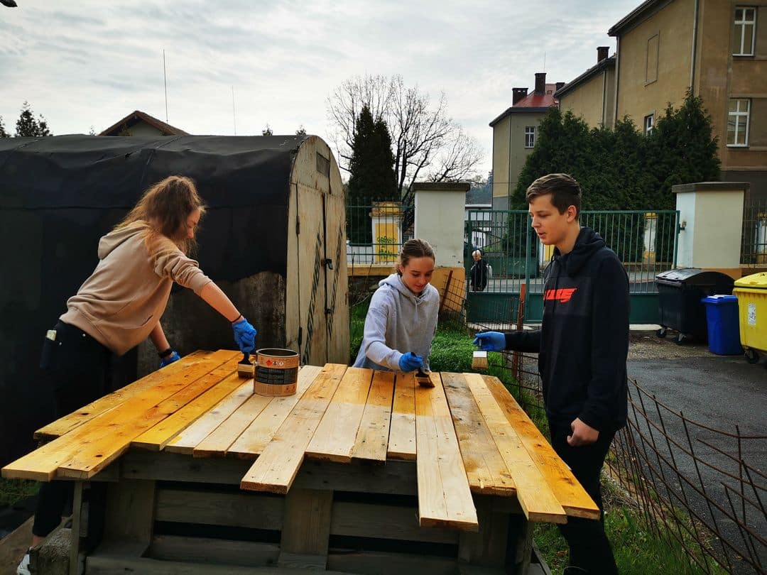 Zapojení bylo různorodé a kreativní. Jazykáři vytvářeli různá diskusní témata, které občas i přenesli do grafické podoby. Přírodovědci zase zkoumali Zemi opravdu zevrubně na tradiční expedici v Zásadě (o ní bude samostatný článek). Zeměpisáři a matematici se vrhli na rozvoj polytechnických dovedností svých studentek a studentů na zahradě naší školy. Vybírali vhodné dřevo, natírali ho, řezali a hřebíky sbíjeli budoucí kompostárnu. Druhá část třídy zatím likvidovala vše zelené, co na naší zahradě nemá být. Fyzikářky si vybrali téma zpracování komunálního odpadu v obci Jilemnice, kde budou matematickou gramotnost prostřednictvím grafů.