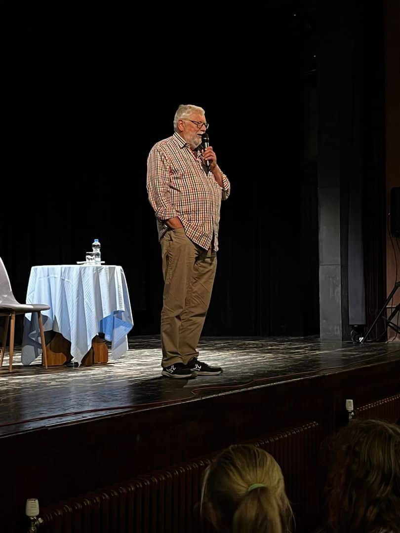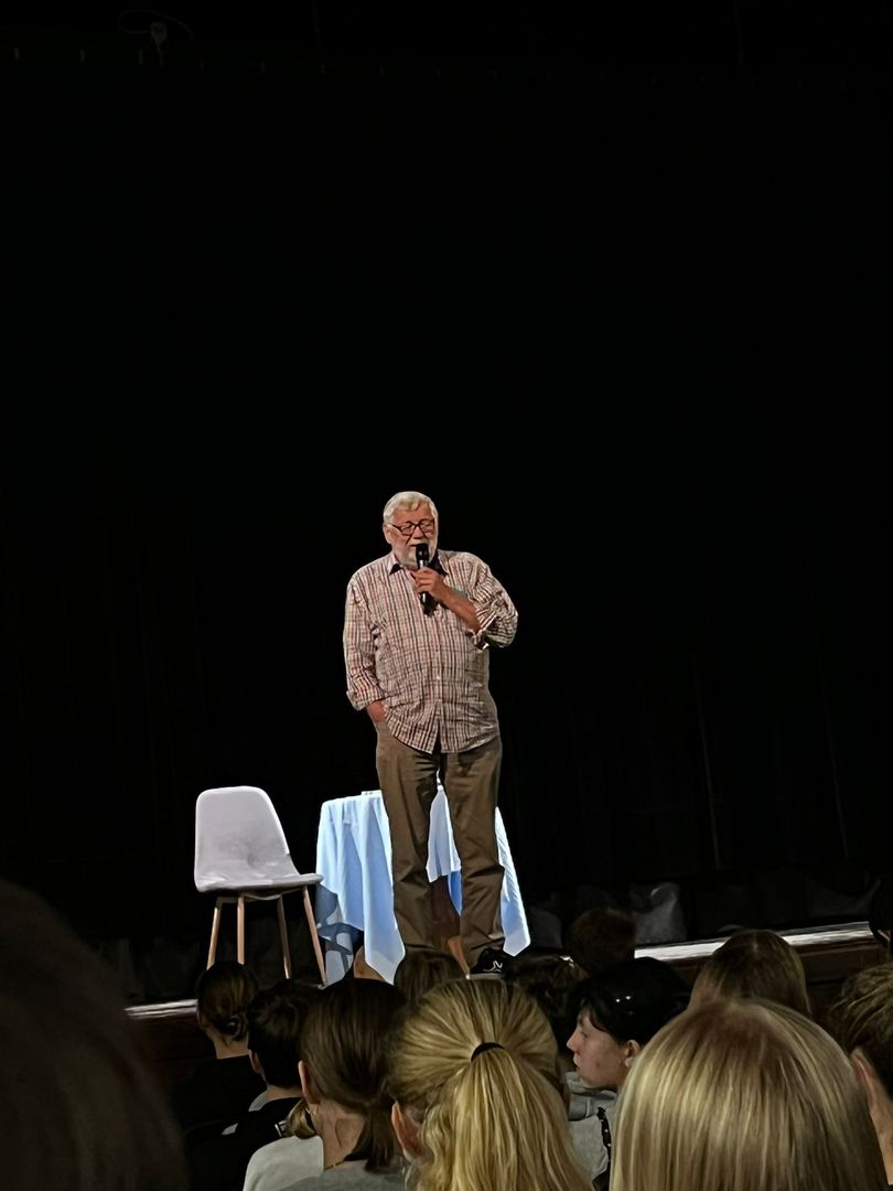 Jak se vyvíjela česká investigativní žurnalistika, co je to „bílý kůň“, jak snadno lze koupit granát a jak to vlastně bylo s Jiřím Kajínkem – to byla témata, o kterých našim GymKa studentům a studentkám v pátek 16. září vyprávěl v Orfeu Josef Klíma. S důrazem na kriminalitu mládeže a s nádechem senzacechtivosti vykládal o nejzajímavějších případech své kariéry, ale když došlo na otázky publika, rozpovídal se i o svých začátcích a o tom, jak ještě jako gymnaziální student vyhrával nejrůznější literární soutěže a jak ho láska k psaní dovedla až ke studiu žurnalistiky na Univerzitě Karlově. Tam prý zjistil, že psát o reálných příbězích a skutečnostech může být někdy ještě zajímavější, než fabulovat své vlastní. A tak se zrodil novinář, jehož provází téma divokých devadesátek celou jeho kariéru – od pořadu Na vlastní oči,odkud ho zná většina třicátníků a starších, až po nedávný podcast České podsvětí s Adamem Miklicou.