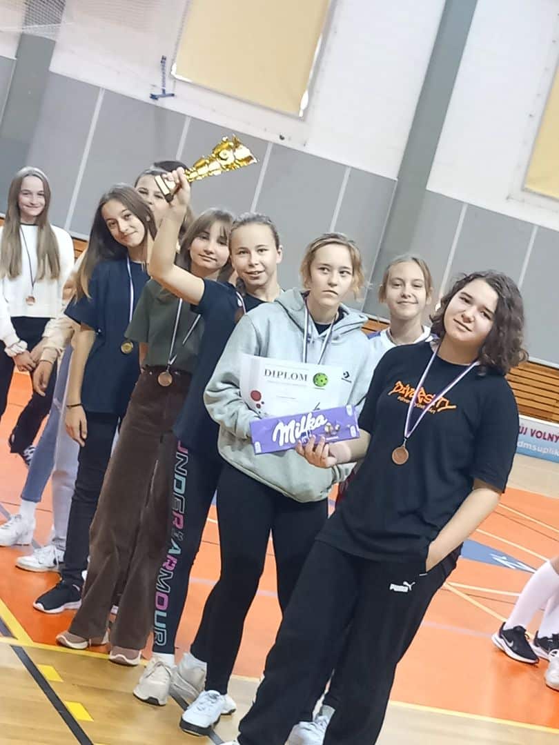 V úterý 25.11. 2022 se zúčastnily dívky z primy a sekundy okresního florbalového turnaje v kadaňské sportovní hale. Gymnázium Kadaň reprezentovaly z primy Gregušová Klára, Jursíková Klára, Nečasová Monika, Vodochodská Ellen, Šindelářová Nikol, Taxová Daria, Vašíčková Kamila a ze sekundy Kolomá Klára, Liliana Smíšková a Hedvika Vodrážková. Našim nejmladším florbalistkám se podařilo získat třetí místo. Domů si každá z žákyň odvezla medaili a pro školu získaly pohár.