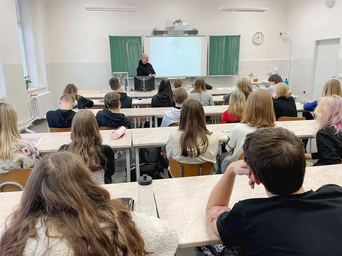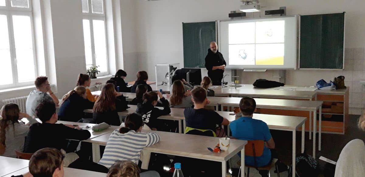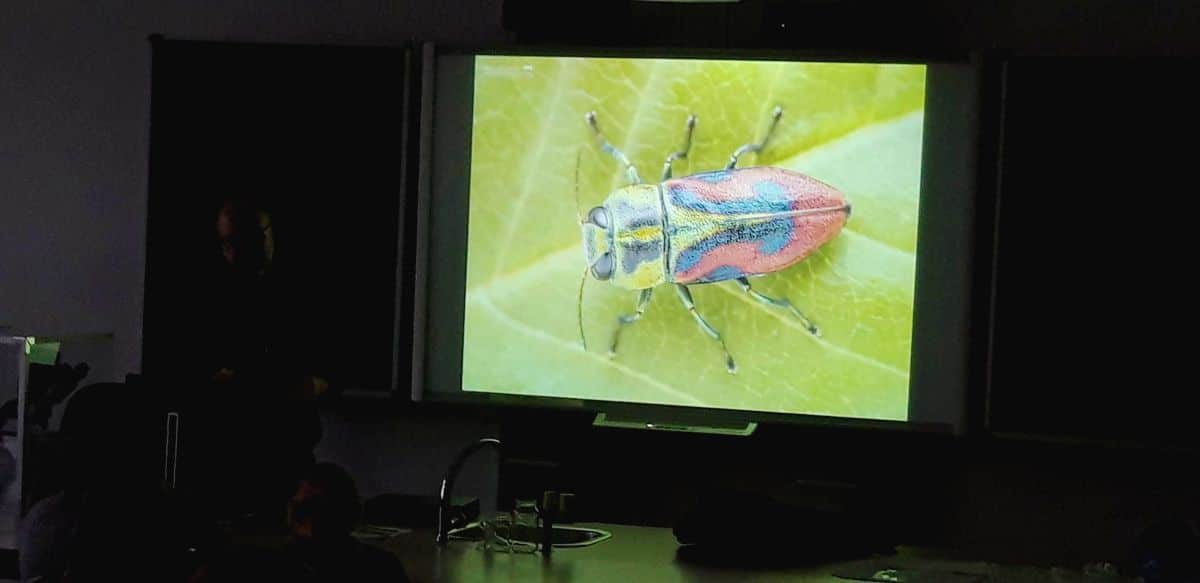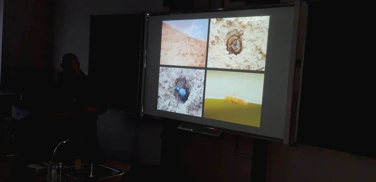 Pan Krásenský zajímavě a vtipně vyprávěl o běžných i vzácných druzích hmyzu žijících v našem regionu. Studenti se dozvěděli nejen o jejich způsobu života, rozmnožování a životním prostředí, které tyto druhy ke svému životu potřebují, který druh je nebezpečný a kterého se naopak nemusíme obávat, ale také praktické tipy na to, jak šetrně hmyz v přírodě sbírat pro potřeby určování a fotografování.