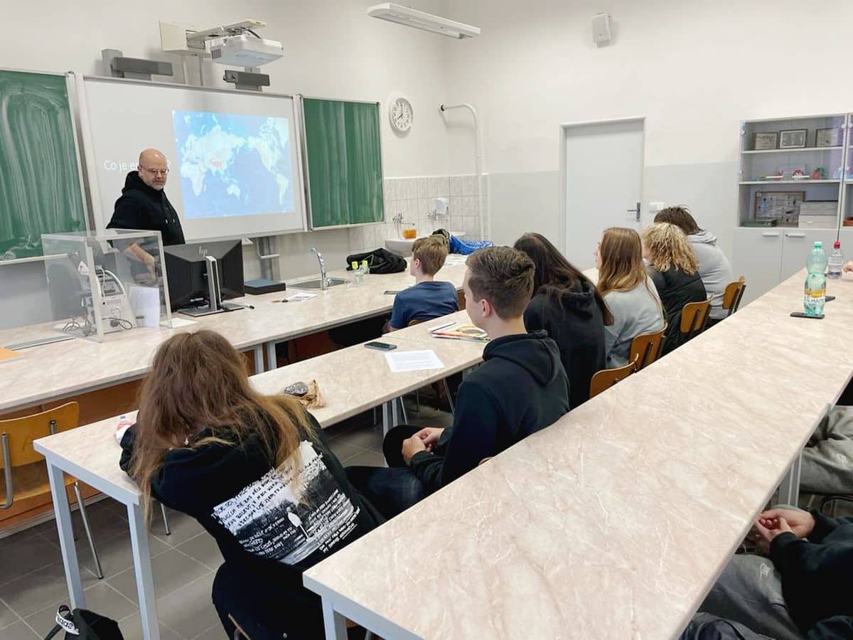 Studenti tercie, 2.A, 2.B a sexty měli možnost strávit příjemnou hodinu ve společnosti úžasného člověka, entomologa a fotografa, pana Pavla Krásenského, který pracuje v Oblastním museu v Mostě a dlouhodobě se zabývá monitorováním vzácného druhu hmyzu – válečka českého.