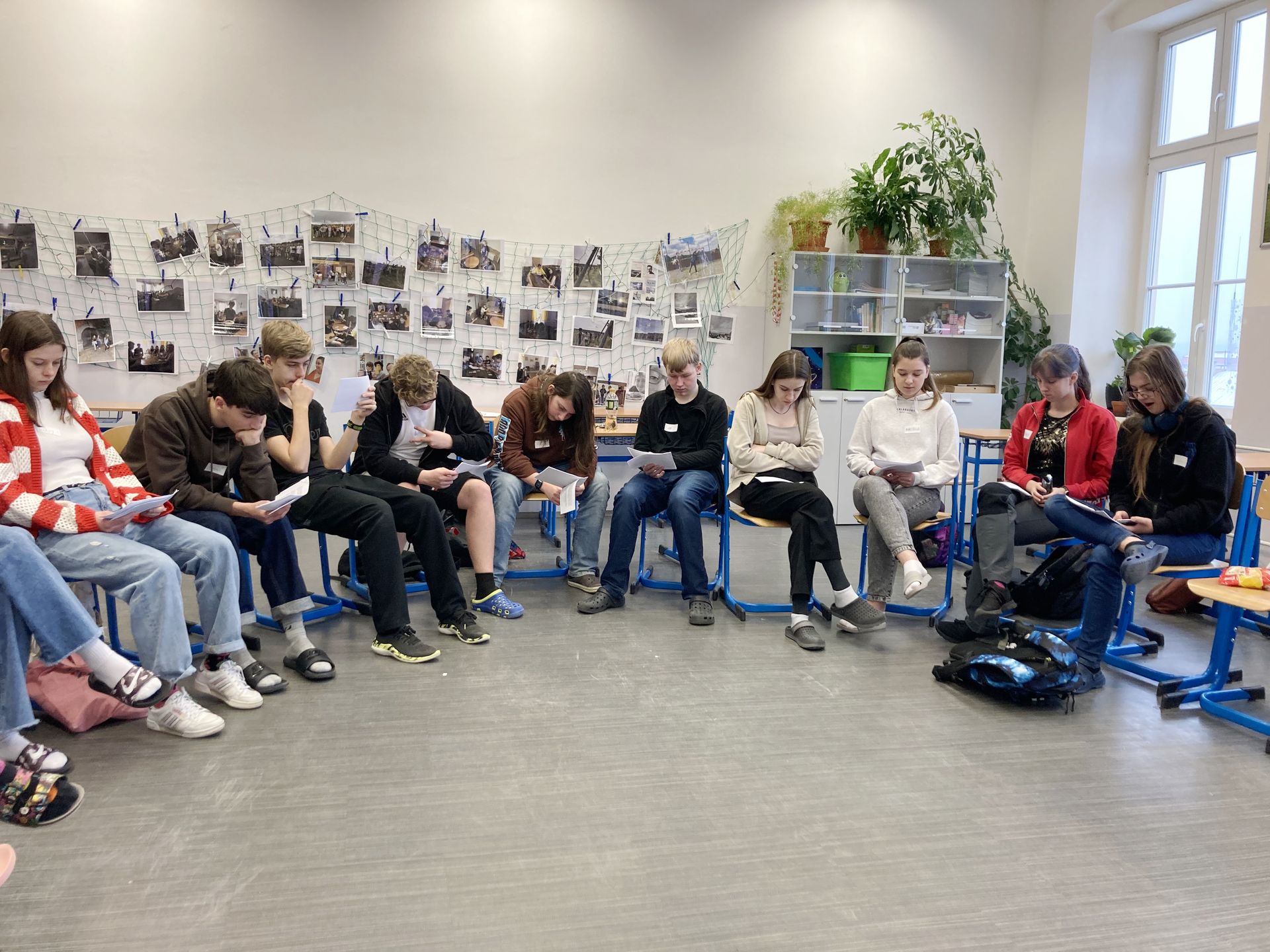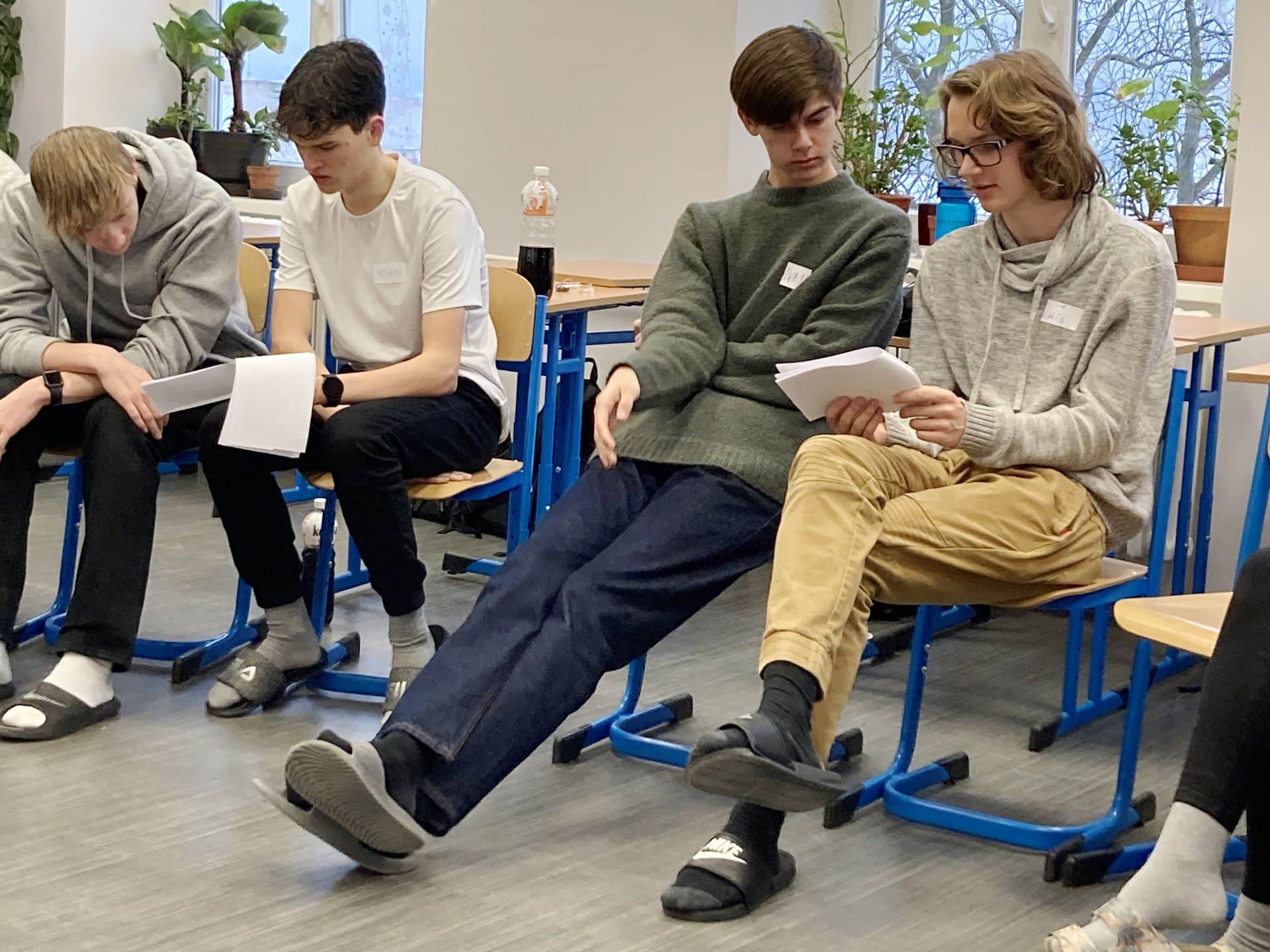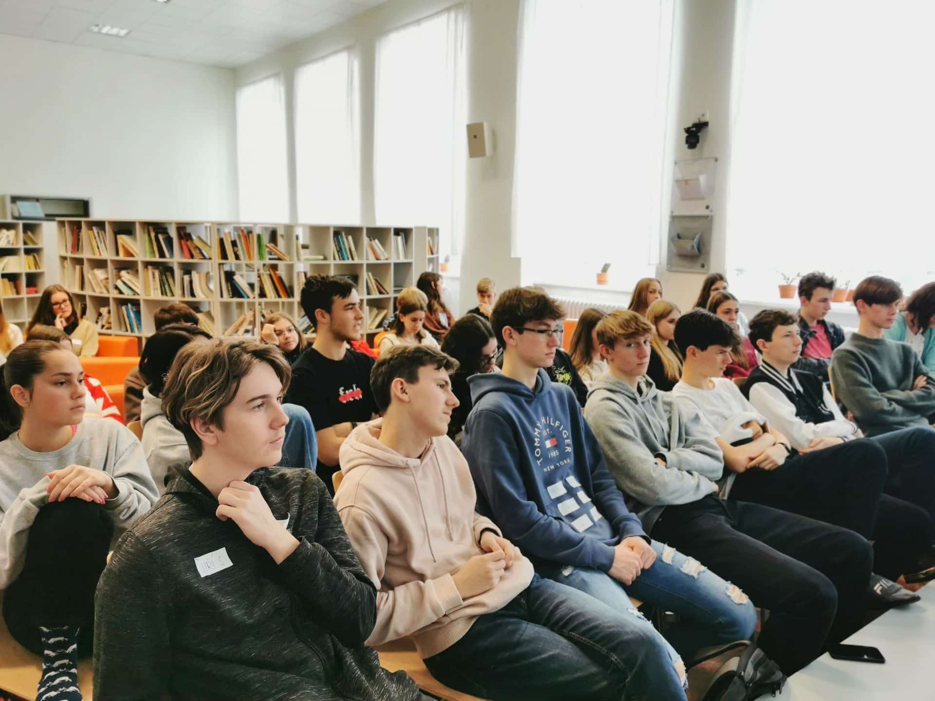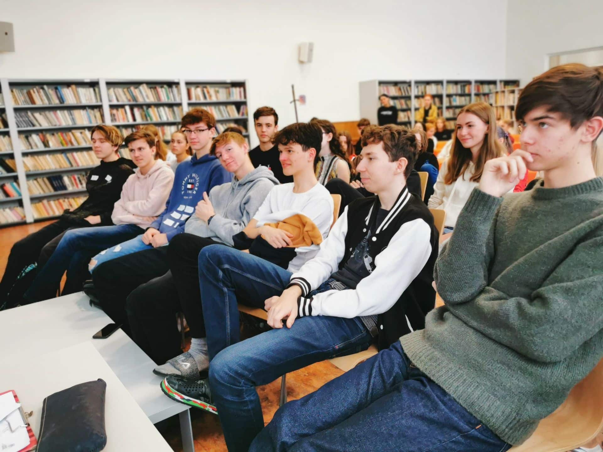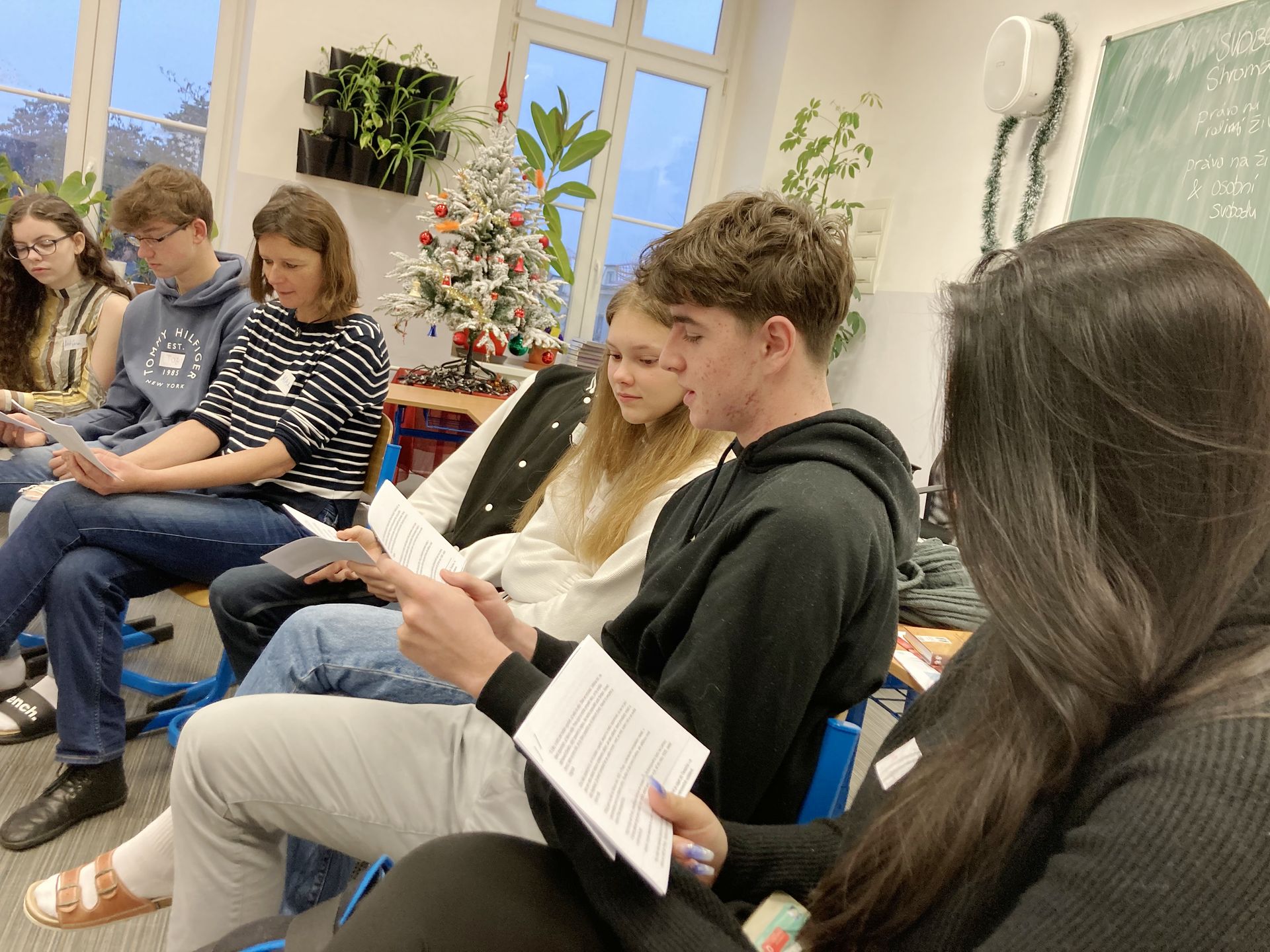 V pondělí 19. prosince jsme se zúčastnili s lektorkou Marií Smutnou z organizace Schola Fidentiae zajímavého workshopu, který zorganizovala naše paní učitelka Marcela Svejkovská. Seděli jsme v kroužku a četli jsme nahlas úryvky z knížky Opožděné vzpomínky Evelíny Merové. Povídali jsme si pak o tom, jak se Evelína – Eva – narodila roku 1930 v Praze, až do devíti let prožívala spokojené dětství, které pak přerušila válka a aplikování norimberských zákonů. Z Prahy se dostali do Terezína, odtud do Osvětimi, kde přišla o tatínka i o starší sestru s rodinou. A v dalším koncentračním táboře jí zemřela i maminka, čtrnáctiletá dívka se nemocná, vyčerpaná a s omrzlýma nohama dočkala osvobození, ale protože doma nikoho neměla, adoptoval ji sovětský židovský lékař Mer a po roce 1945 žili v Leningradě. Tady později vystudovala germanistiku, provdala se a narodily se jí děti.