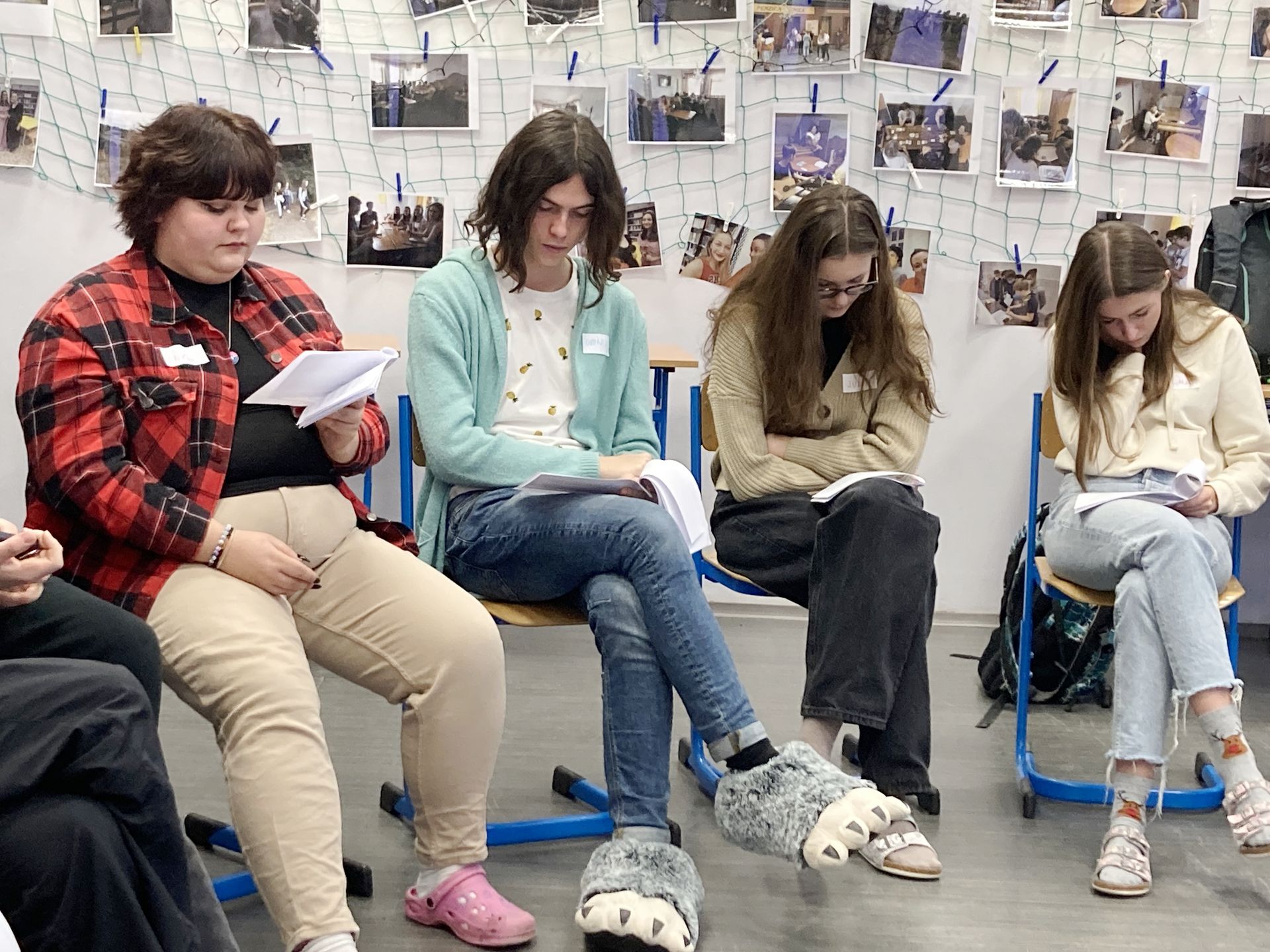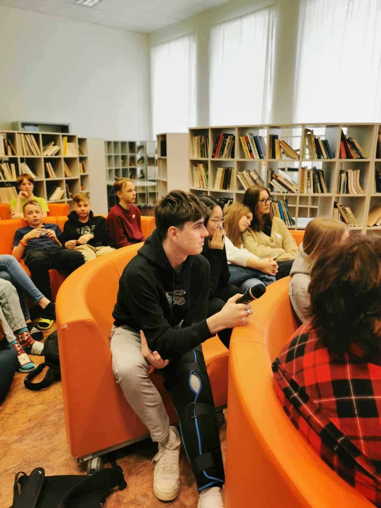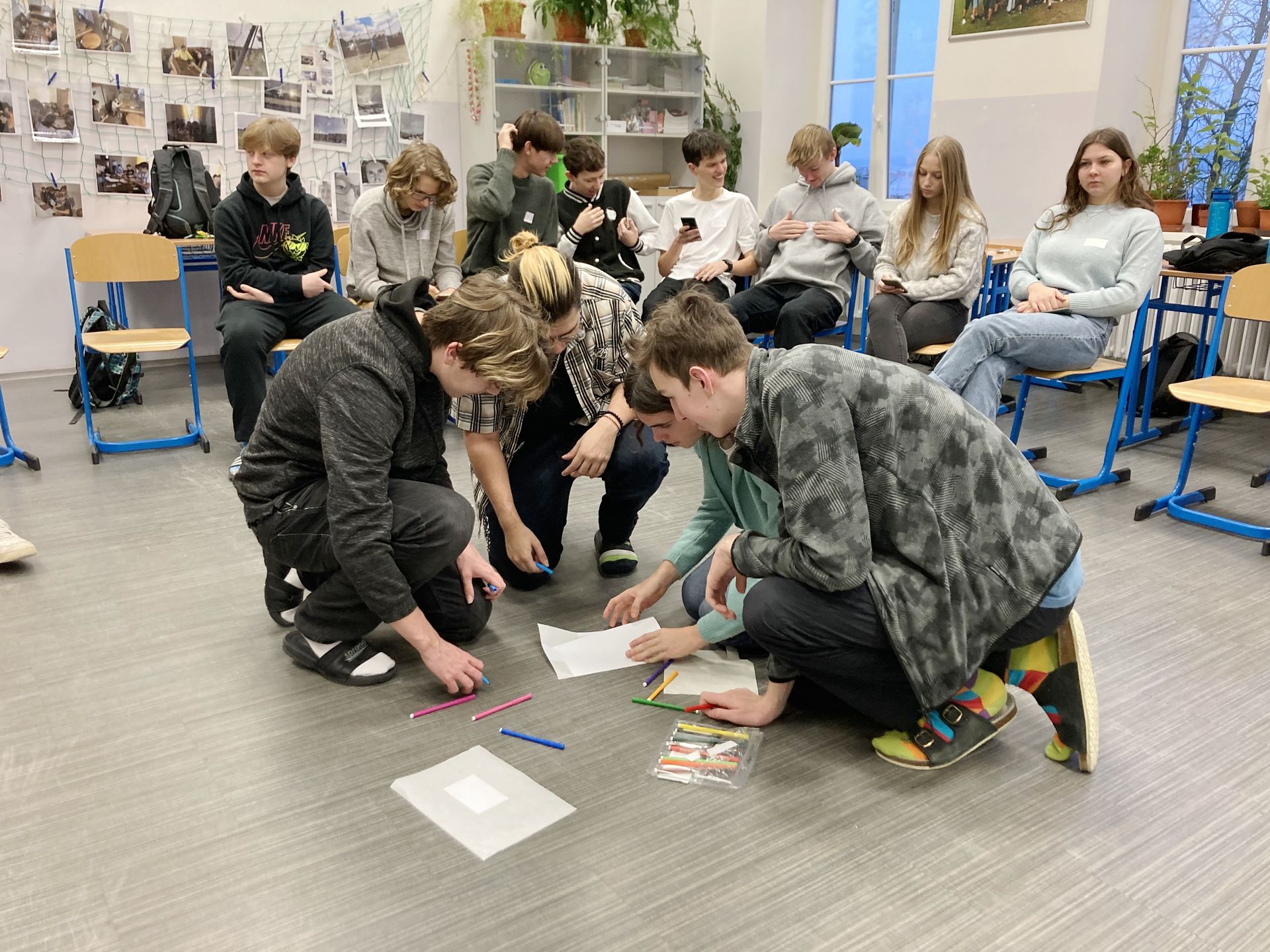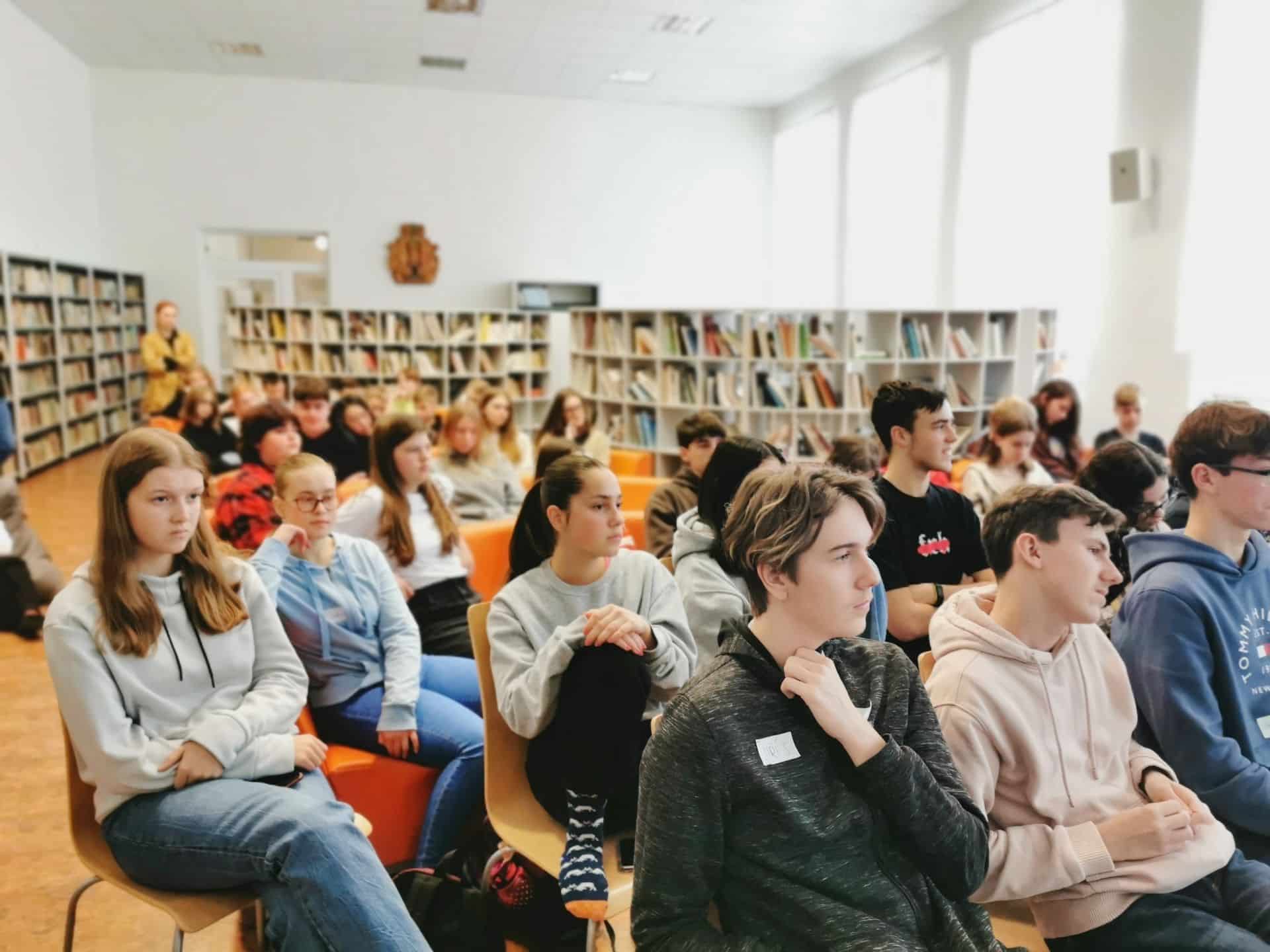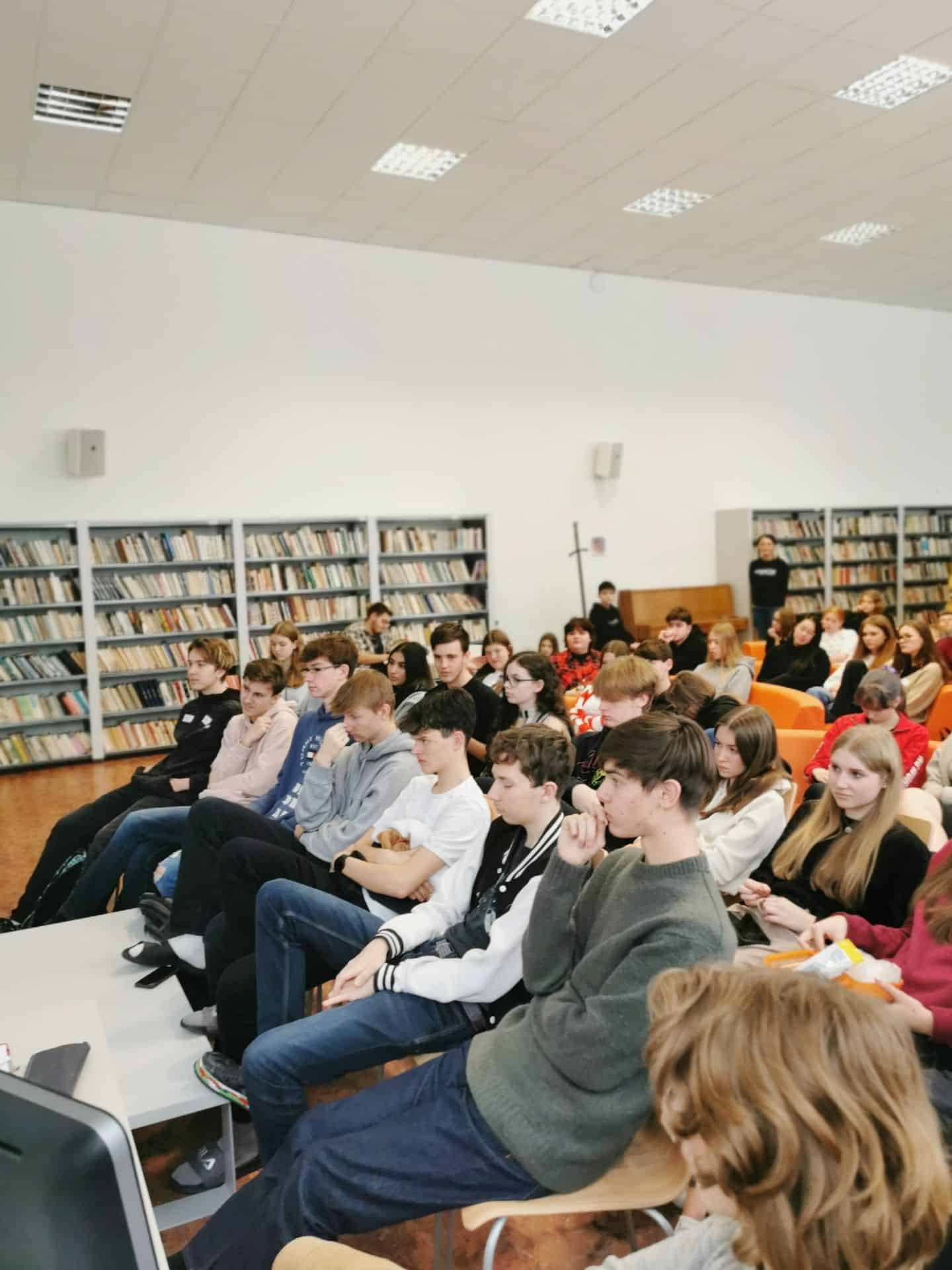 V pondělí 19. prosince jsme se zúčastnili s lektorkou Marií Smutnou z organizace Schola Fidentiae zajímavého workshopu, který zorganizovala naše paní učitelka Marcela Svejkovská. Seděli jsme v kroužku a četli jsme nahlas úryvky z knížky Opožděné vzpomínky Evelíny Merové. Povídali jsme si pak o tom, jak se Evelína – Eva – narodila roku 1930 v Praze, až do devíti let prožívala spokojené dětství, které pak přerušila válka a aplikování norimberských zákonů. Z Prahy se dostali do Terezína, odtud do Osvětimi, kde přišla o tatínka i o starší sestru s rodinou. A v dalším koncentračním táboře jí zemřela i maminka, čtrnáctiletá dívka se nemocná, vyčerpaná a s omrzlýma nohama dočkala osvobození, ale protože doma nikoho neměla, adoptoval ji sovětský židovský lékař Mer a po roce 1945 žili v Leningradě. Tady později vystudovala germanistiku, provdala se a narodily se jí děti.