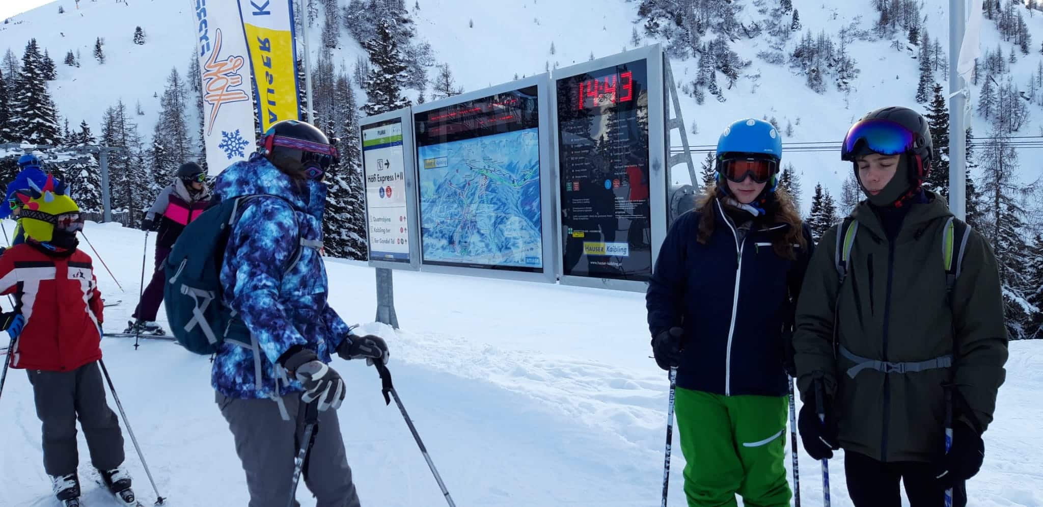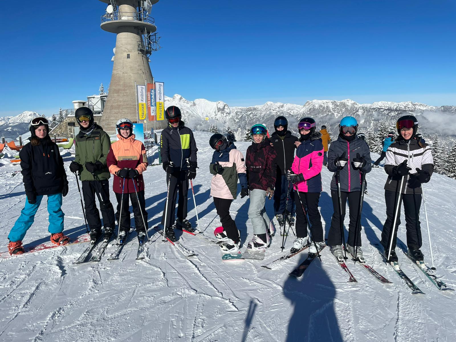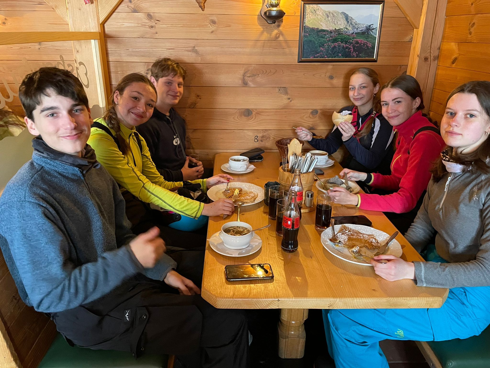 V sobotu jsme se sešli na autobusovém nádraží, naložili lyže a snowboardy a vyrazili autobusem směr Rakousko. Cesta byla příjemná a než jsme se nadáli, byli jsme na místě. Zatímco jsme se rozkoukávali a vybalovali, naši učitelé uvařili první večeři. V dalších pěti dnech byl režim víceméně stejný – vydatná snídaně, krásné celodenní lyžování s lehkým občerstvením v nějaké stylové horské restauraci a večeře, která začínala vždy výbornou polévkou. Každý den jsme končili nějakým programem, který si pro nás učitelé připravili – film o historii lyžování, soutěže, základy první pomoci a nechyběl ani závěrečný tanec!
