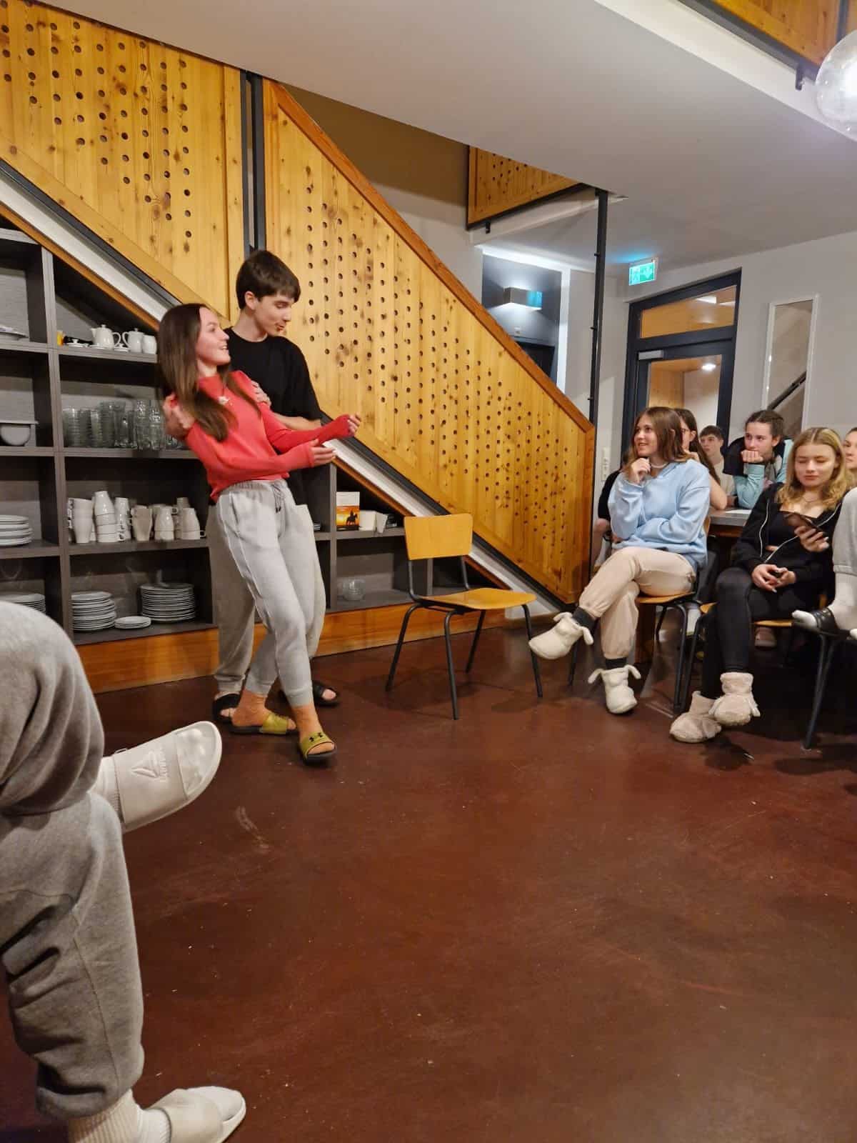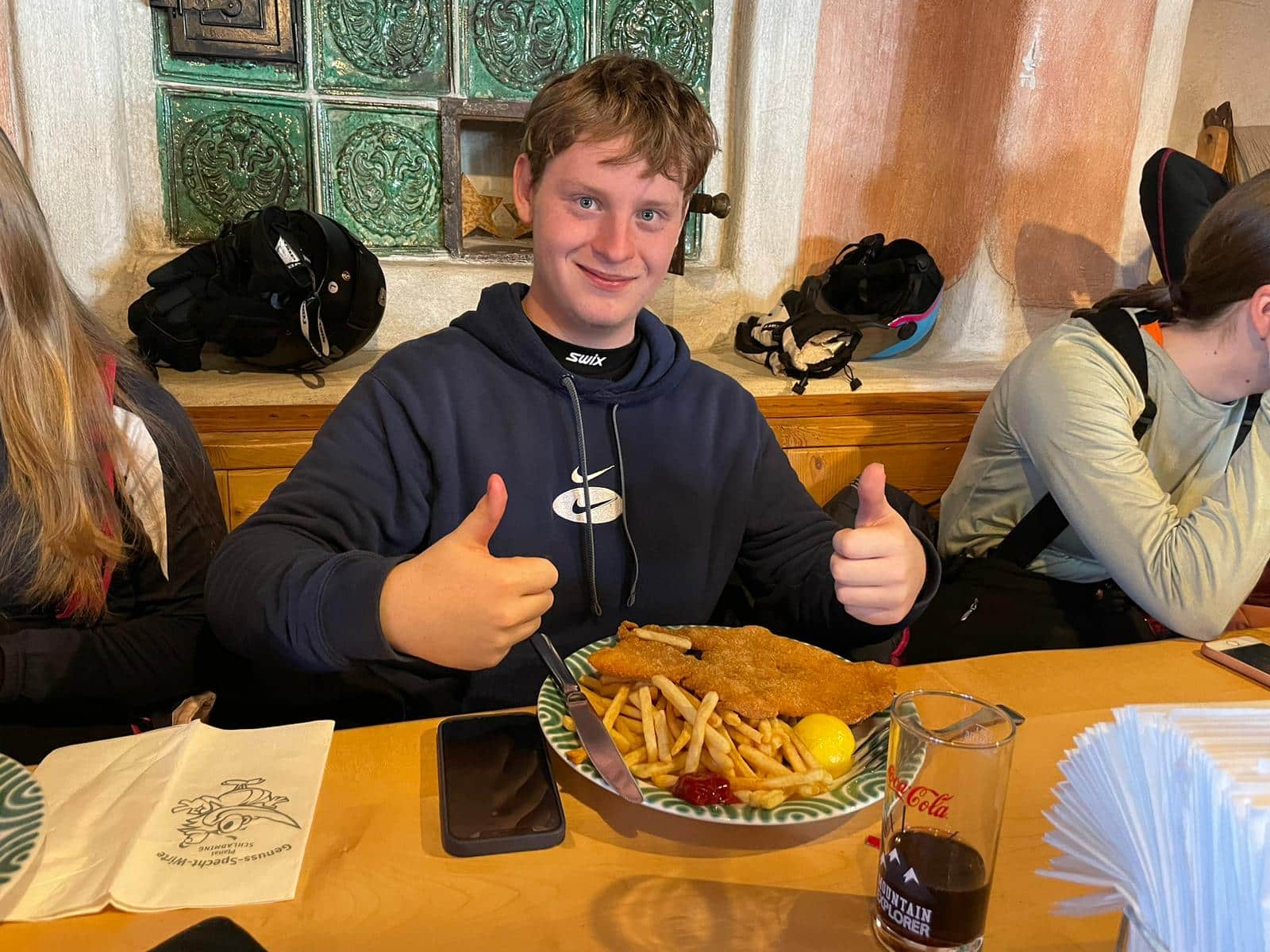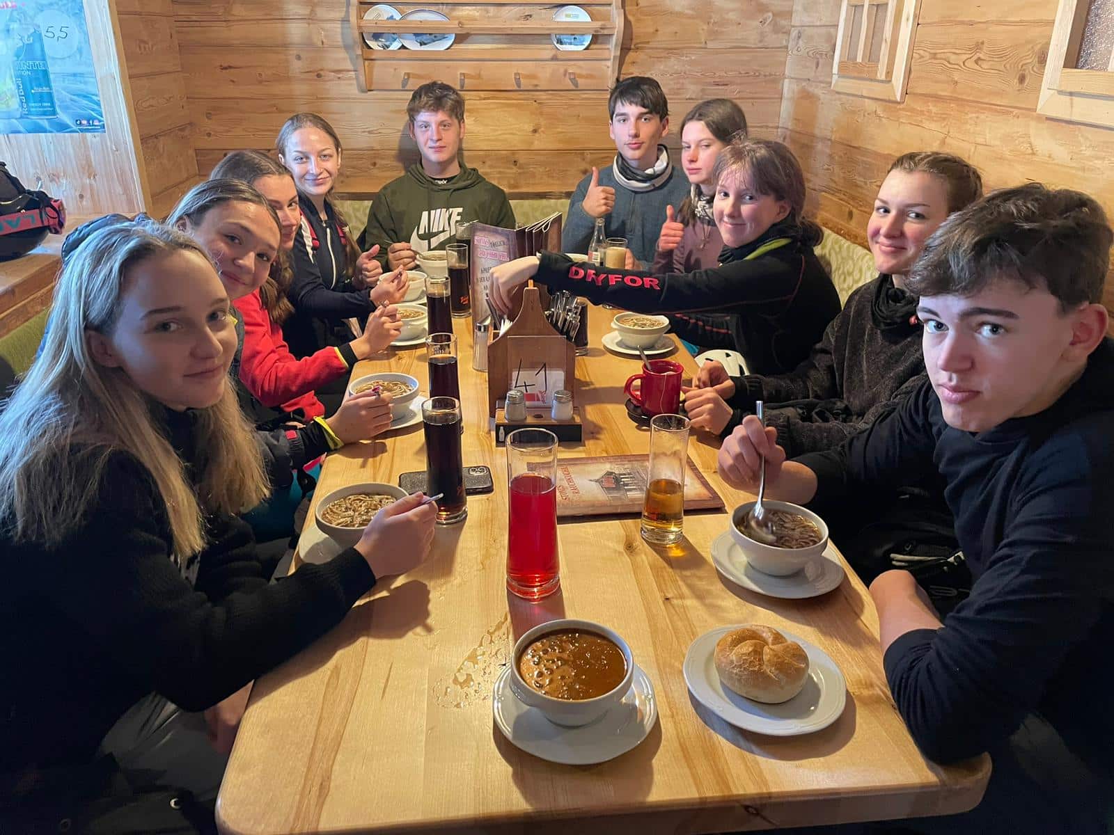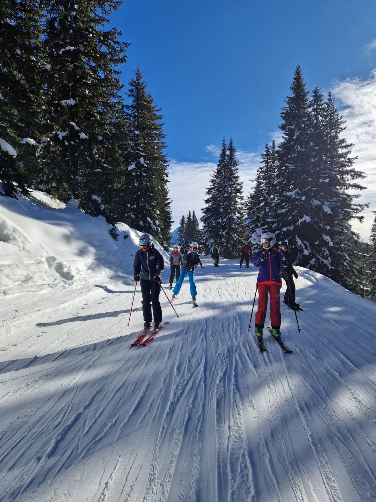 V sobotu jsme se sešli na autobusovém nádraží, naložili lyže a snowboardy a vyrazili autobusem směr Rakousko. Cesta byla příjemná a než jsme se nadáli, byli jsme na místě. Zatímco jsme se rozkoukávali a vybalovali, naši učitelé uvařili první večeři. V dalších pěti dnech byl režim víceméně stejný – vydatná snídaně, krásné celodenní lyžování s lehkým občerstvením v nějaké stylové horské restauraci a večeře, která začínala vždy výbornou polévkou. Každý den jsme končili nějakým programem, který si pro nás učitelé připravili – film o historii lyžování, soutěže, základy první pomoci a nechyběl ani závěrečný tanec!