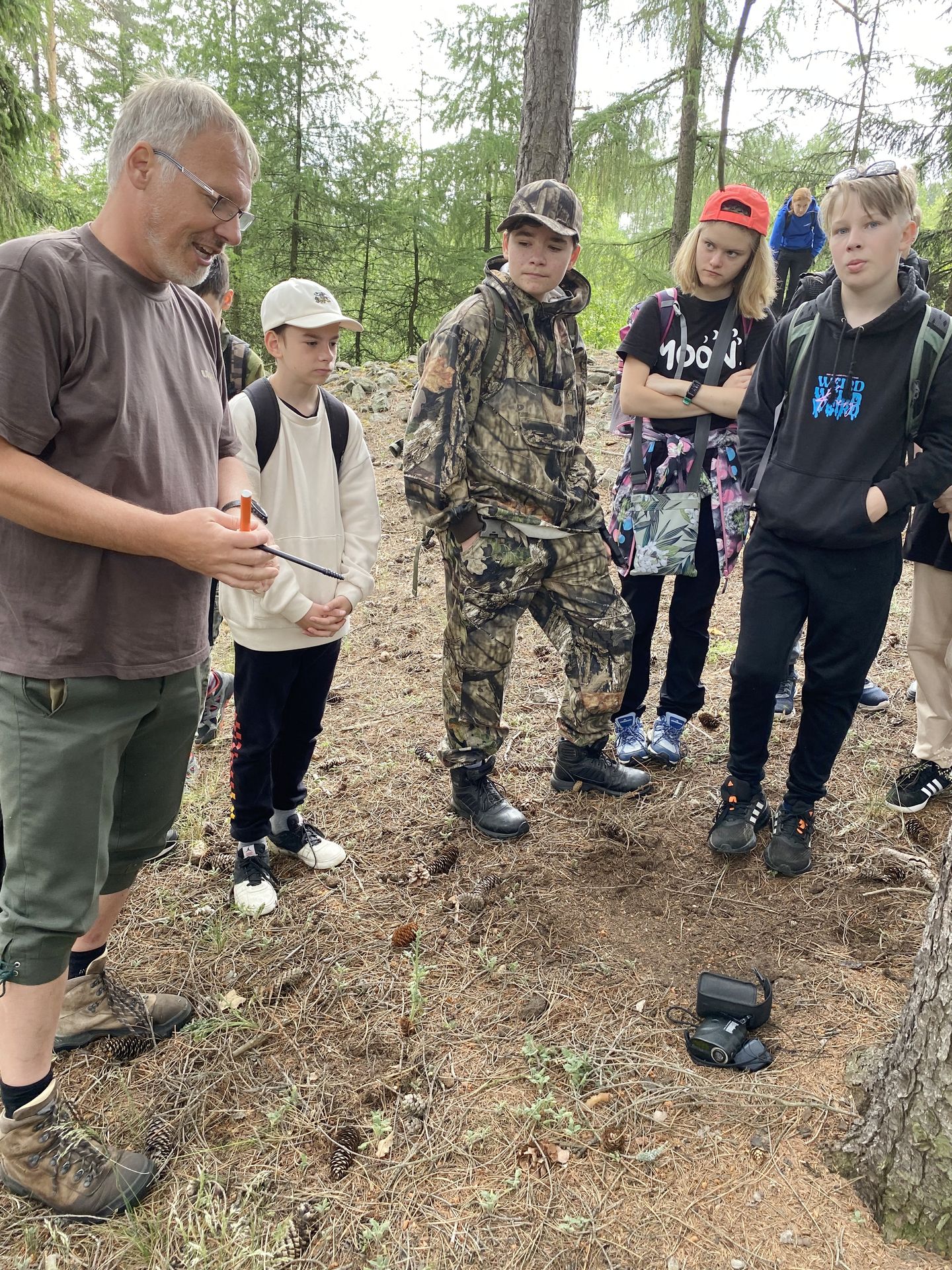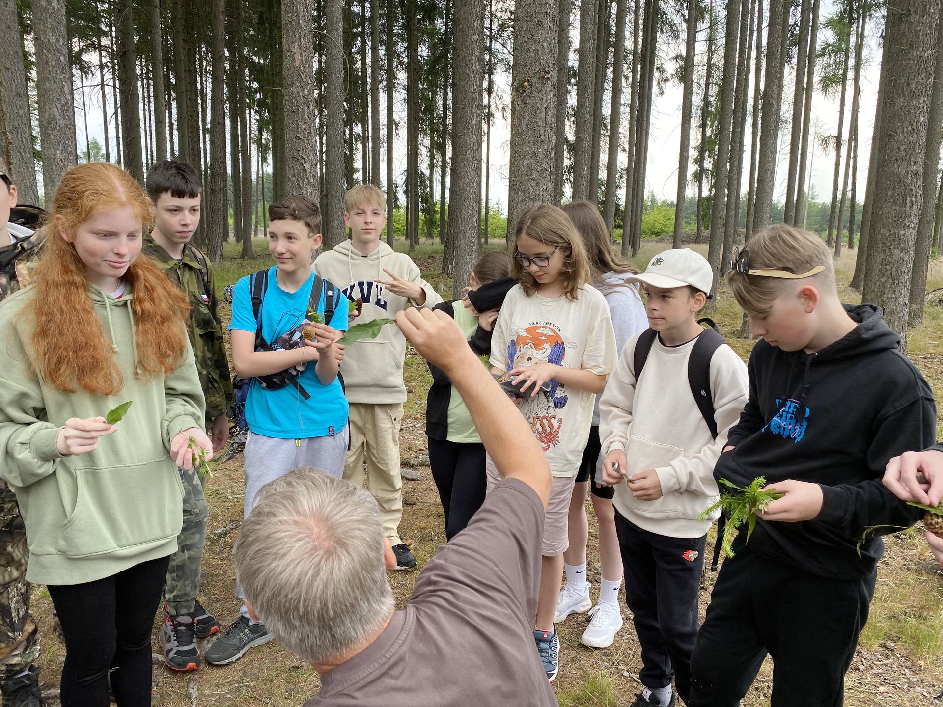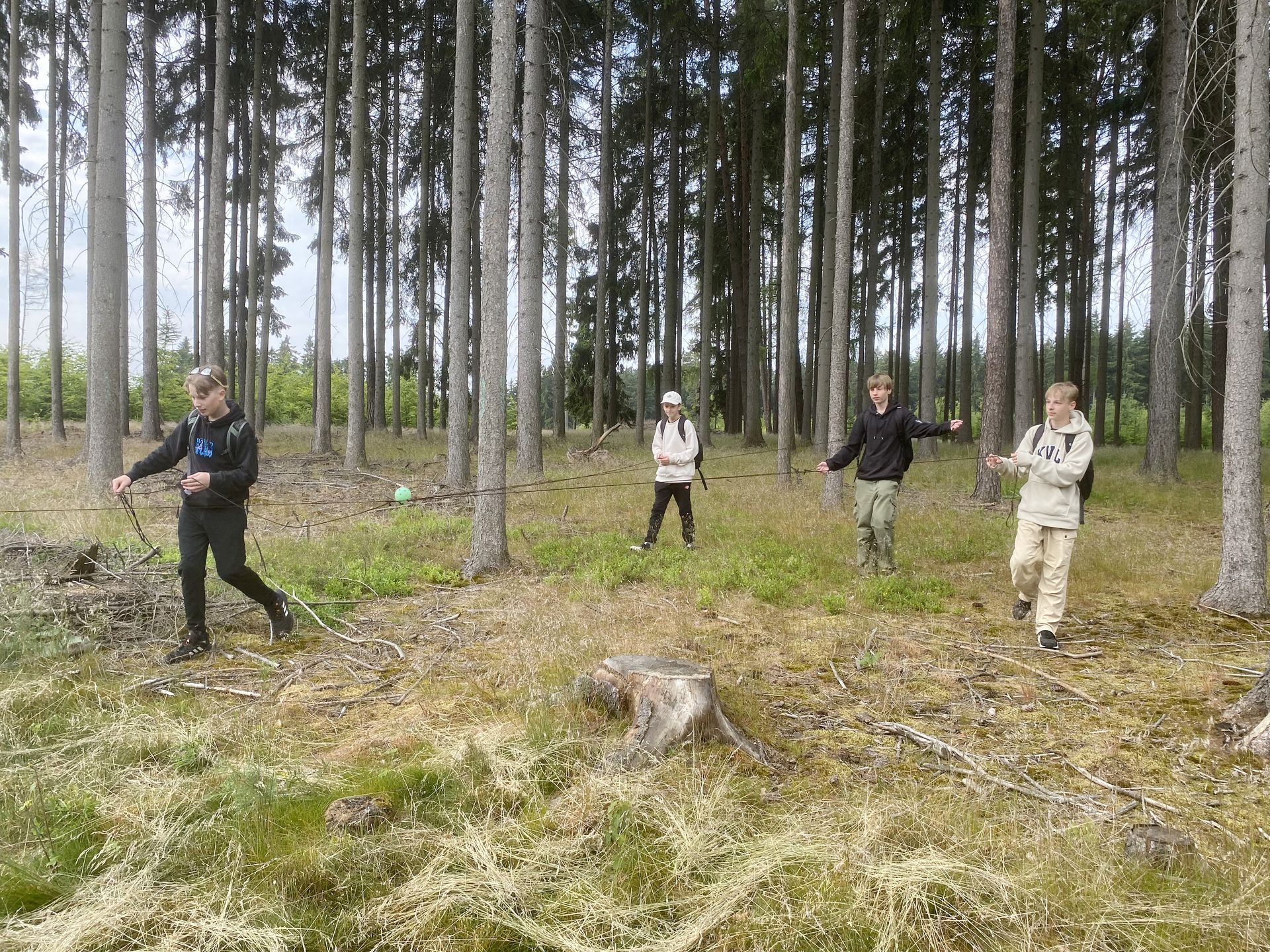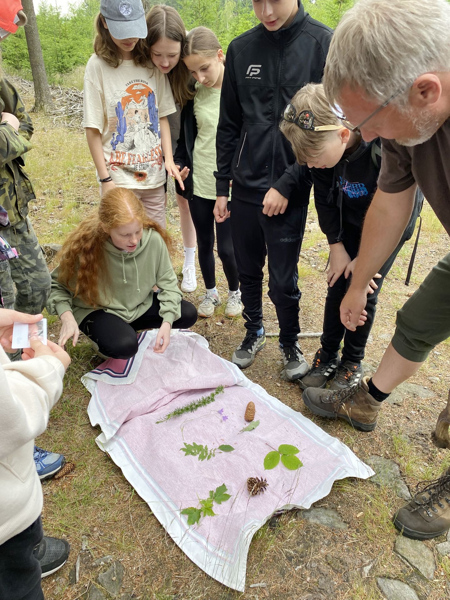 Ke konci školního roku jsme plní znalostí, ale lavice jsou nám těsné, a tak jsme s paní učitelkou Kuchtaninovou a třídní učitelkou Nix vyrazili prověřit své vědomosti do lesů. V mírném dešti na nás čekal pracovník Lesů ČR pan Hrouda, který měl pro nás již vše nachystáno – a nebylo toho málo! Zjistili jsme, jak vypadá mapa revíru a jak poznáme stáří stromu, což jsme si hned vyzkoušeli a do stromu našroubovali nebozez. Poznávali jsme druhy stromů a prozkoumali pasti na kůrovce. Když už jsme měli pocit, že se po lese pohybujeme jako srnky, dostali jsme za úkol rozdělit se do skupin a donést na další stanoviště míček propojený provázkem. To už jsme se soustředili spíš na spolupráci a na finální ohýnek.