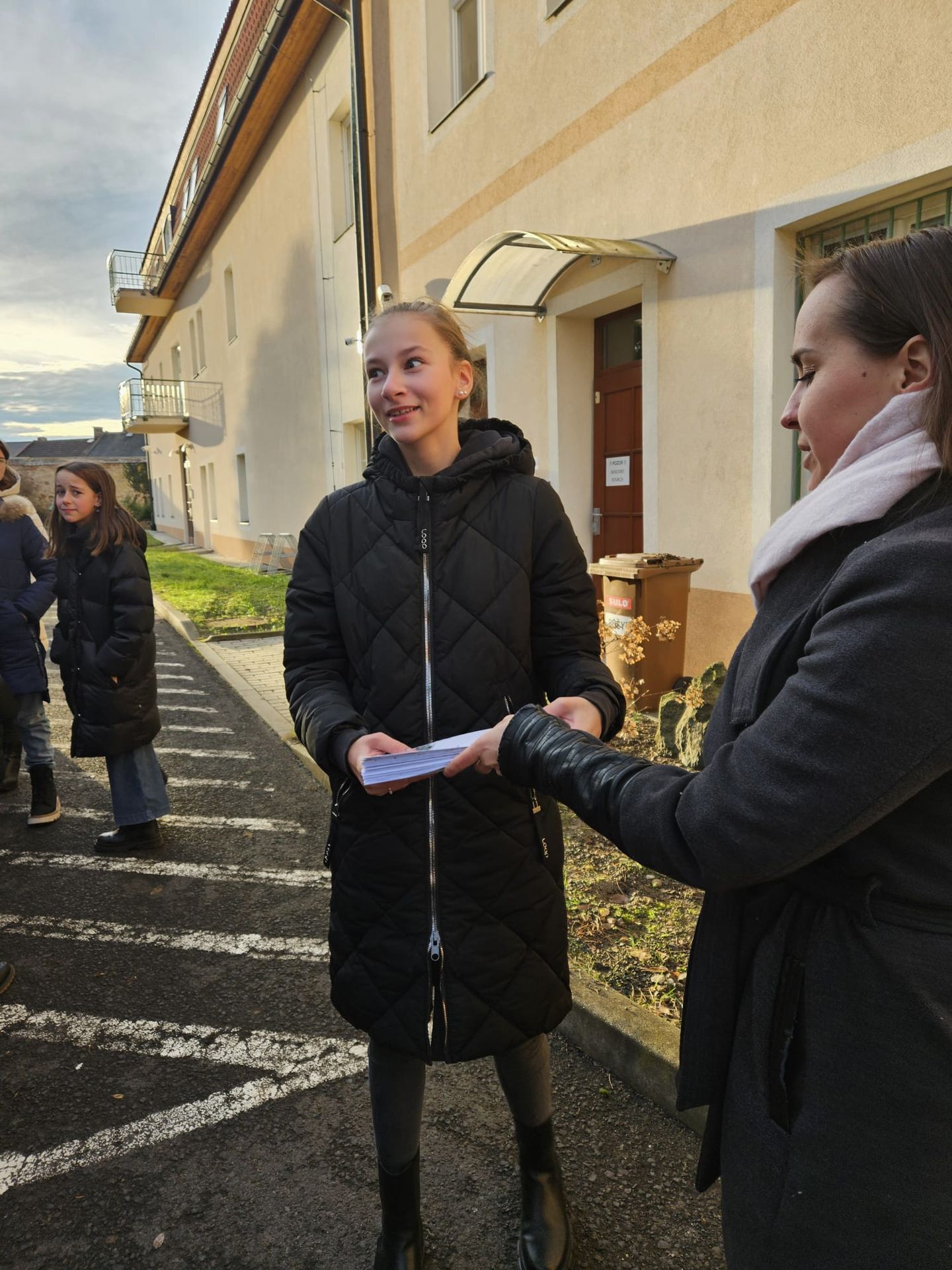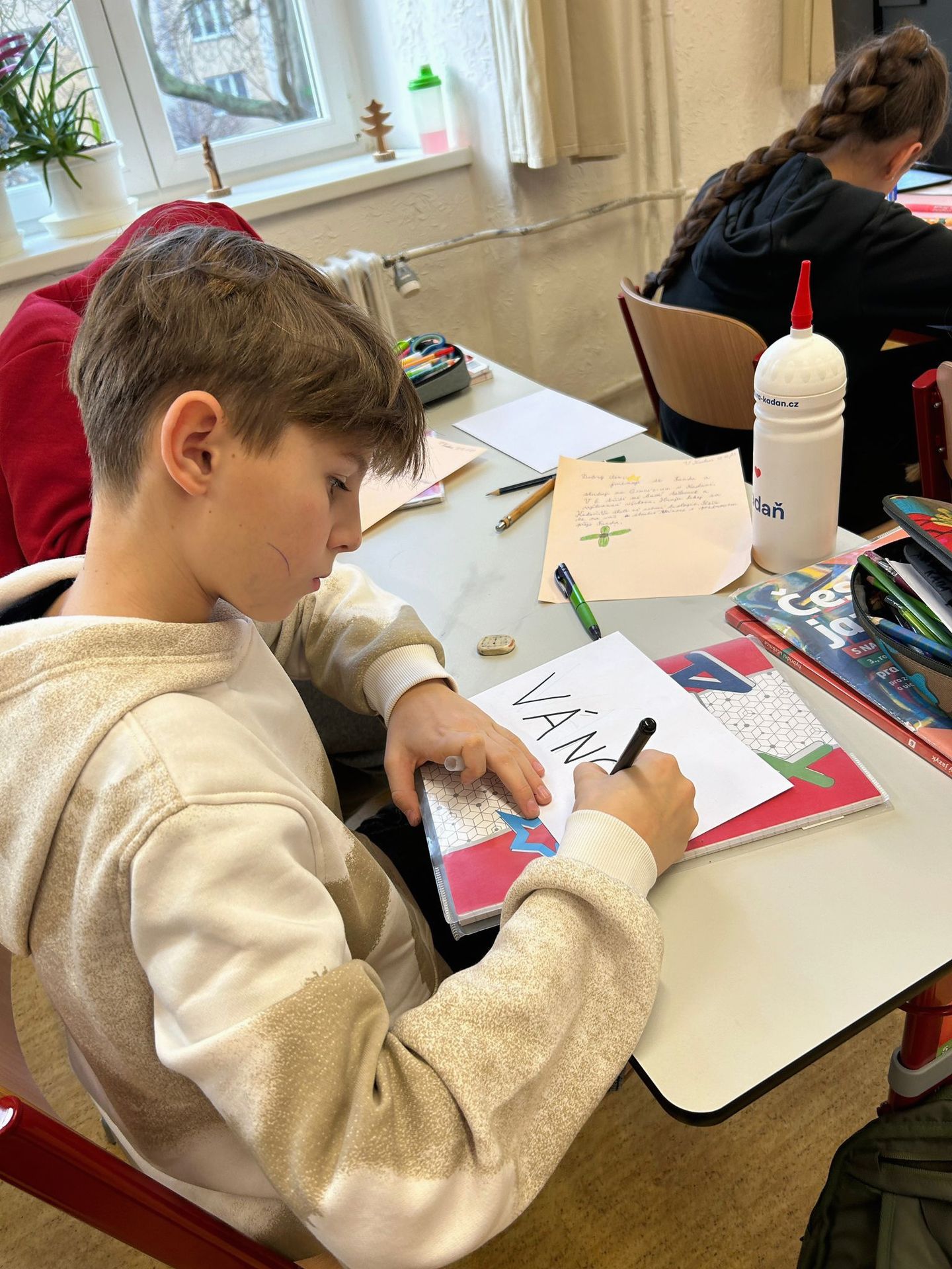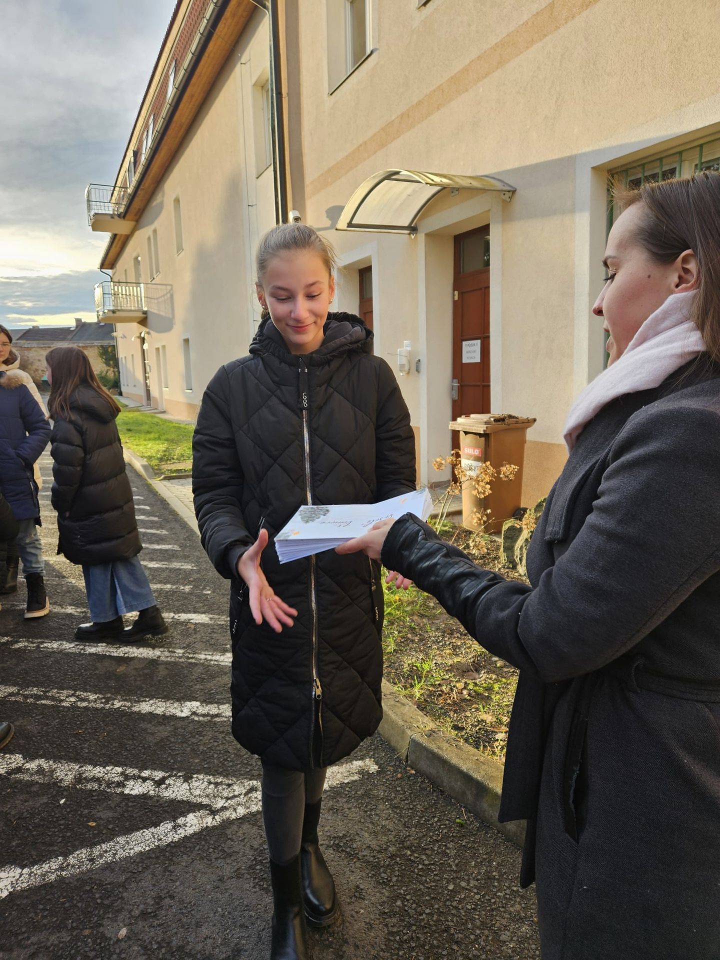 I když jsou naši primáni na gymnáziu teprve pár měsíců, přesto jsou velice šikovní a milí. Na hodině českého jazyka s Lenkou De Bolle se rozhodli napsat vánoční dopisy seniorům do Domova pro seniory v Kadani. Studentstvo tedy nelenilo, vzalo do rukou pera a začalo psát krásná přáníčka a vánoční pozdravy, aby udělalo dědečkům a babičkám radost. Po sepsání poté vyrazili přímo do Domova pro seniory v Kadani, aby dopisy osobně předali a doprovázely je kolegyně Sabina Fejsáková a Ludmila Fichtnerová.
