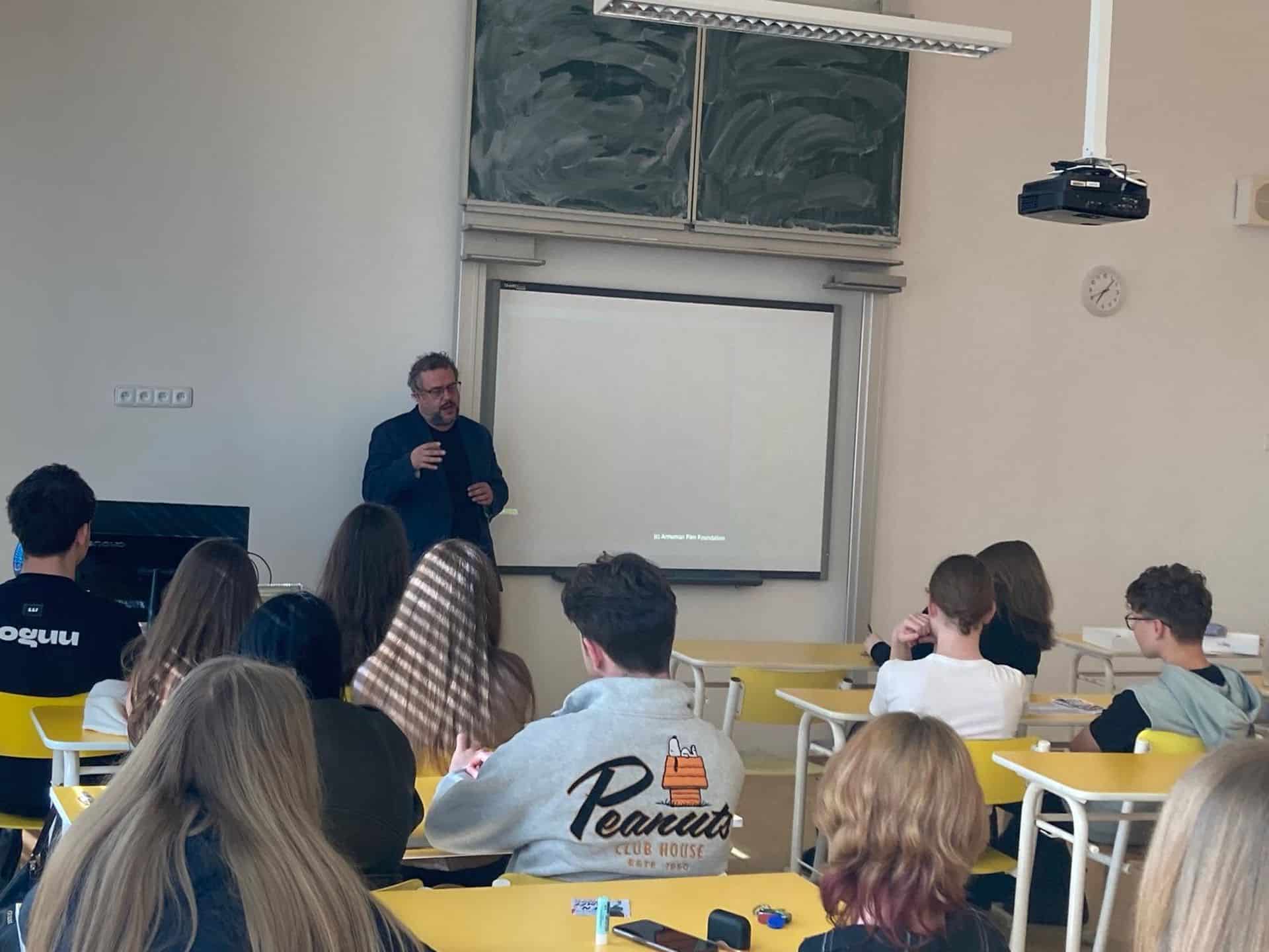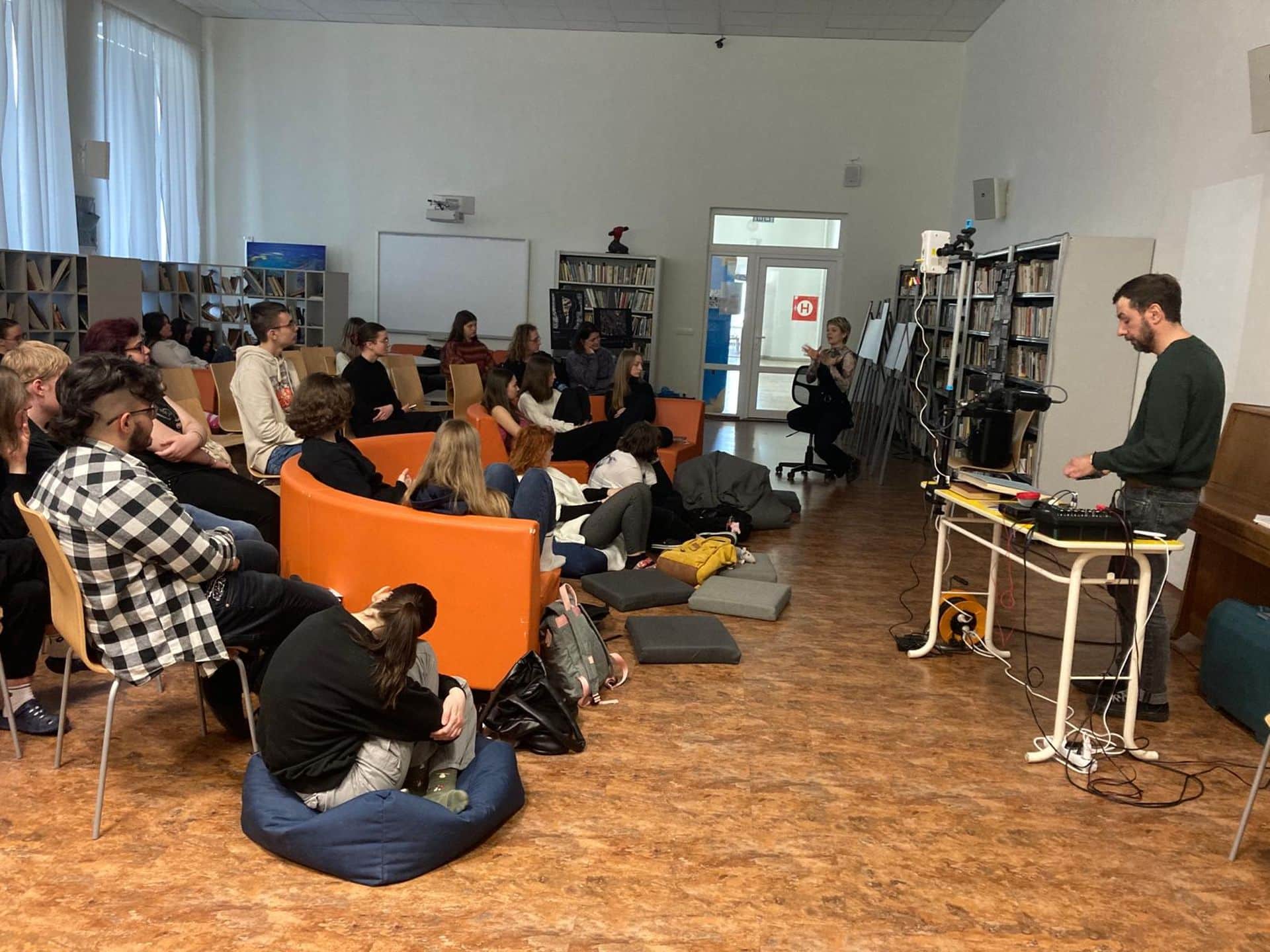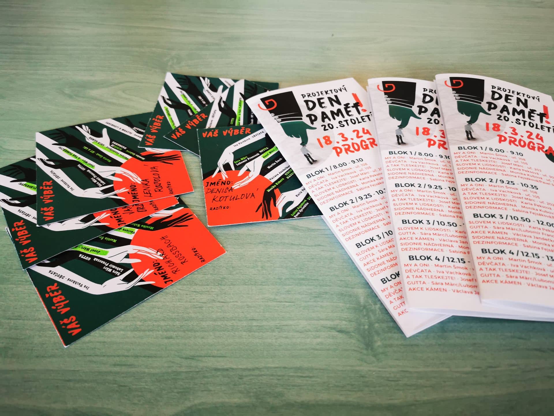 Většinu studentů vyššího gymnázia čekal v pondělí 18. března projektový den k moderním dějinám a mediální výchově. Předem si mohli napříč třídami zvolit, jakých workshopů a přednášek se zúčastní, či zda je zajímá performance Gutta. Od osmi do půl druhé vystřídali čtyři lekce, mezi nimi měli přestávky. Protože lekce trvaly 70 a přestávky jen 15 minut, rozhodli jsme se, že příště o jednu lekci ubereme a přestávky prodloužíme. Aby si studenti stihli sdělit dojmy, dojít do další učebny, nasvačit se. Po celý týden jsme se v hodinách dějepisu, ZSV i češtiny či angličtiny k pondělní akci vraceli a se studenty ji reflektovali. Jejich ohlasy byly ve velké převaze velice pozitivní, každému se líbilo něco, mnohým se líbilo všechno. Nejvíce oceňovali ty workshopy, které je donutily dívat se jinak, ptát se tak, jak je zatím vůbec nenapadlo.