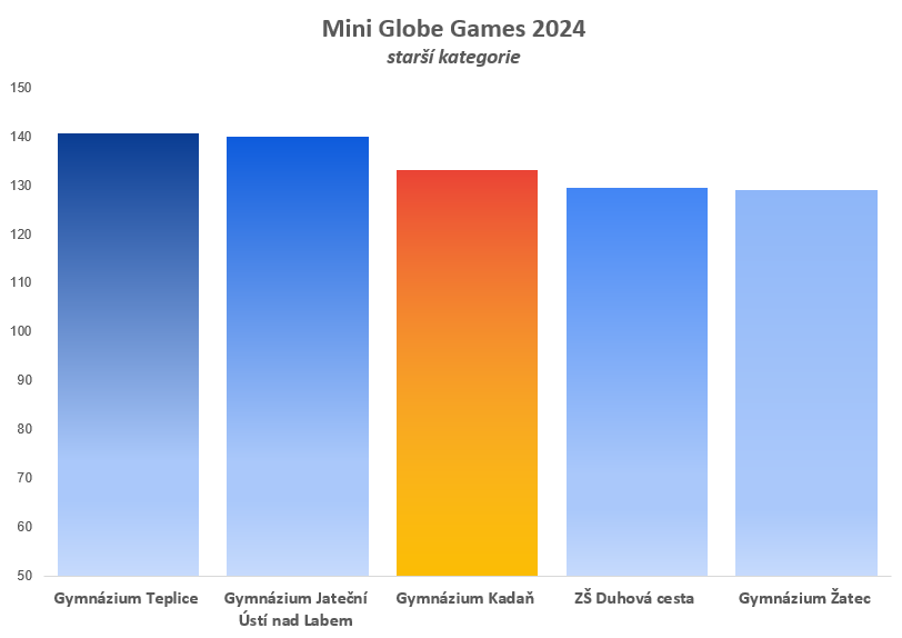 Letos v soutěži dominovalo Gymnázium Jateční z Ústí nad Labem, které získalo 1. místo v mladší kategorii a 2. místo ve starší kategorii. Ve starší kategorii vyhrál tým z Gymnázia Teplice. Naše Gymnázium Kadaň získalo si v obou kategoriích třetí místo. Za zmínku také stojí Gymnázium Louny, které si odnáší místo druhá v mladší kategorii. Gratulujeme nejen jim, ale i všem ostatním účastníkům.