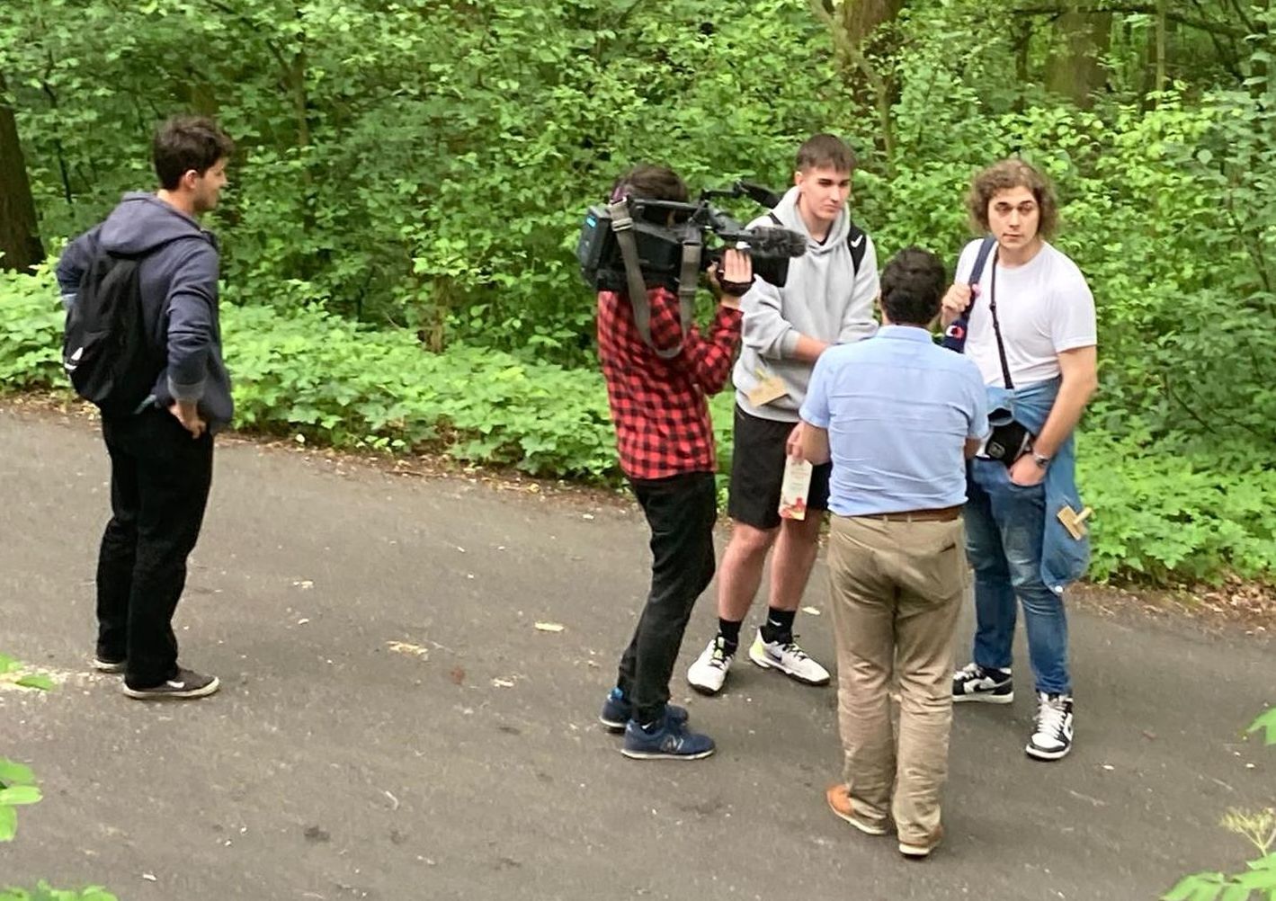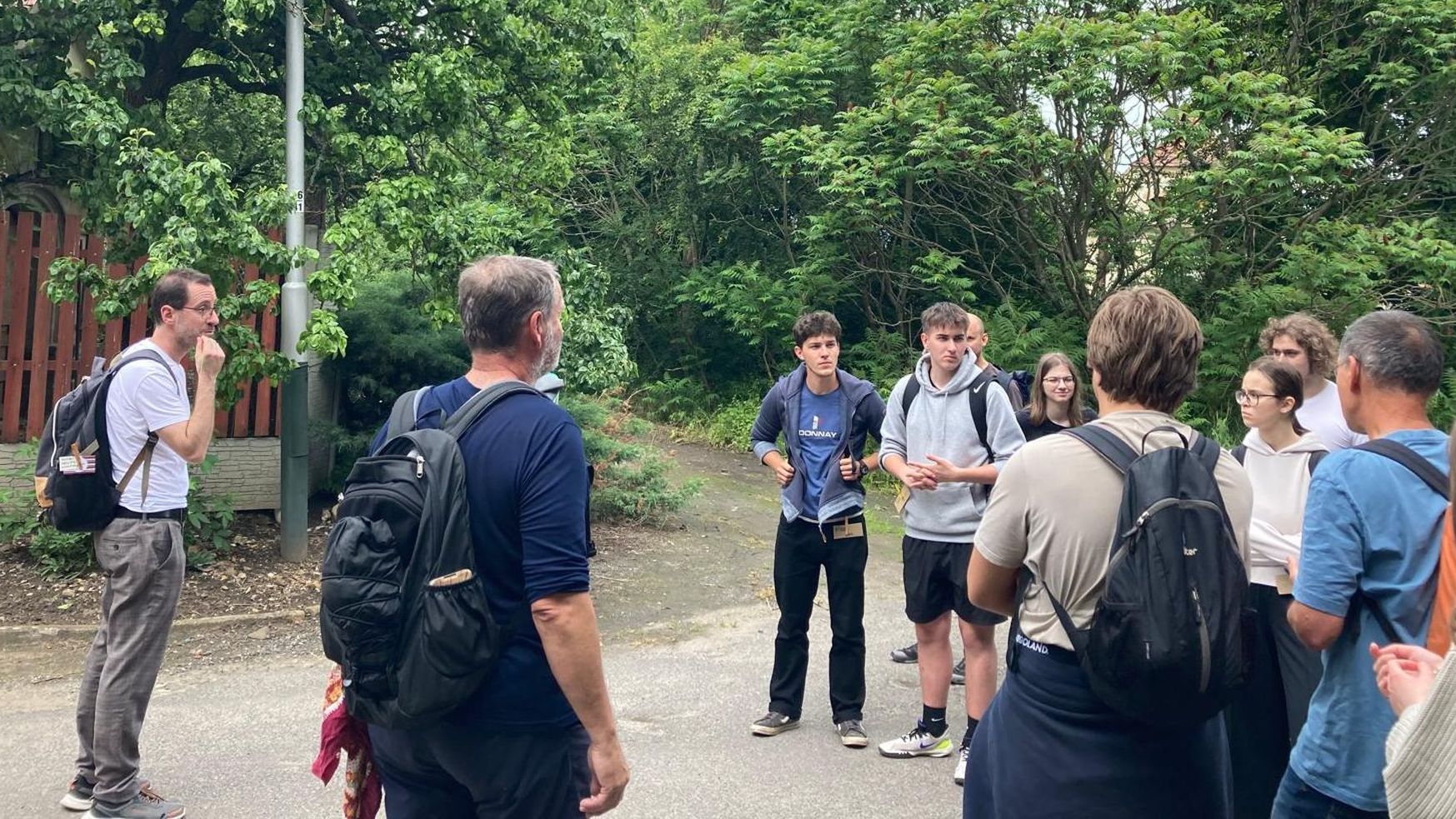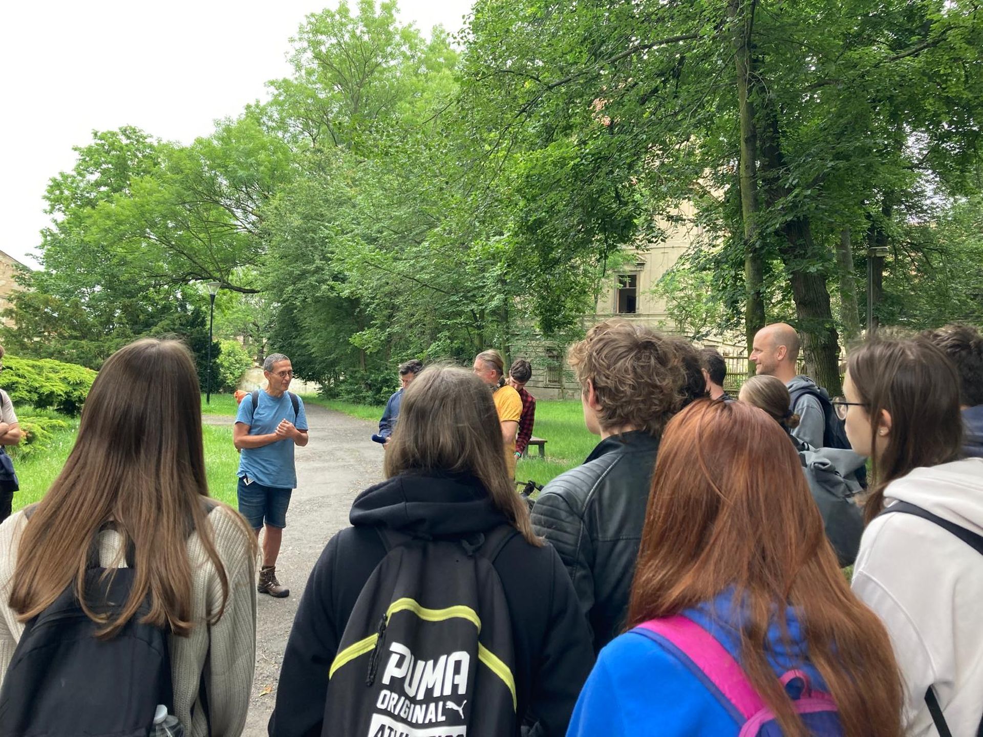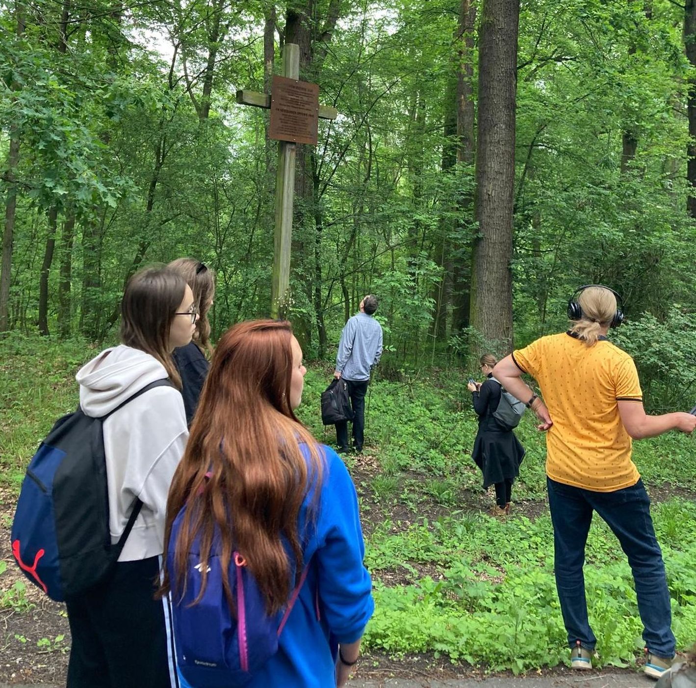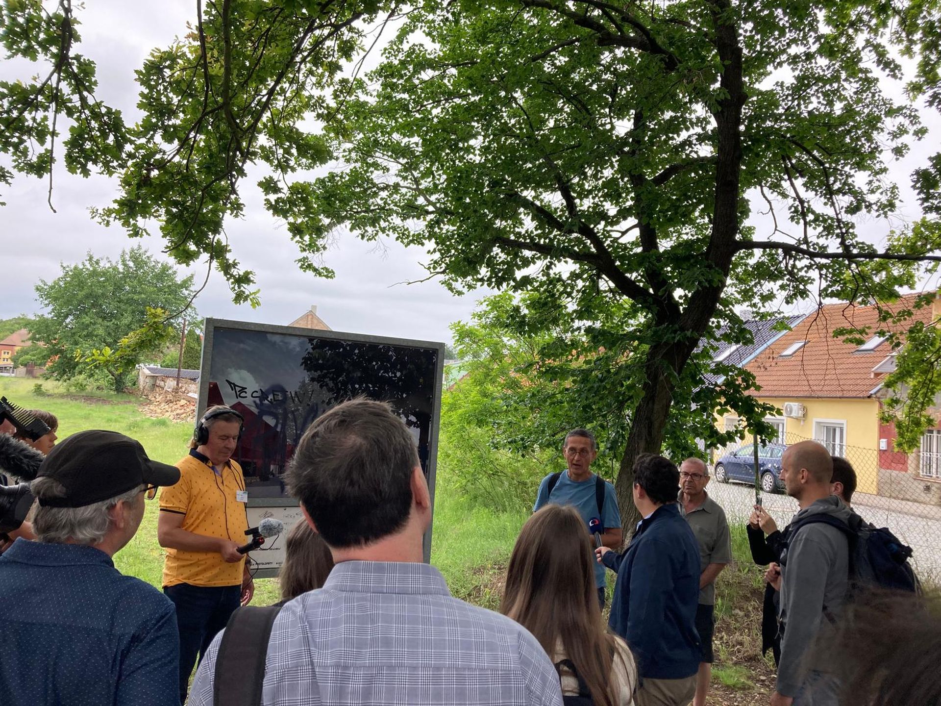 Hned na startu studenti odpovídali na dotazy reportérů Českého rozhlasu a České televize, ti pak s nimi absolvovali několik dalších kilometrů. Po cestě jsme se několikrát zastavili – např. na místě, kde ještě nedávno stála kasárna, která byla svědectvím největší hromadné vraždy v československých dějinách. A v současné době se na místě, v jejichž těsné blízkosti jsou dosud hromadné hroby, chystá projekt stavby rodinných domů. Takových absurdit je v Postoloprtech hodně, bohužel. Za školou jsme náhodou potkali pamětníka, jehož otce zde zastřelili a on pak chodil do školy a celý život žije blízko místa hromadných hrobů.