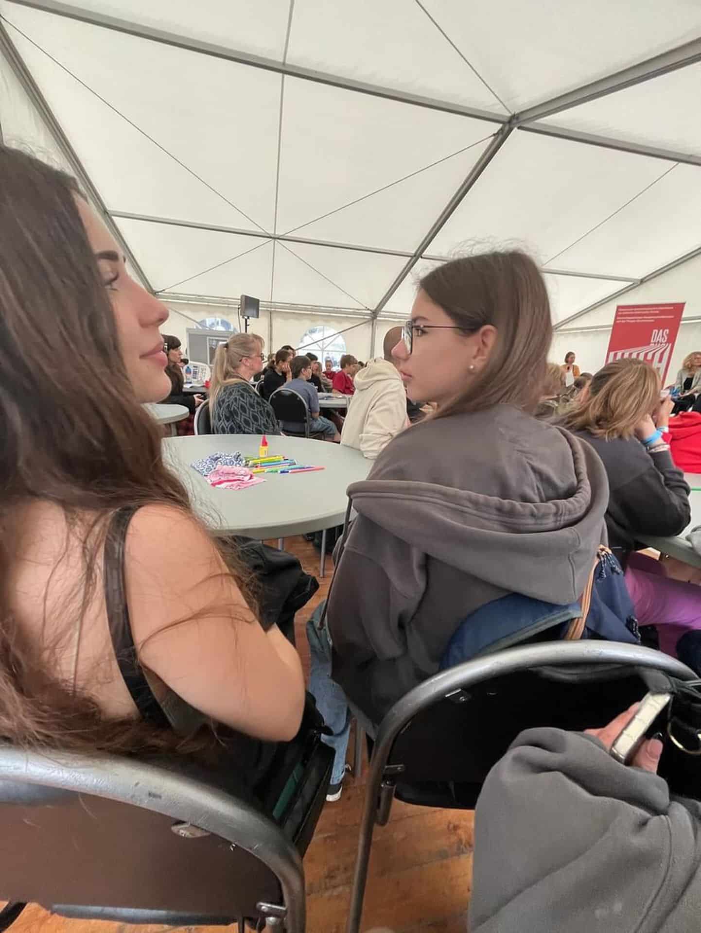 Autorka přednášela o své knize v němčině a měla vedle sebe překladatelku. Povídala o vytváření svého komiksu. Psala ho i ilustrovala.