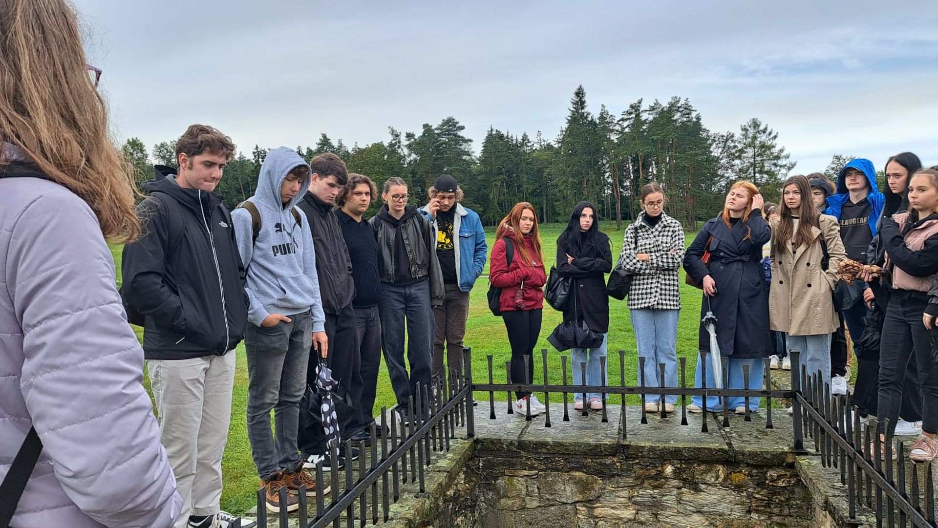 Ve čtvrtek 12. září 2024 se uskutečnila exkurze dějepisného semináře tříd 4. A, 4. B a oktávy do Lidic a památníku Heydrichiády. Exkurze se tematicky vztahovala k učivu druhé světové války, zejména protektorátu.