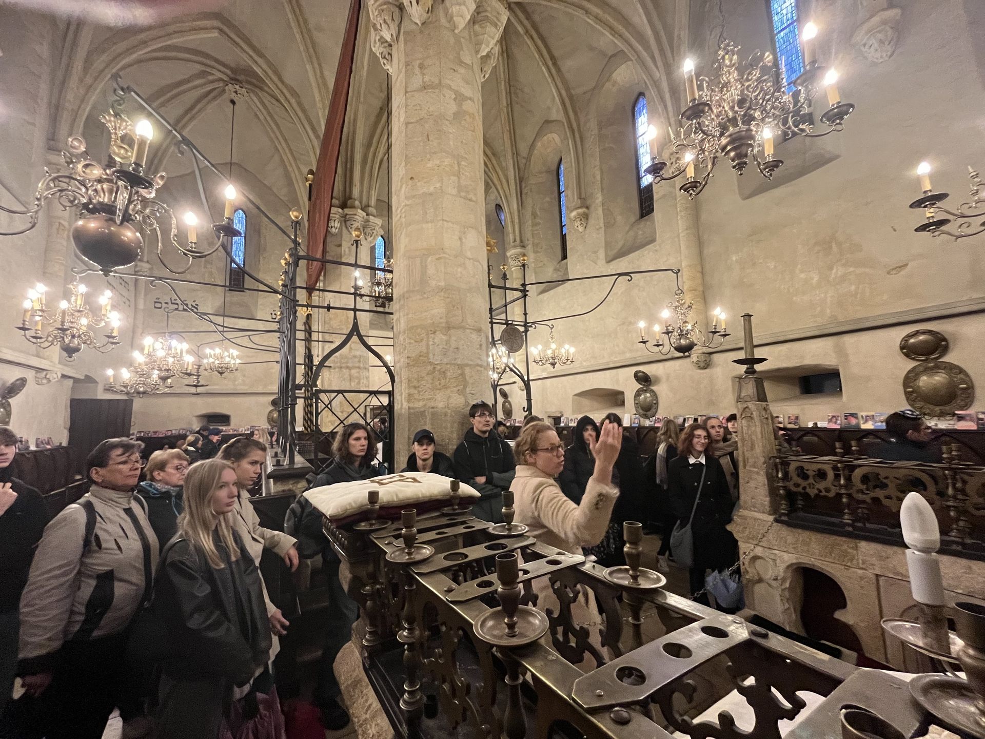 Přes nepřízeň počasí se exkurze vyvedla. Spousta informací, zajímavá místa, zkušení průvodci, možnost osahat si různé předměty a pokládat záludné dotazy. Návštěva Židovského muzea byla jistě poučným zážitkem a snad také pomůže studentům přemýšlet o důležitosti kulturního porozumění a respektu v dnešní složité době.