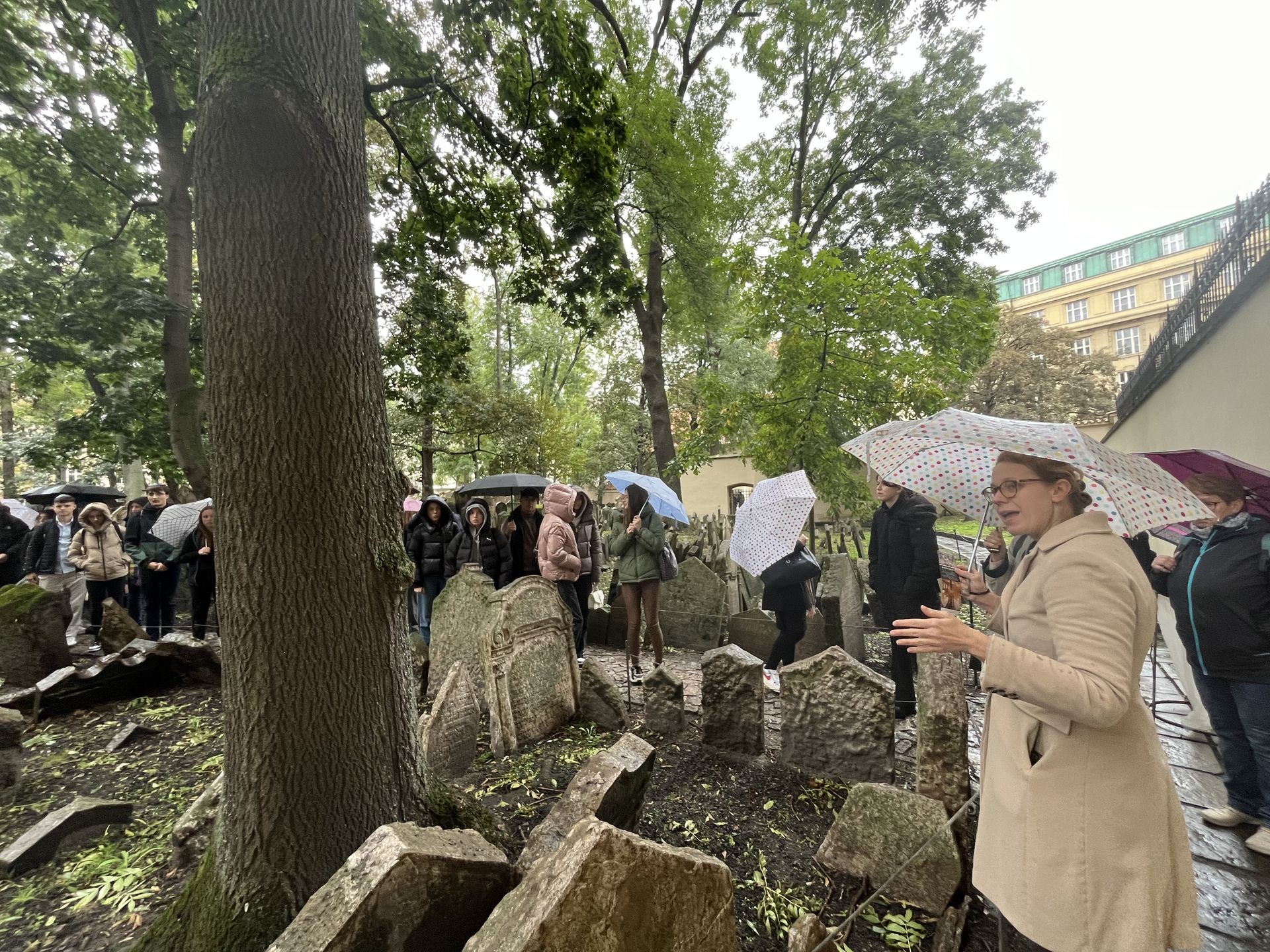 Přes nepřízeň počasí se exkurze vyvedla. Spousta informací, zajímavá místa, zkušení průvodci, možnost osahat si různé předměty a pokládat záludné dotazy. Návštěva Židovského muzea byla jistě poučným zážitkem a snad také pomůže studentům přemýšlet o důležitosti kulturního porozumění a respektu v dnešní složité době.