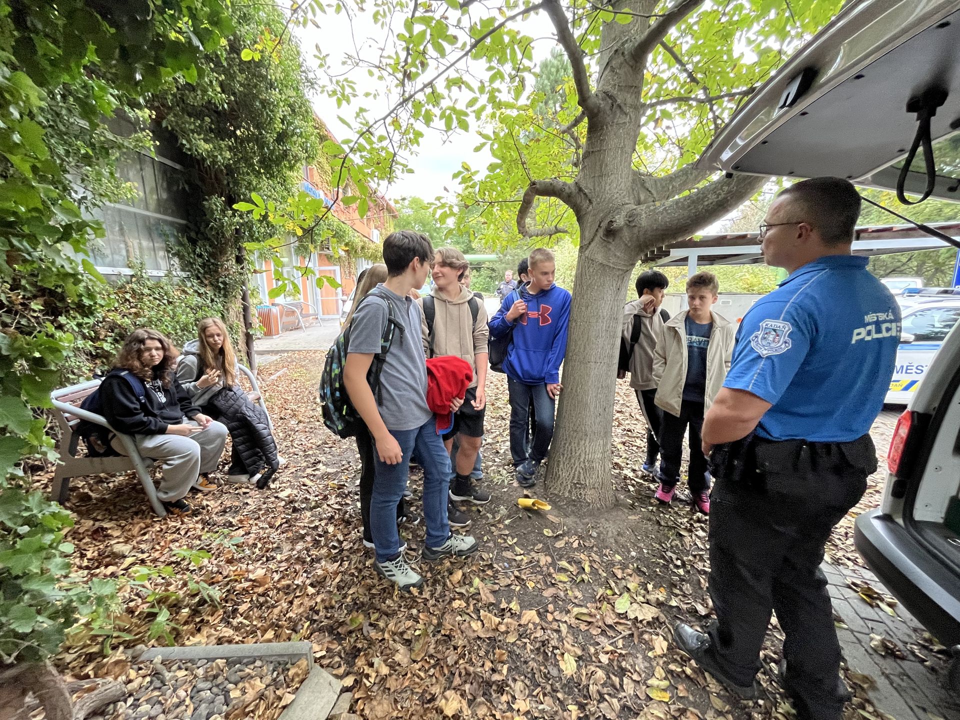 Během minulých čtrnácti dní jsme postupně s tercií navštívili Městskou policii v Kadani. Návštěvy proběhly v rámci předmětu Svět práce, a protože je tercie početná třída, byli rozděleni na dvě skupiny.