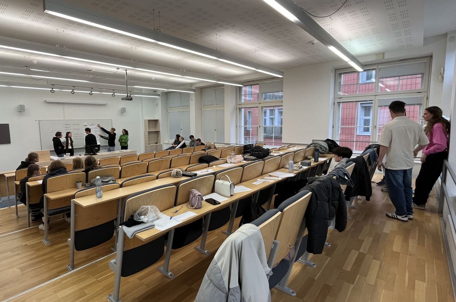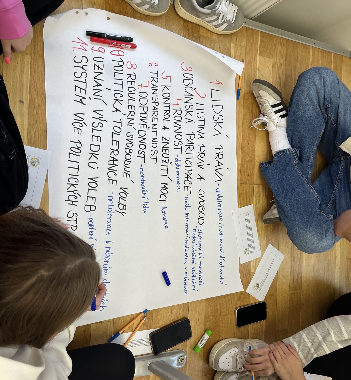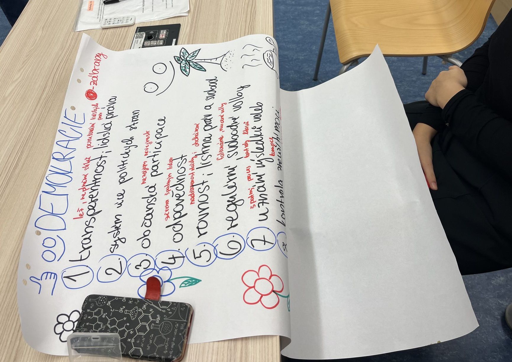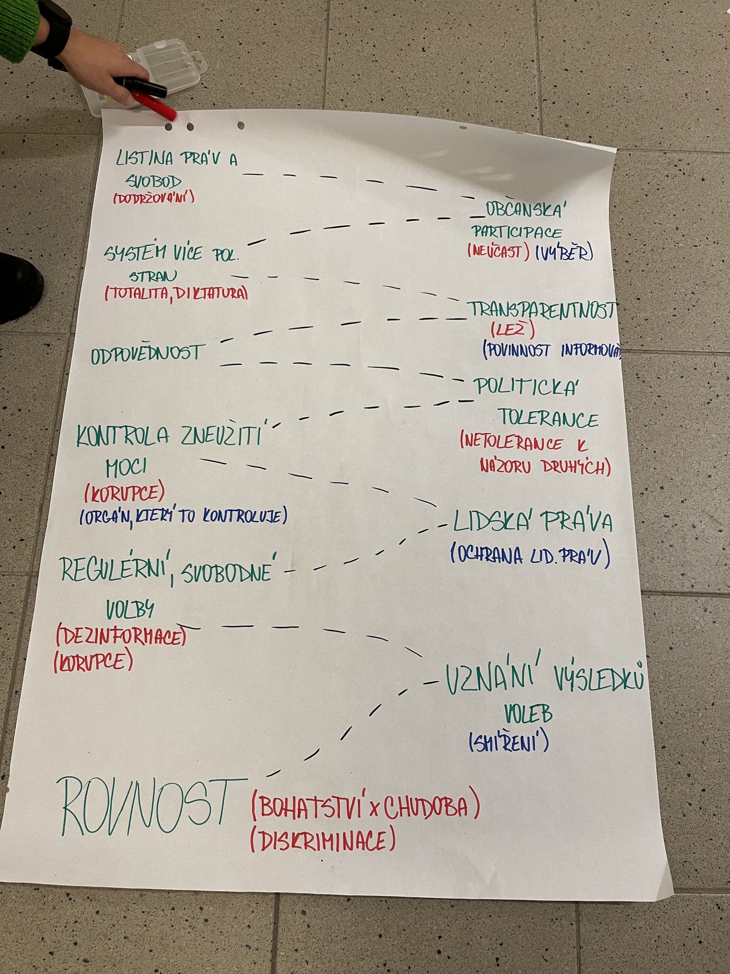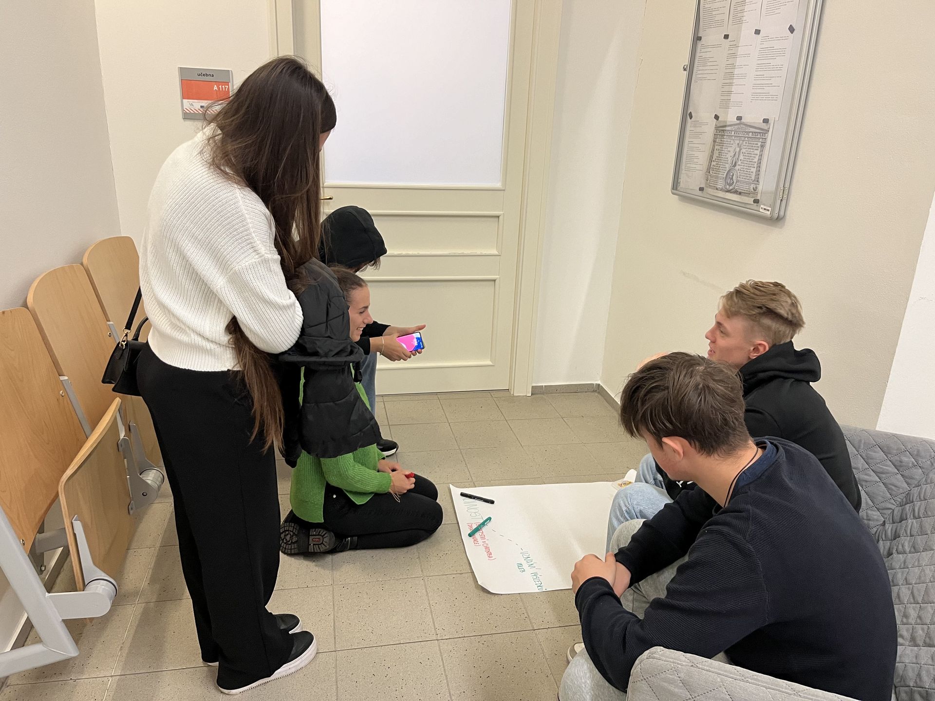 Mimo prohlídku kampusu nás čekala také ochutnávka aktivity z jarní stáže pro zatím nestudenty. Zabývali jsme se demokracií a jejím pojetí. Studenti pracovali ve skupinách a své práce také prezentovali před ostatními. Musím říct, že jsem s jejich zapojením a řešením zadaného úkolu byla nesmírně spokojená. Každá skupina pojala svou práci maličko jinak, přesto ve všech skupinách probíhala plodná diskuse a všechny skupiny dokázaly své názory obhájit.