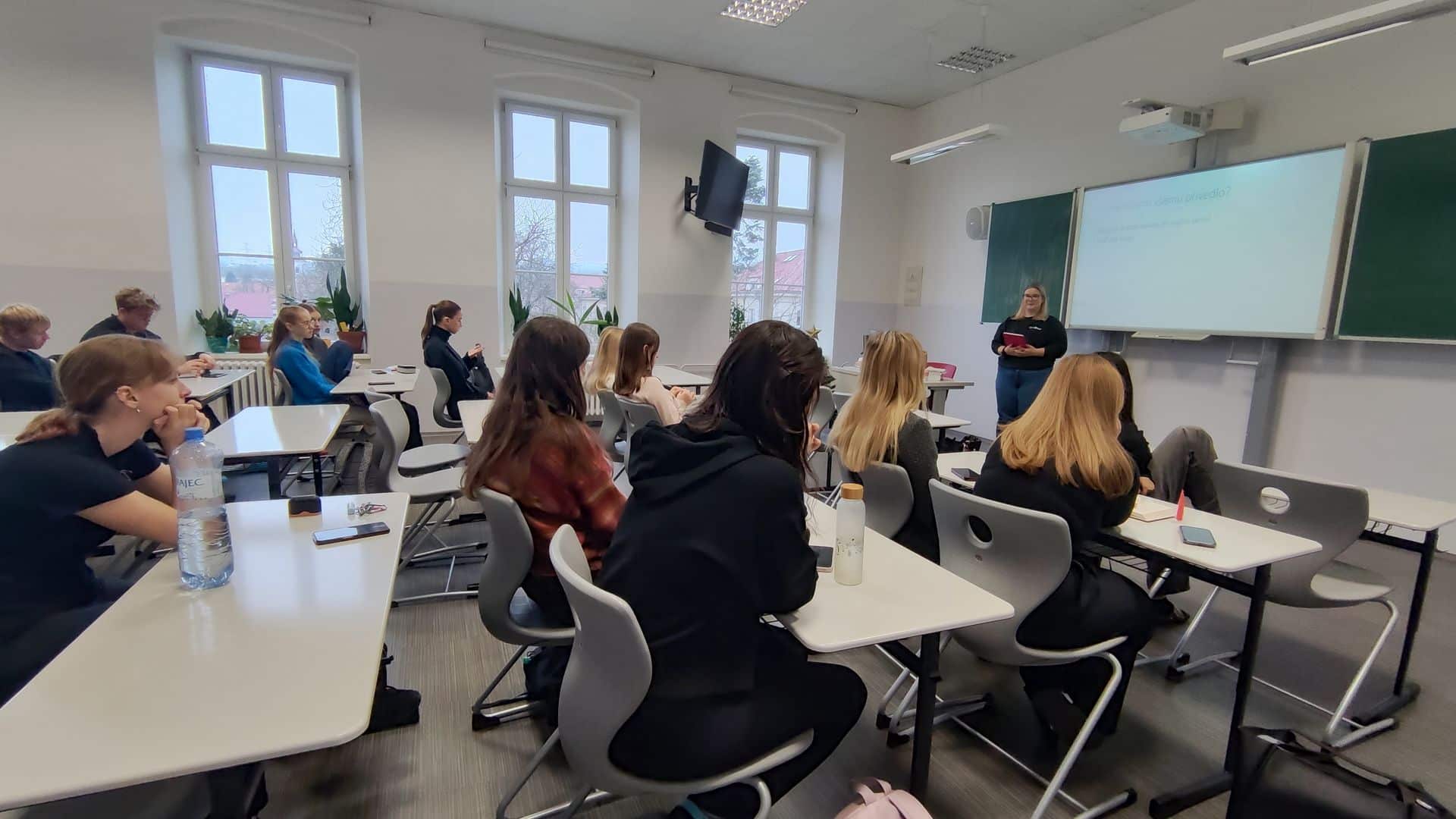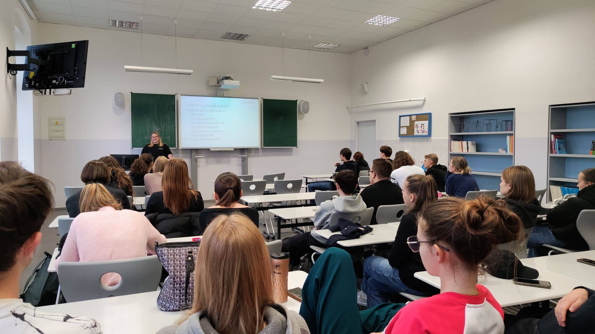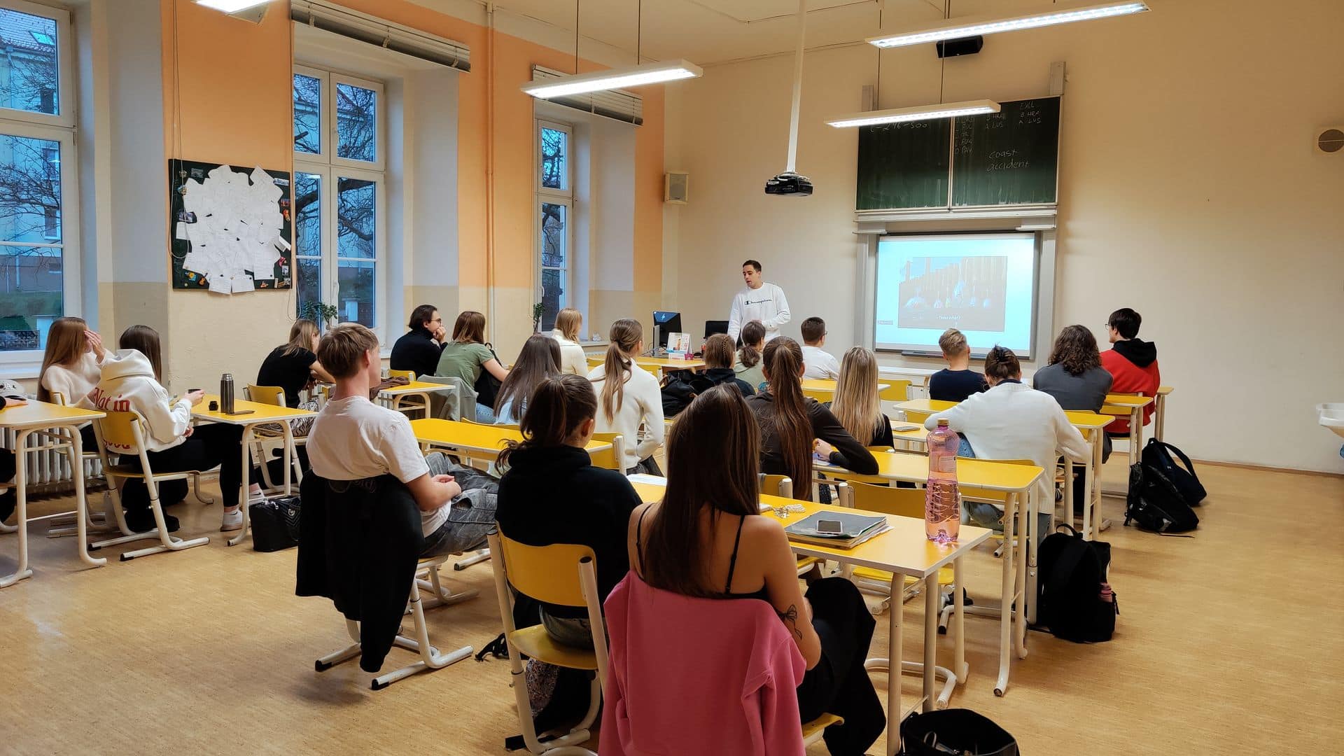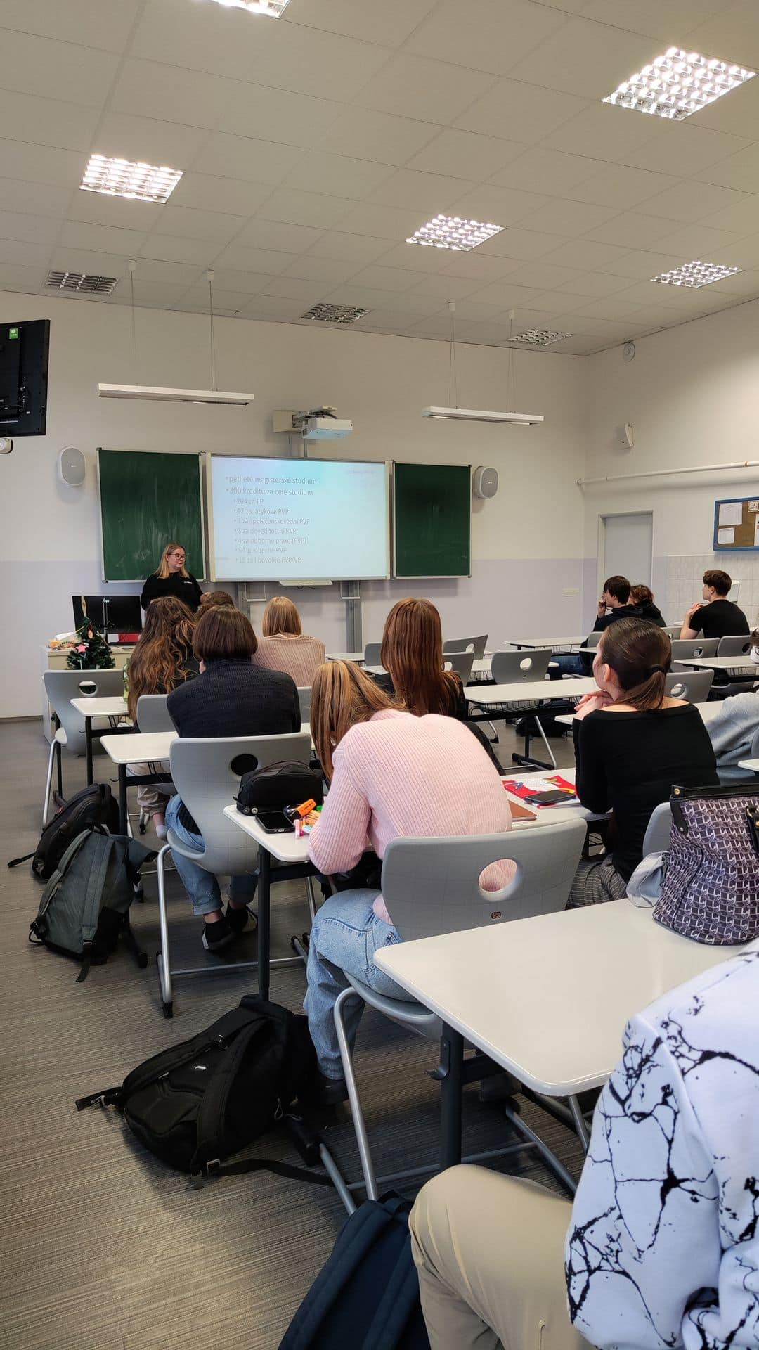 Dne 13. prosince 2024 proběhla zajímavá a inspirativní přednáška, kdy naši studenti měli příležitost setkat se s Alicí Helebrandtovou, která studuje právo a politologii na Univerzitě Karlově. Alice, jako studentka dvou náročných oborů, se podělila o své zkušenosti a osobní cestu, která ji vedla ke studiu těchto disciplín.