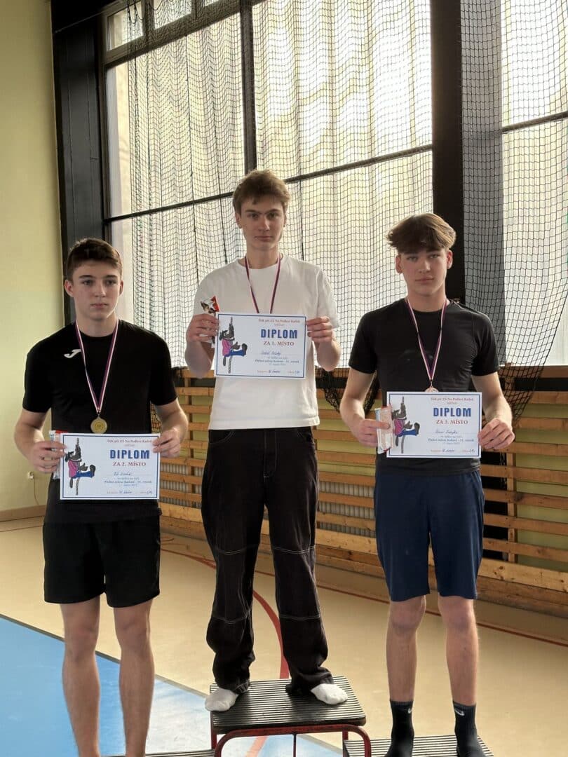 V úterý 11. 2. 2025 se konaly závody ve šplhu základních škol. Bohužel z důvodů nemoci se z řad nižšího gymnázia zúčastnili pouze 4 studenti. Časy byly velice vyrovnané, ale úspěch nás, i přes nižší počet účastníků v daných kategoriích, neminul. Studentka sekundy Chytrová skončila na krásném 3. místě. To byl ale jen začátek úspěšného odpoledne, neboť přišli na řadu nejstarší kluci a v této kategorii exceloval Tadeáš Pořický, který vyšplhal v nejrychlejším čase, odnesl si 1. místo a dokonce s časem 2,28s málem překonal dosavadní rekord, který je 2,18s. Všem zúčastněním děkujeme za reprezentaci a doufáme, že si odnesli alespoň milé vzpomínky.