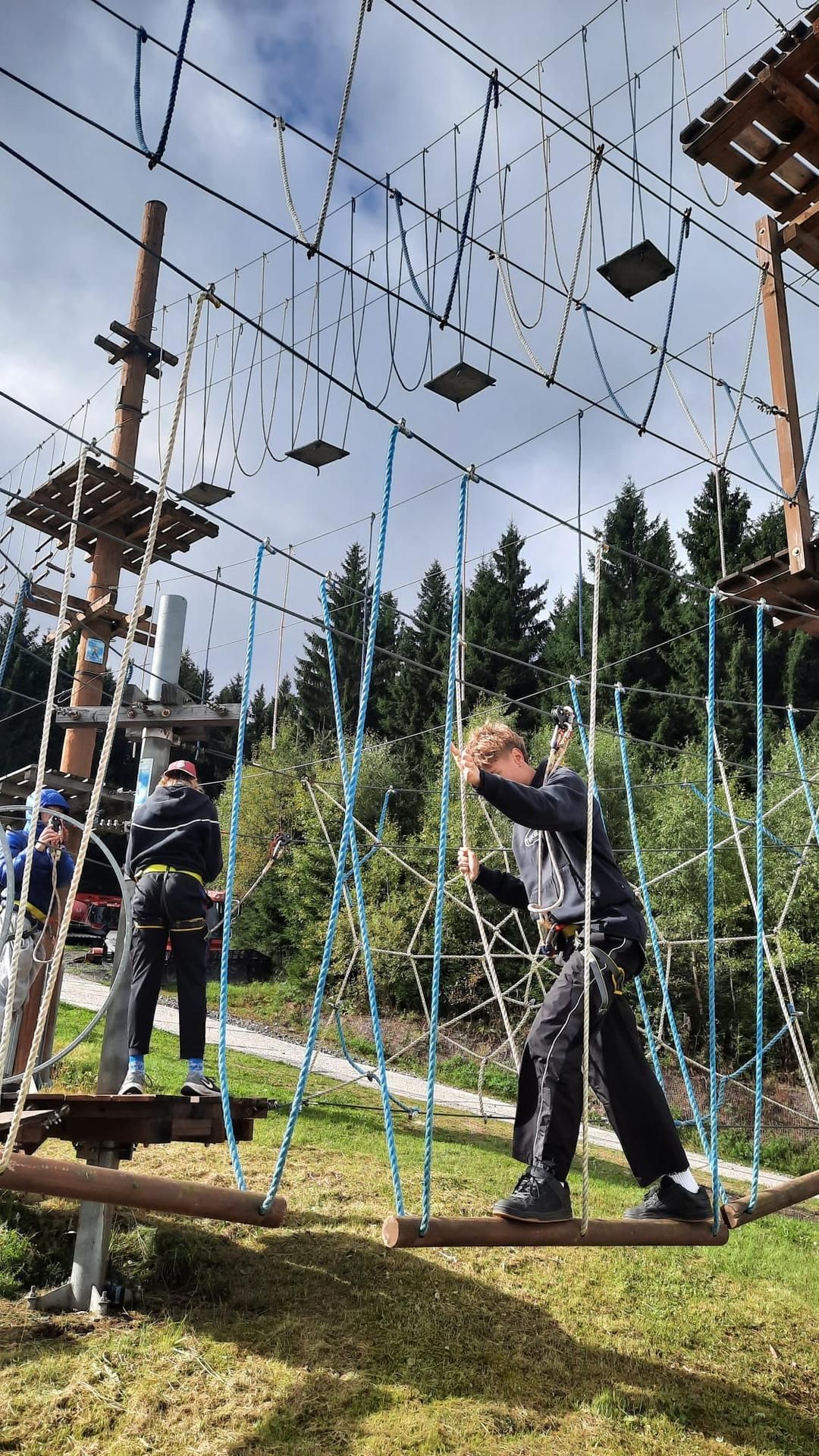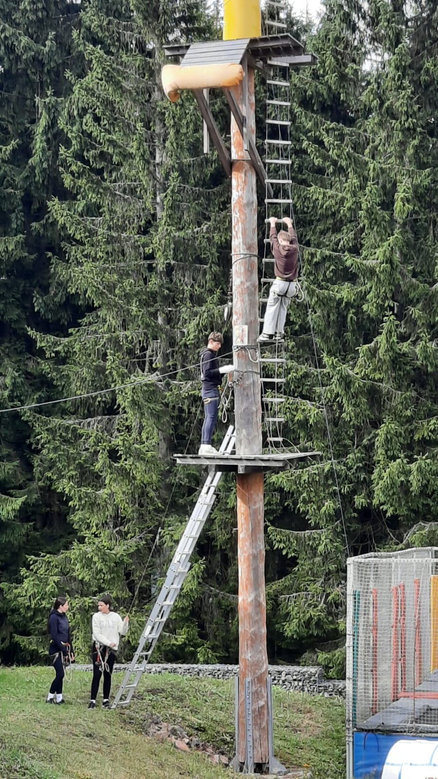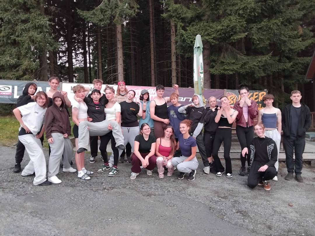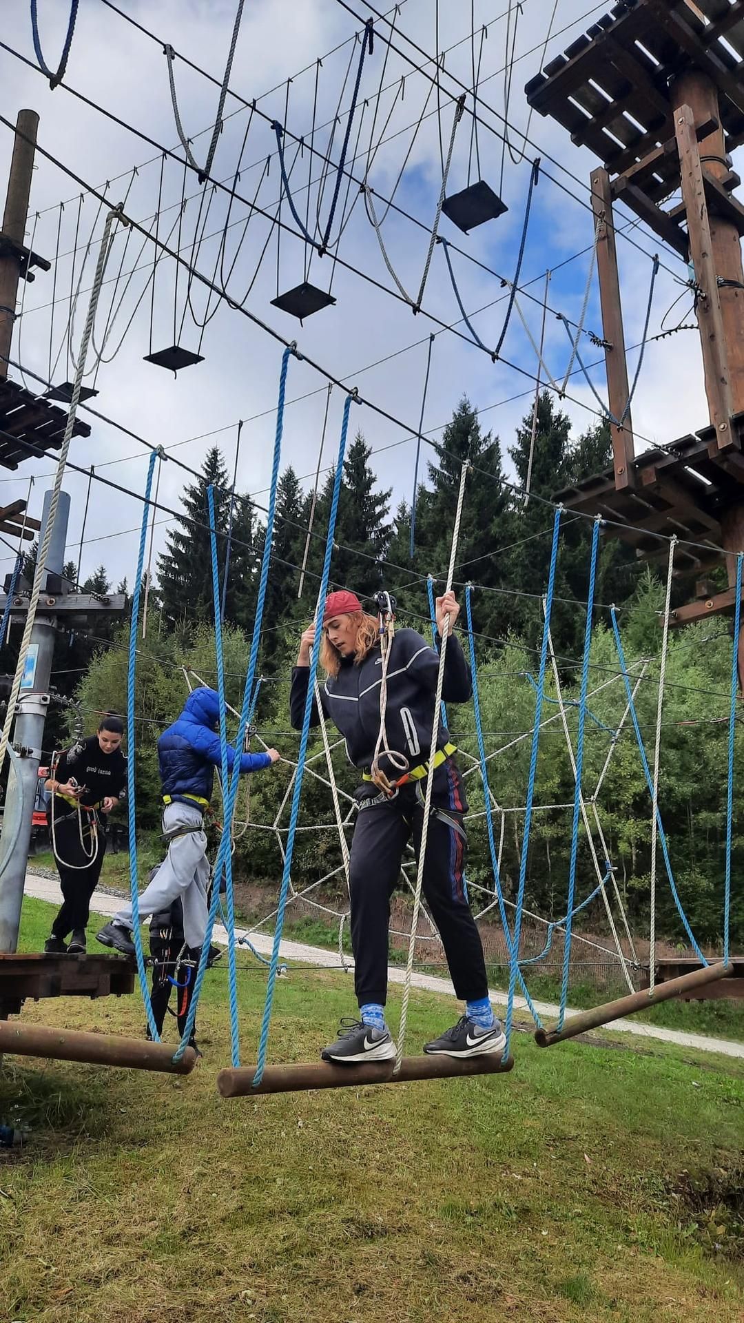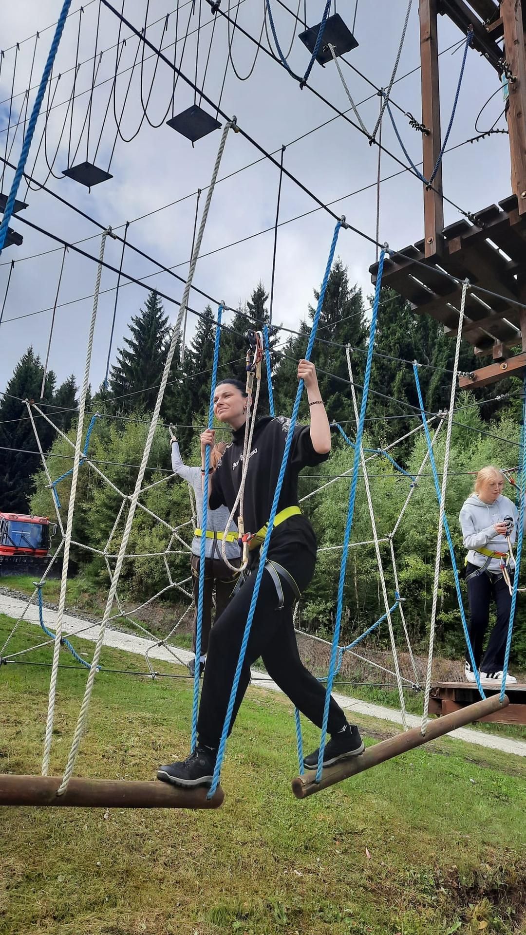 Ve dnech 15. 9.-17. 9. se třída 5. O zúčastnila adaptačního pobytu na Klínovci. Cílem bylo propojit stávající studenty s nově příchozími a poznat se navzájem v zápalu sportovních dobrodružství. První den dopoledne nás déšť zavřel v budově , ale využili jsme tenhle čas k hrám a třídním aktivitám. Odpoledne jsme si vyzkoušeli lukostřelbu, kde některé slečny předvedly talent hodný Amazonek, a v lese jsme si zahráli discgolf, který nás nadchl a skvěle pobavil. K večeru jsme si zašli koupit nějaké dobroty do Loučné pod Klínovcem a den jsme pak zakončili třídními hrami. Druhý den jsme si pořádně mákli na koloběžkách a lanovém centru, všichni do toho šli naplno, někteří dokonce překonávali svoje hranice. Většina si pak ještě užila řádění na trampolínách… Na podvečer dostali studenti speciální úkol – po večeři pobavit paní učitelky… Celá třída se úkolu zhostila na jedničku a nachystala neuvěřitelně zábavnou „genderově obrácenou“ módní přehlídku, zakončenou super skvělým pěveckým výkonem… Na závěr jsme si společně upletli síť podpory a shodli jsme se na tom, že jsme si adaptační pobyt všichni moc užili a cíl se nám podařilo na dvě stě procent naplnit…