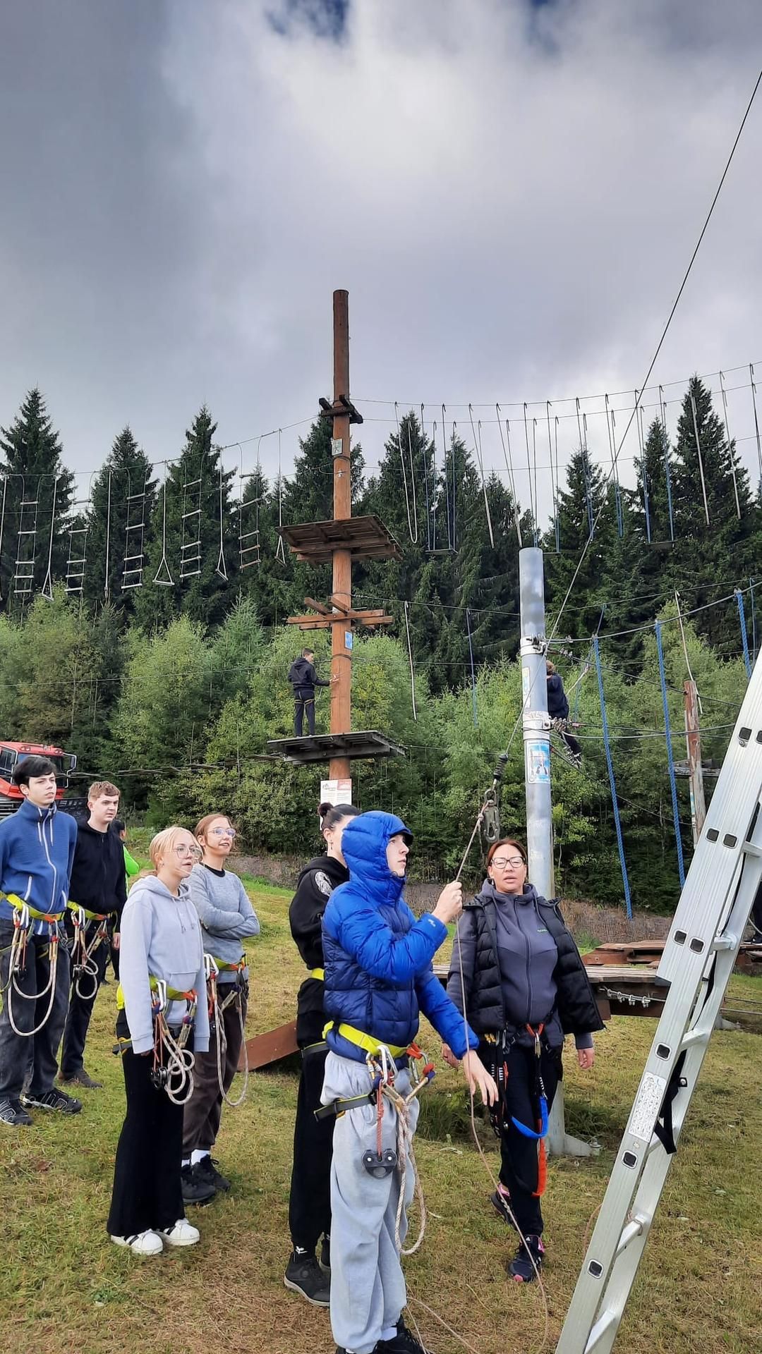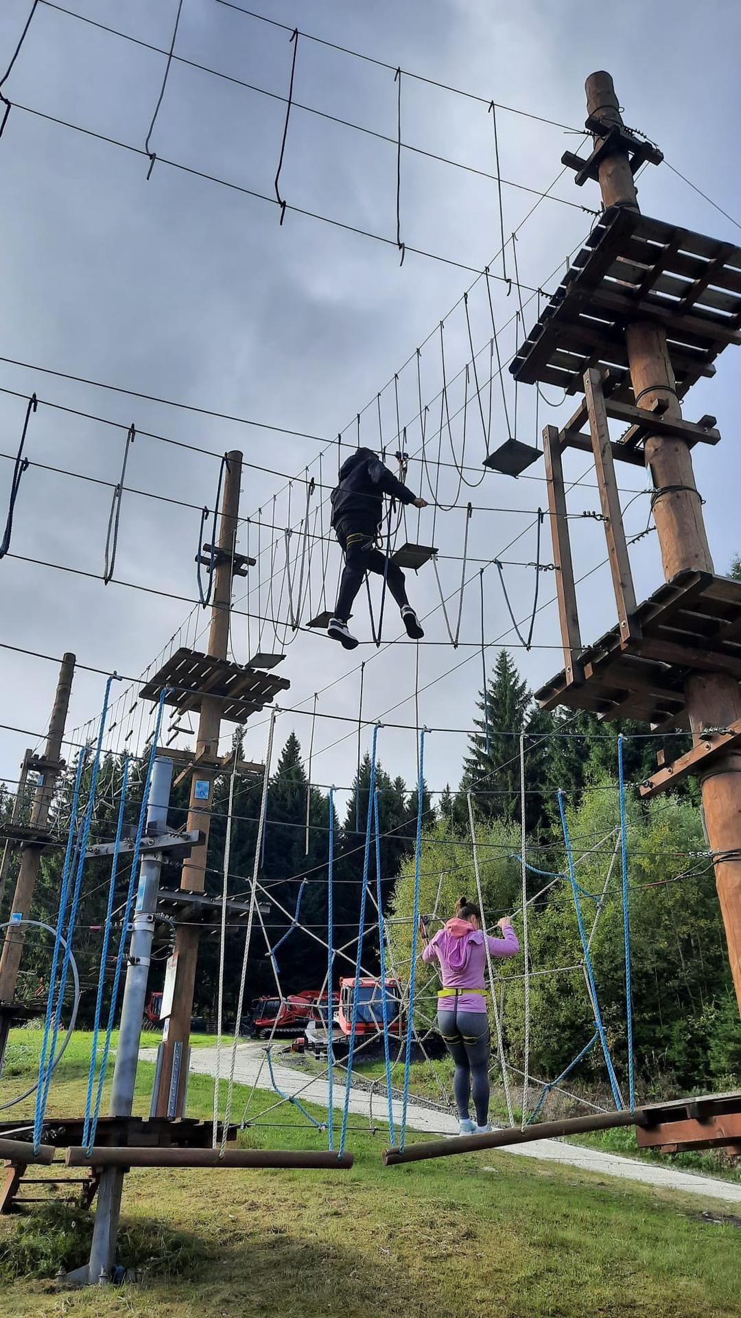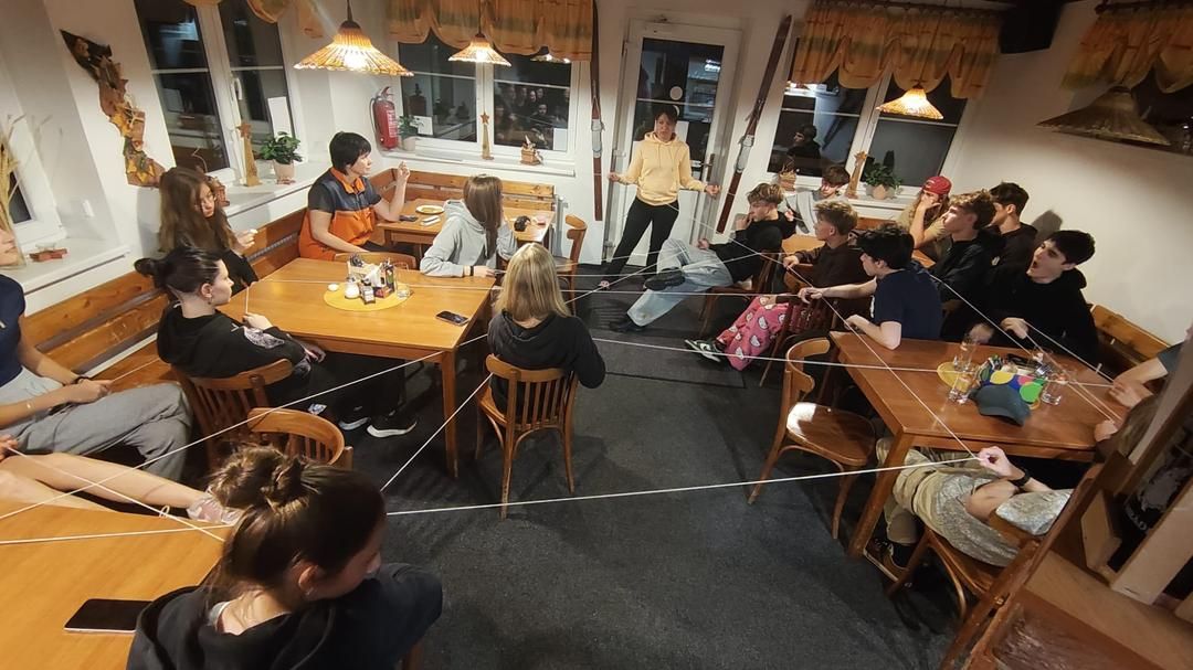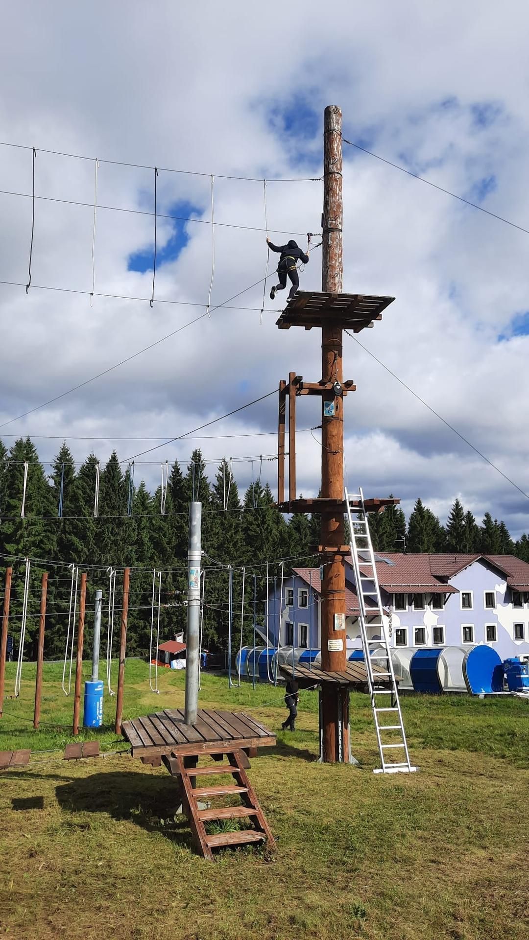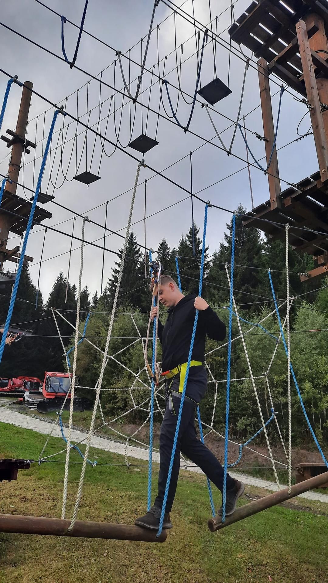 Ve dnech 15. 9.-17. 9. se třída 5. O zúčastnila adaptačního pobytu na Klínovci. Cílem bylo propojit stávající studenty s nově příchozími a poznat se navzájem v zápalu sportovních dobrodružství. První den dopoledne nás déšť zavřel v budově , ale využili jsme tenhle čas k hrám a třídním aktivitám. Odpoledne jsme si vyzkoušeli lukostřelbu, kde některé slečny předvedly talent hodný Amazonek, a v lese jsme si zahráli discgolf, který nás nadchl a skvěle pobavil. K večeru jsme si zašli koupit nějaké dobroty do Loučné pod Klínovcem a den jsme pak zakončili třídními hrami. Druhý den jsme si pořádně mákli na koloběžkách a lanovém centru, všichni do toho šli naplno, někteří dokonce překonávali svoje hranice. Většina si pak ještě užila řádění na trampolínách… Na podvečer dostali studenti speciální úkol – po večeři pobavit paní učitelky… Celá třída se úkolu zhostila na jedničku a nachystala neuvěřitelně zábavnou „genderově obrácenou“ módní přehlídku, zakončenou super skvělým pěveckým výkonem… Na závěr jsme si společně upletli síť podpory a shodli jsme se na tom, že jsme si adaptační pobyt všichni moc užili a cíl se nám podařilo na dvě stě procent naplnit…