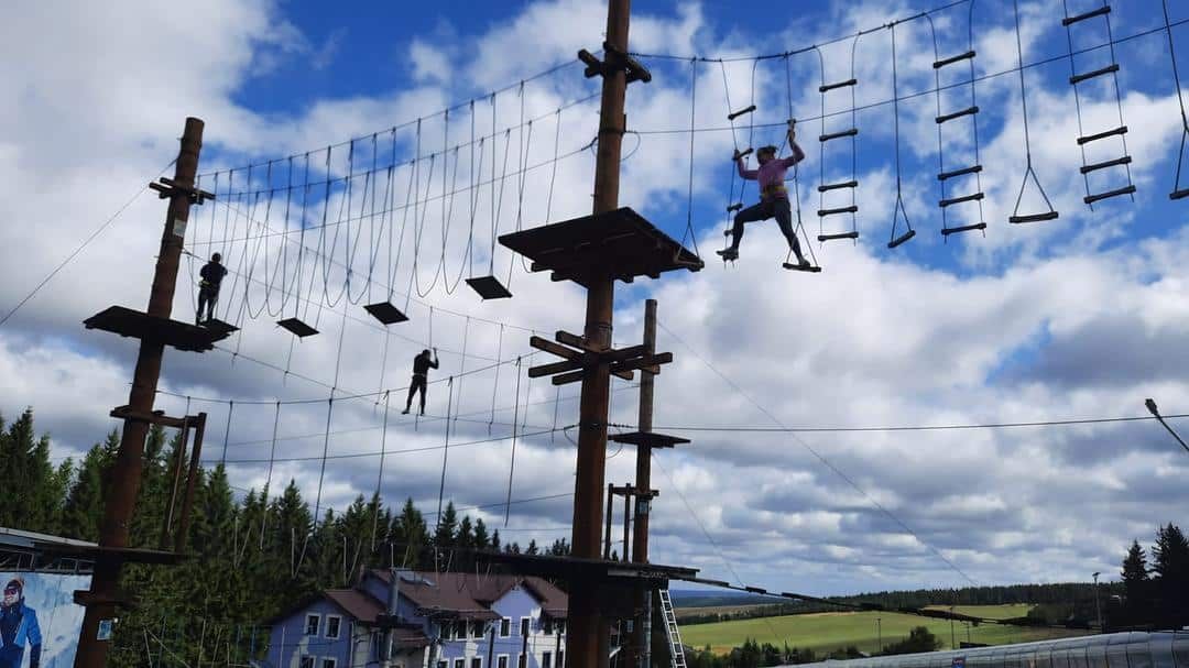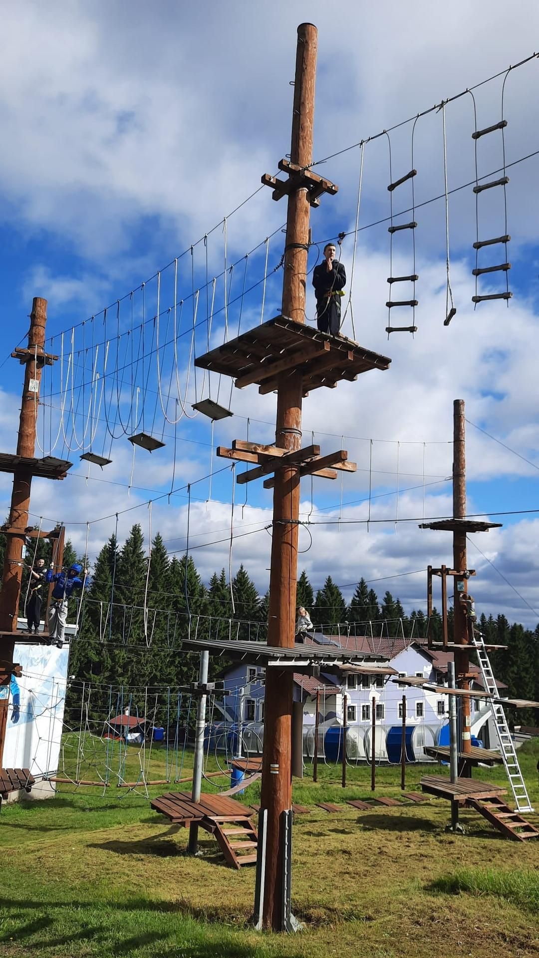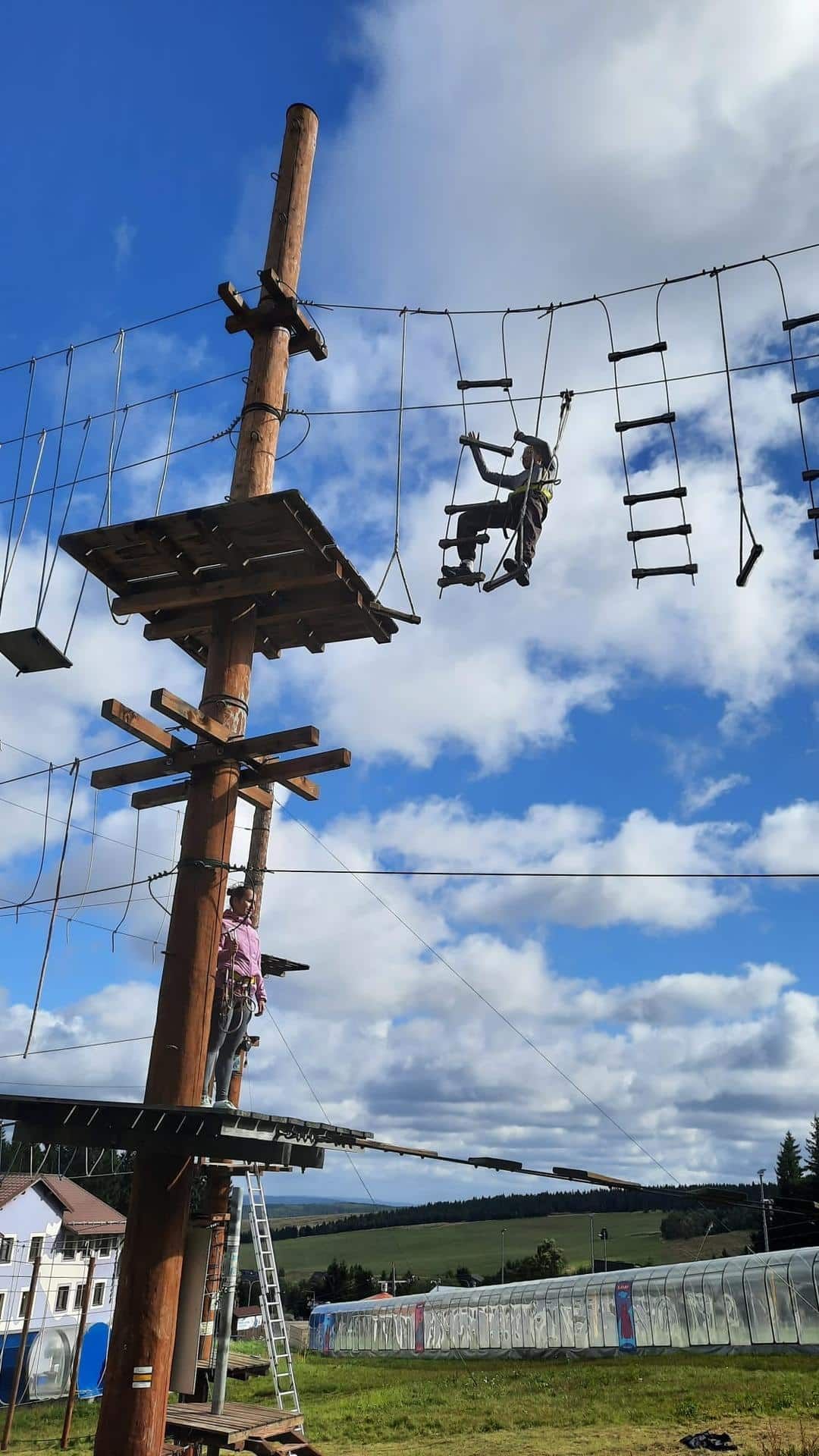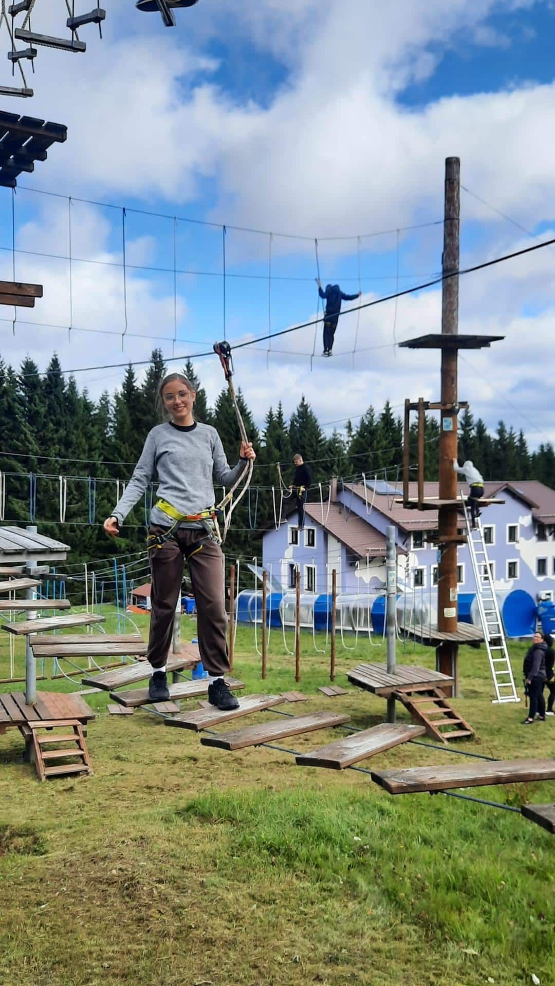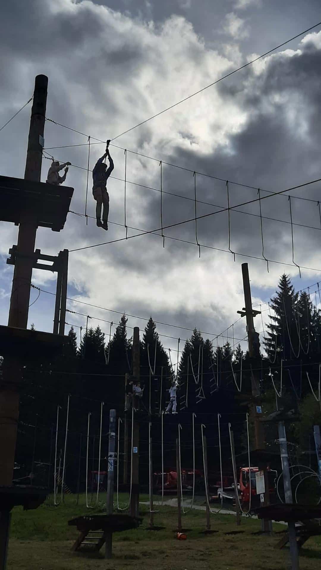 Ve dnech 15. 9.-17. 9. se třída 5. O zúčastnila adaptačního pobytu na Klínovci. Cílem bylo propojit stávající studenty s nově příchozími a poznat se navzájem v zápalu sportovních dobrodružství. První den dopoledne nás déšť zavřel v budově , ale využili jsme tenhle čas k hrám a třídním aktivitám. Odpoledne jsme si vyzkoušeli lukostřelbu, kde některé slečny předvedly talent hodný Amazonek, a v lese jsme si zahráli discgolf, který nás nadchl a skvěle pobavil. K večeru jsme si zašli koupit nějaké dobroty do Loučné pod Klínovcem a den jsme pak zakončili třídními hrami. Druhý den jsme si pořádně mákli na koloběžkách a lanovém centru, všichni do toho šli naplno, někteří dokonce překonávali svoje hranice. Většina si pak ještě užila řádění na trampolínách… Na podvečer dostali studenti speciální úkol – po večeři pobavit paní učitelky… Celá třída se úkolu zhostila na jedničku a nachystala neuvěřitelně zábavnou „genderově obrácenou“ módní přehlídku, zakončenou super skvělým pěveckým výkonem… Na závěr jsme si společně upletli síť podpory a shodli jsme se na tom, že jsme si adaptační pobyt všichni moc užili a cíl se nám podařilo na dvě stě procent naplnit…