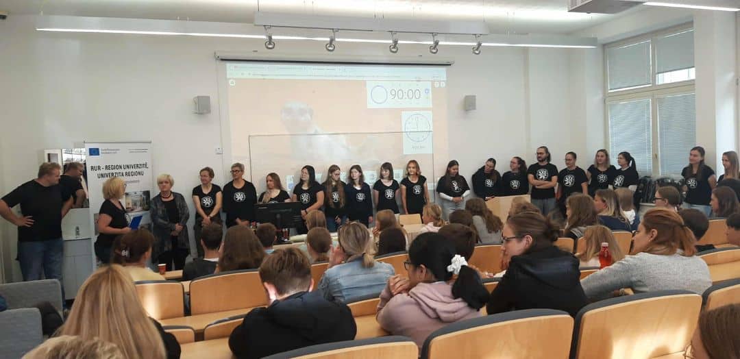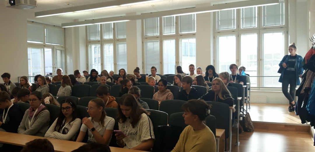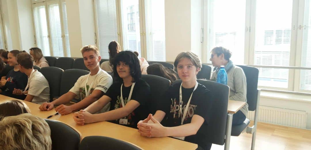 Ve středu 24. září 2025 se tříčlenné družstvo z kvarty – Václav Vozár, David Nguyen, Mikuláš Vaňas – zúčastnilo jazykové soutěže družstev v německém jazyce, kterou pořádala Filozofická fakulta Univerzity J. E. Purkyně v Ústí nad Labem. Soutěž byla určena pro žáky základních škol a nižších ročníků víceletých gymnázií.
