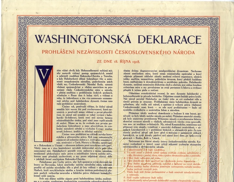 Lide československý! Vše, co podnikáš, podnikáš od tohoto okamžiku jako nový svobodný člen velké rodiny samostatných svobodných národů.